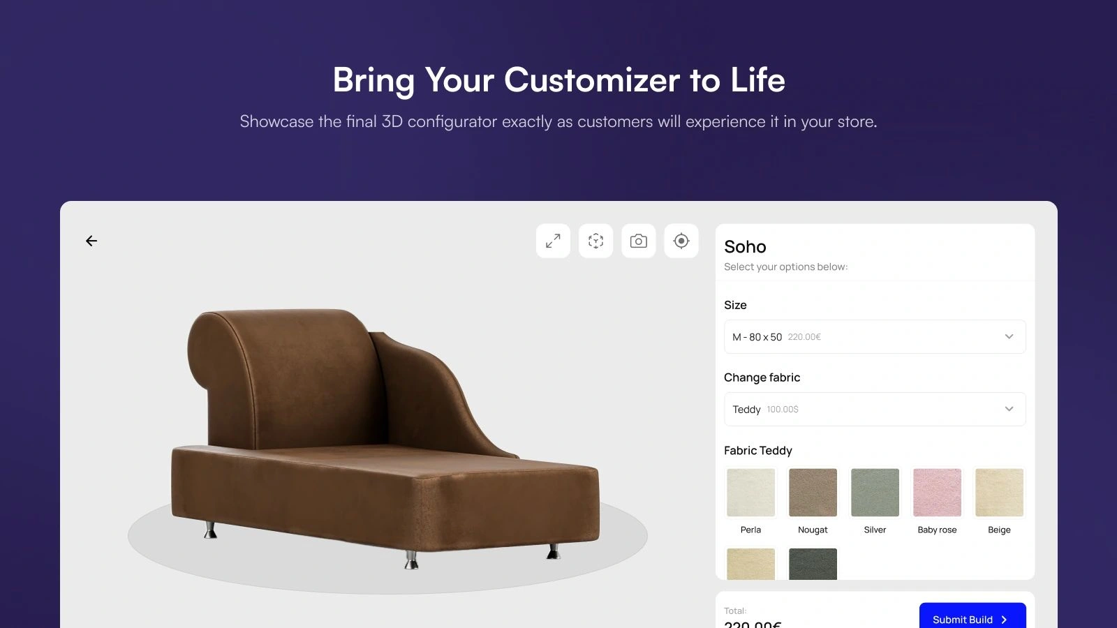 A B2B SaaS solution empowering online retailers with immersive product customization, real-time 3D previews, and seamless AR experiences across platforms.