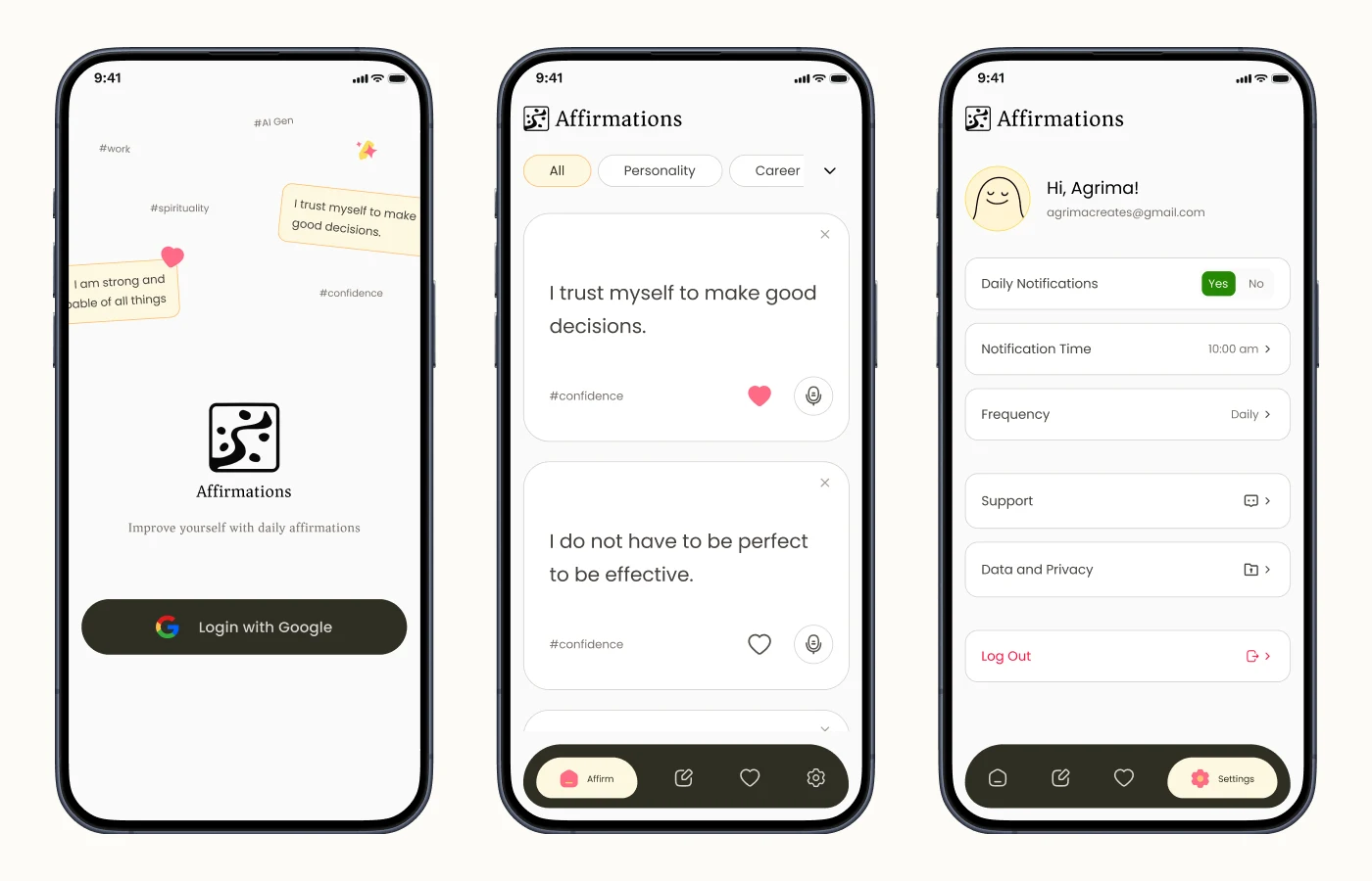 Designed 20+ screens for an AI-powered quotes app. Worked on sign up, home page, quote generation (AI and manual), favourites and profile