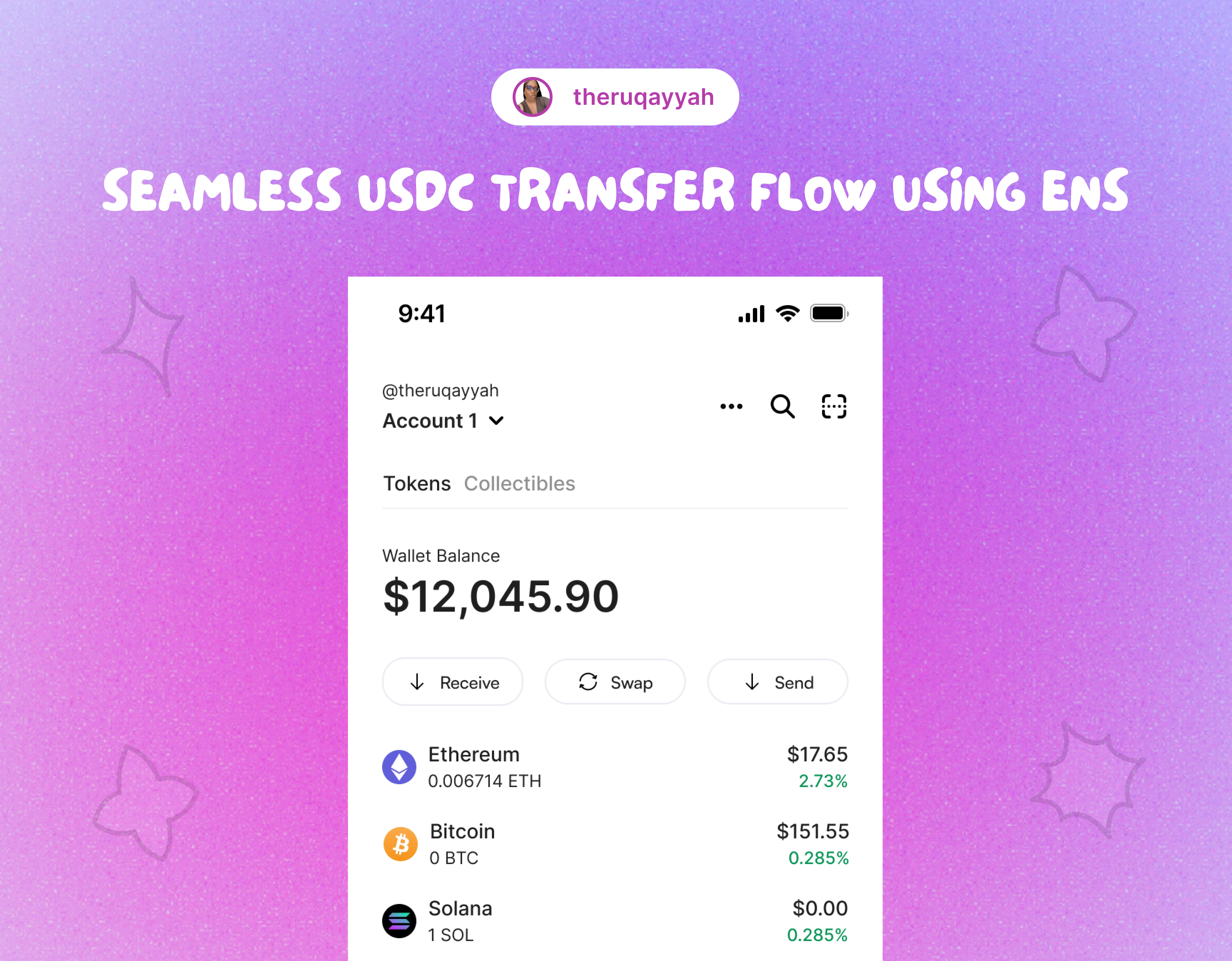 Designed an intuitive app for safe cross-chain USDC transfers, letting users send from Solana to Ethereum using ENS names instead of long addresses.