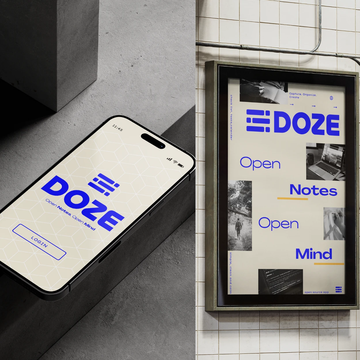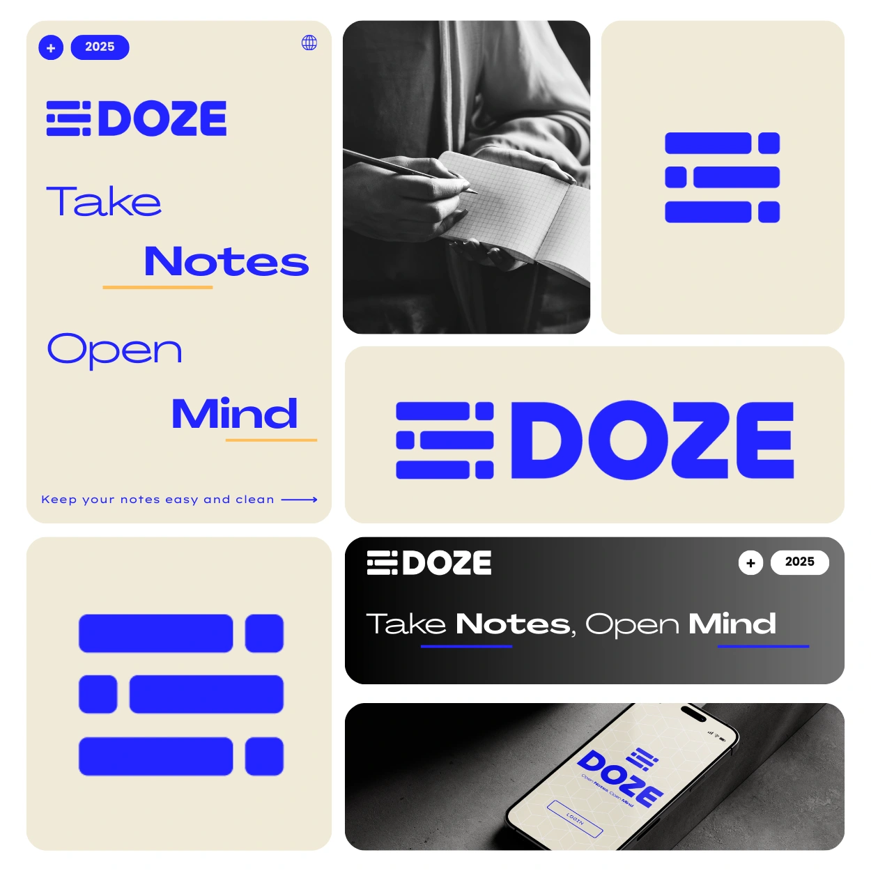 Logo and visual identity for an open-source note-taking app, with a modern and minimalist approach to effectively represent the brand.