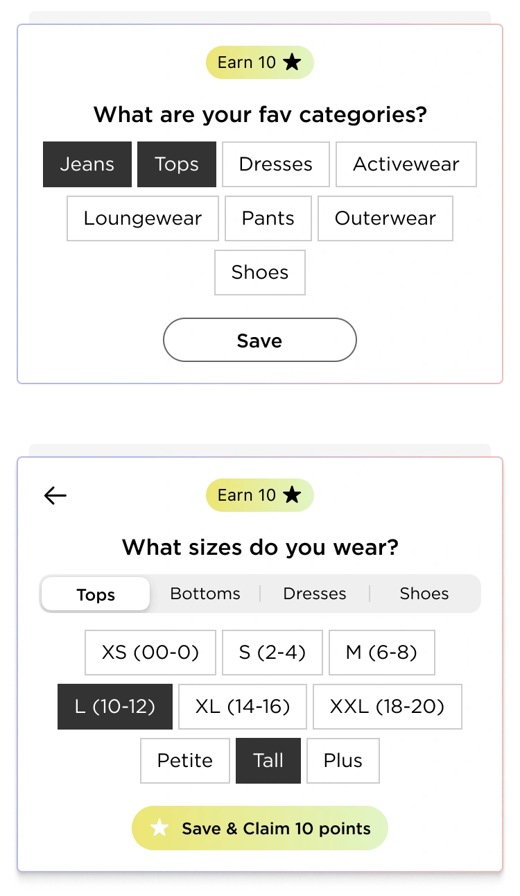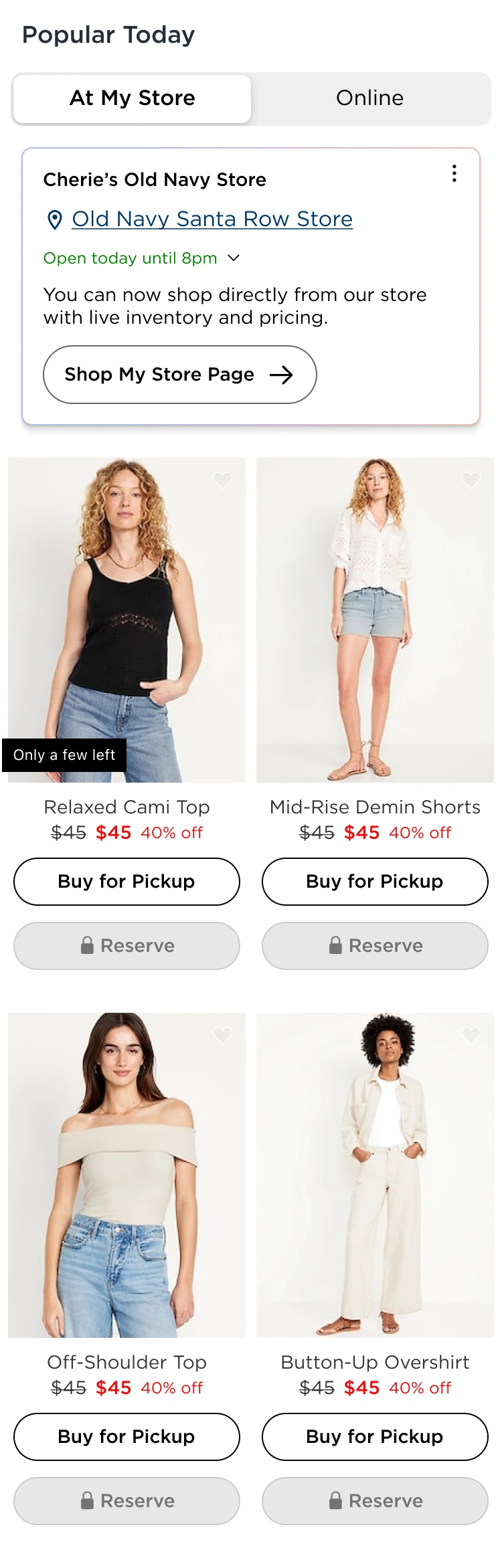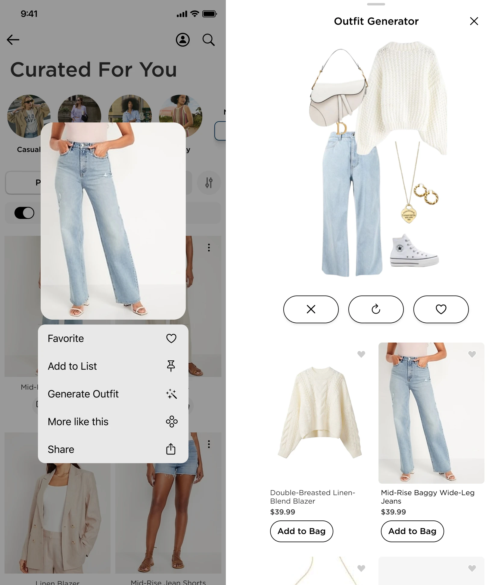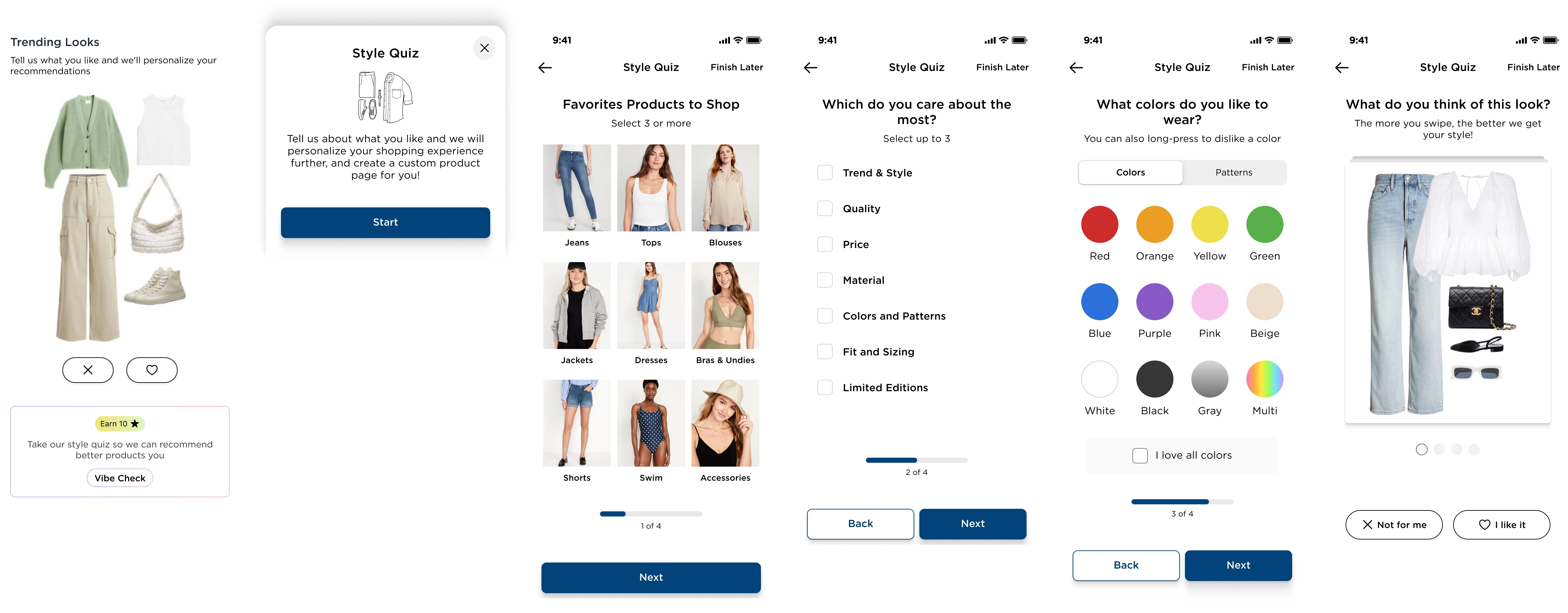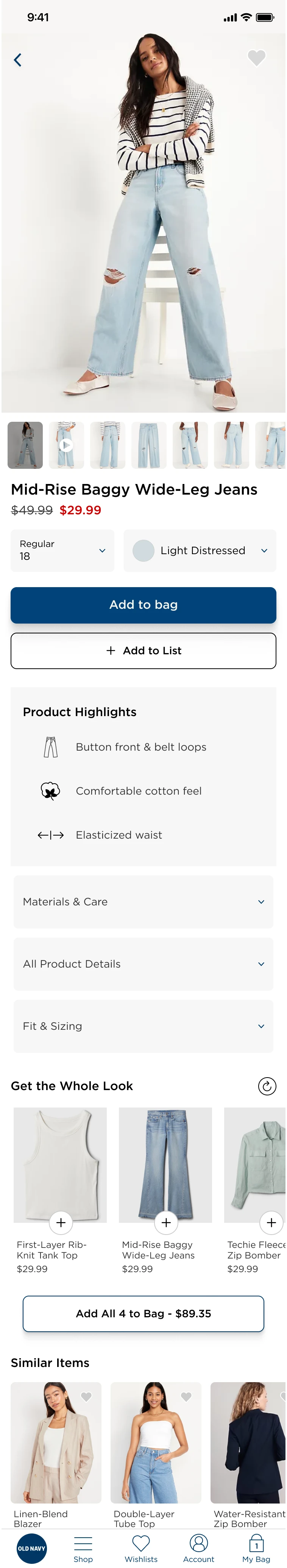 This project was one part of a three-pronged personalization strategy for Gap Inc.’s mobile apps. Each concept was scoped into a two-week sprint to explore, design, and prototype, enabling the research team to run quick user tests. I focused on personalization, with primary attention on the home screen, category page, and wishlists, using Old Navy as the test brand.