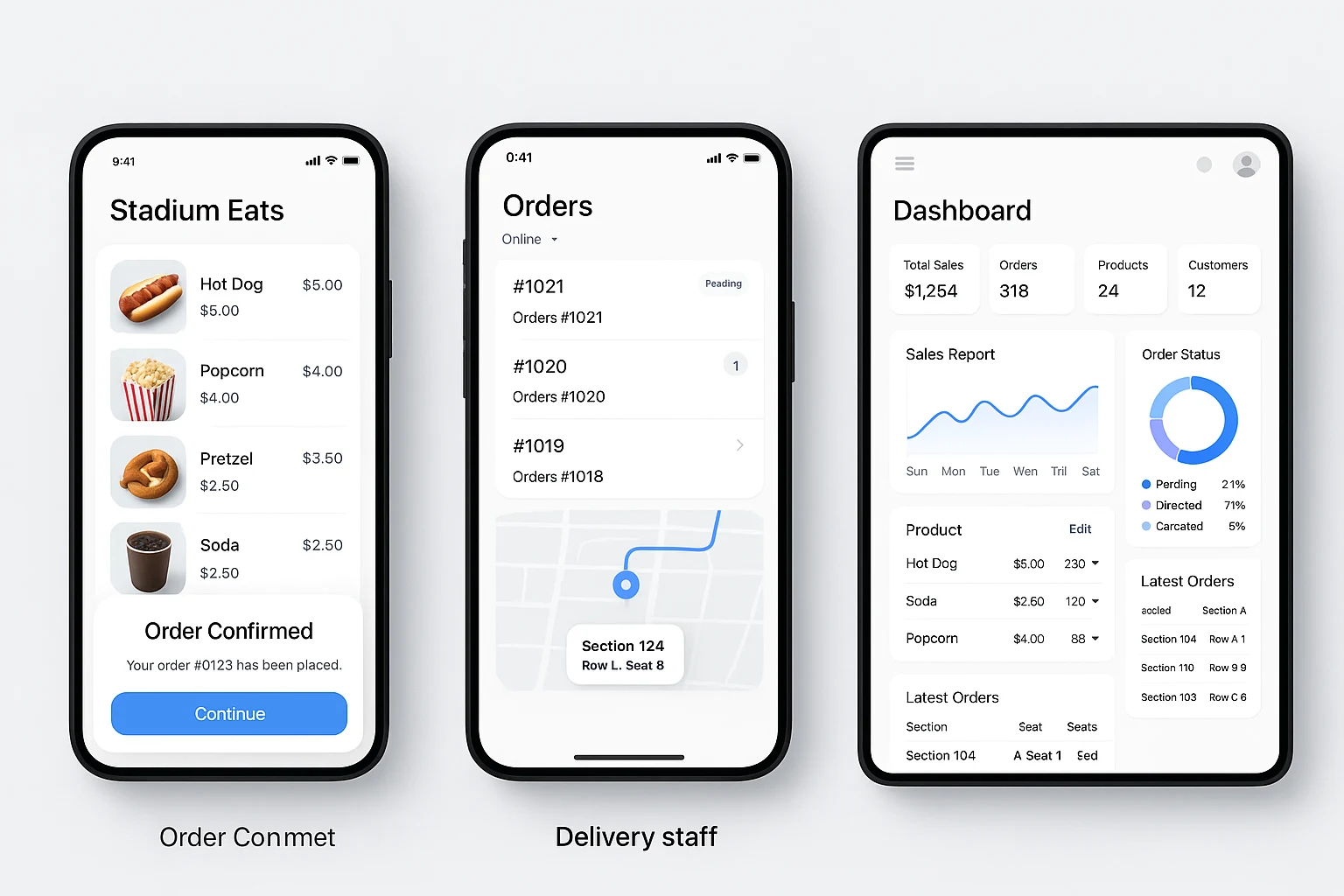 I developed a complete digital ordering system for stadium environments, enabling fans to order food and beverages directly from their seats while streamlining operations for vendors.
