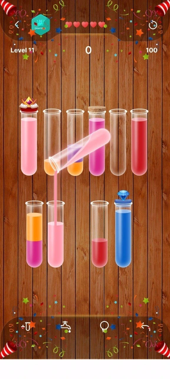 Enjoy the game and improve your skills in Pour & Solve: Water Sorting.