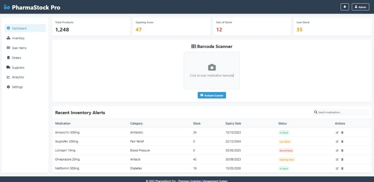 Automated medication tracker for pharmacies. Real-time stock alerts, expiry warnings & supplier integration. Save 10+ hours/week on inventory.