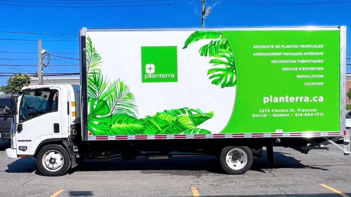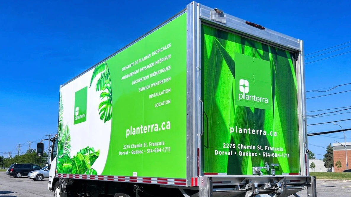 A box truck wrap design that is a striking, mobile billboard showcasing your services. It features a vibrant color scheme, and bold logo.