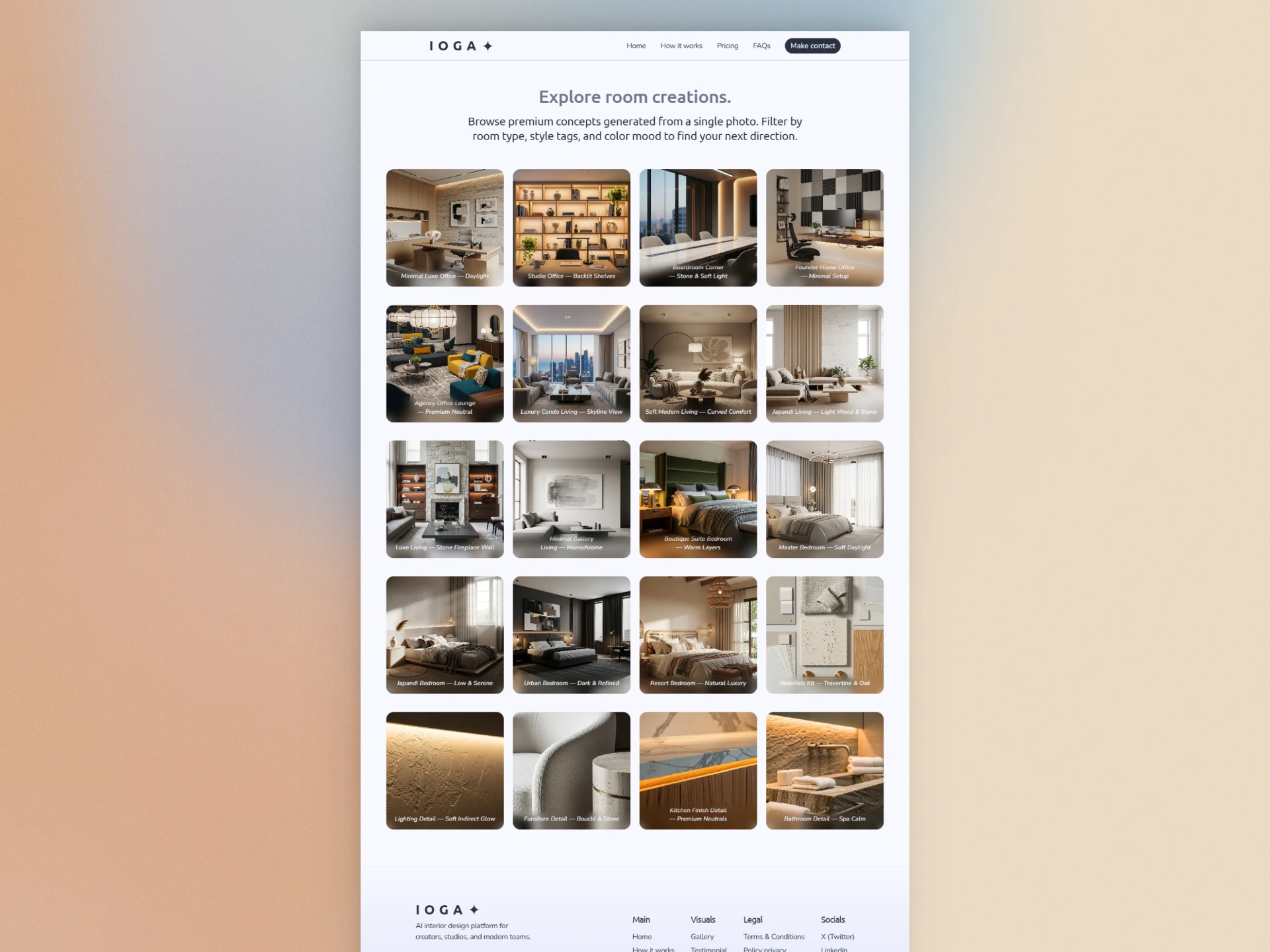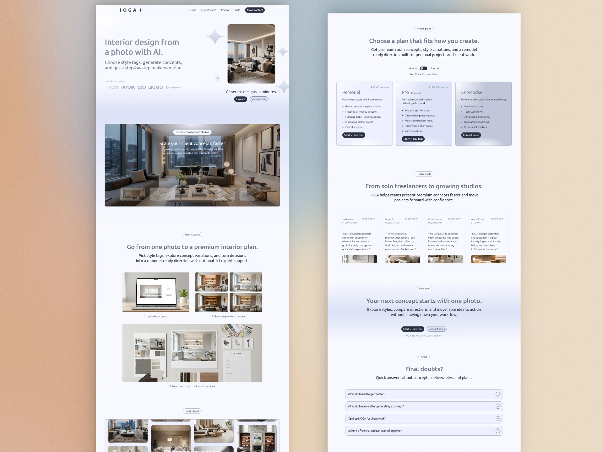 I built IOGA as a premium landing page in Framer for an AI assisted interior design product.