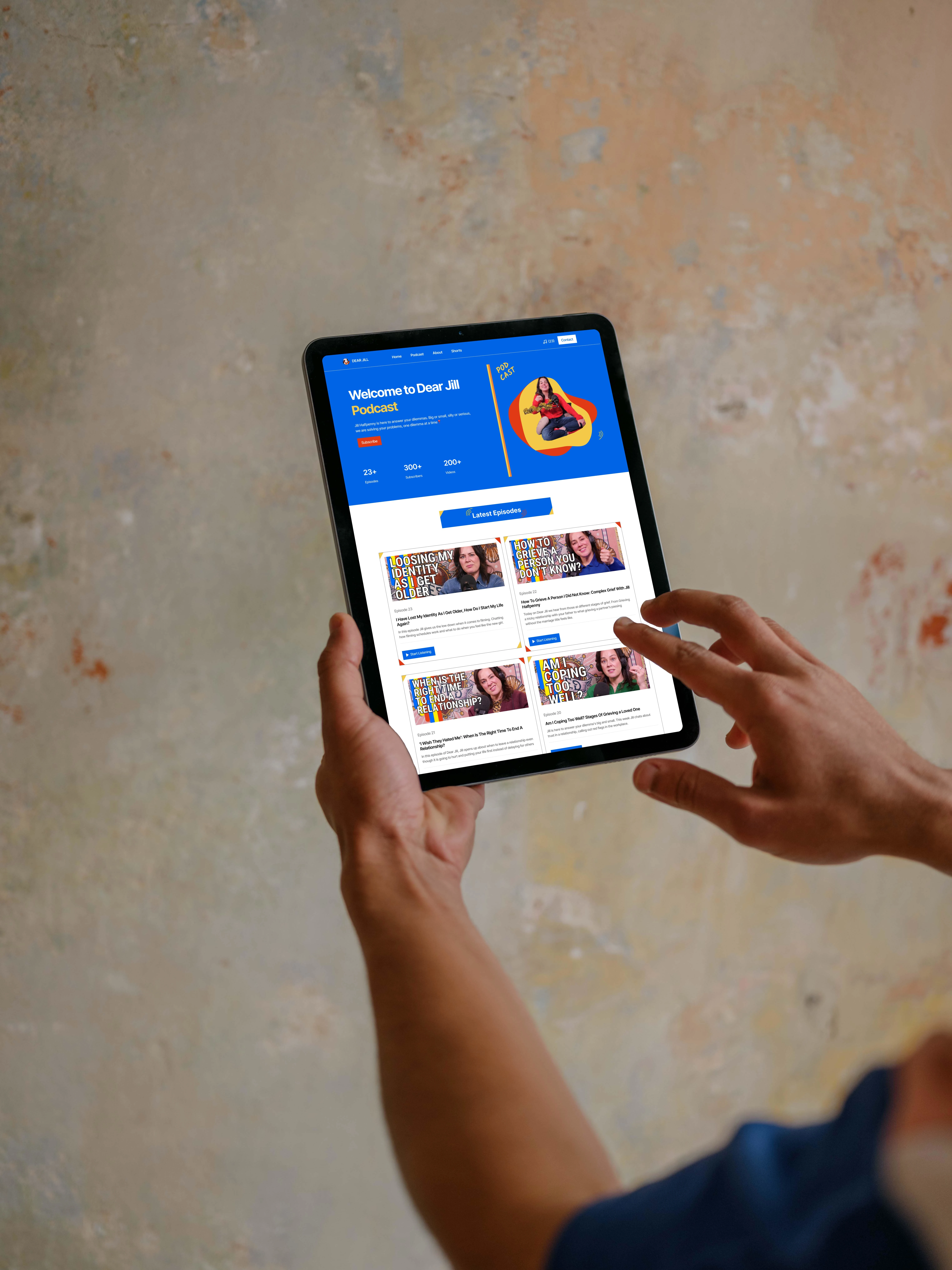The goal was to design a digital space that reflects Jill’s voice and values while encouraging listening, subscribing, and sharing. The objective was to create a welcoming experience that builds trust and encourages engagement from the very first scroll.