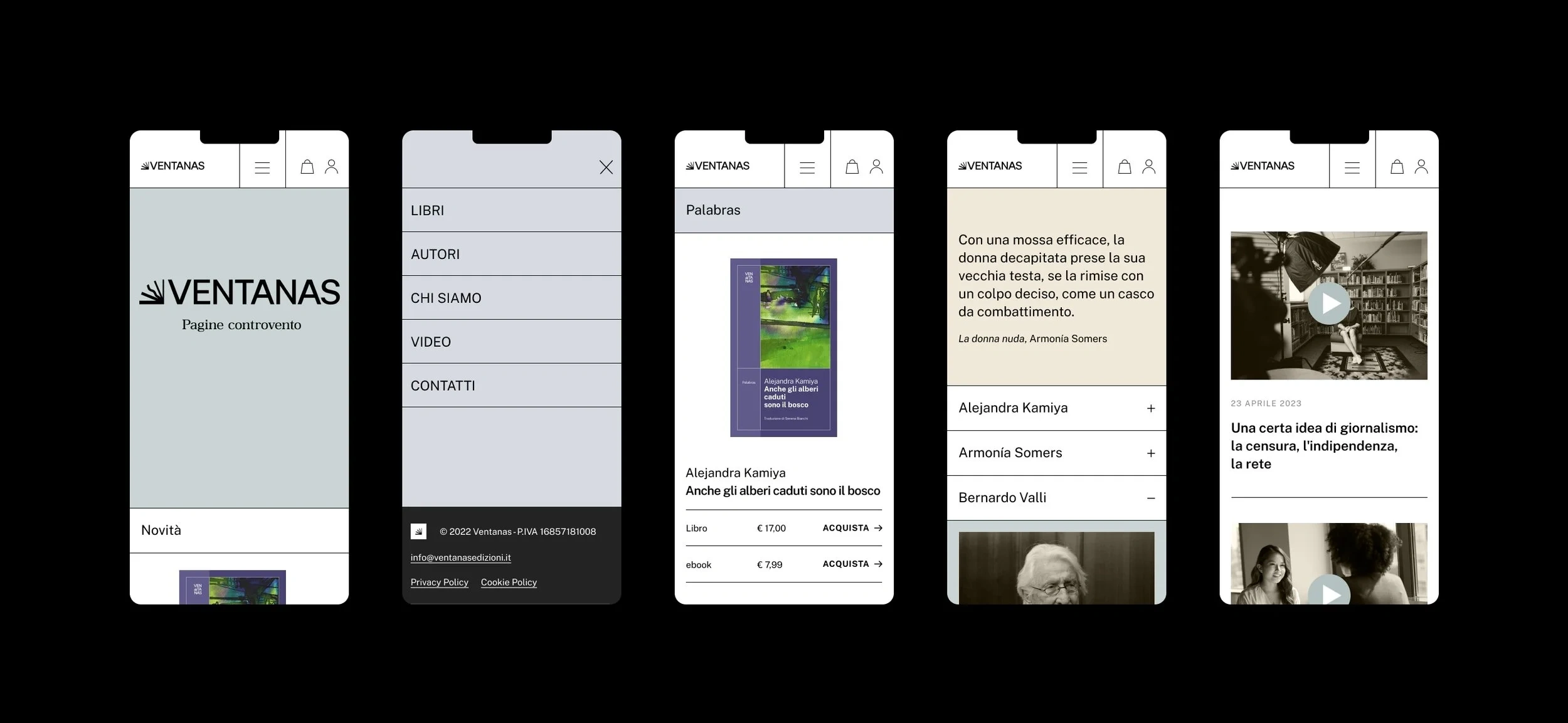 I developed a minimal identity built around the idea of the window as both frame and opening. The logo sits between two interpretations: is it a window, or a book? The visual system uses clean linear structures to frame images and support typography, while a neutral colour palette allows the books to stand out strongly, especially on the website.