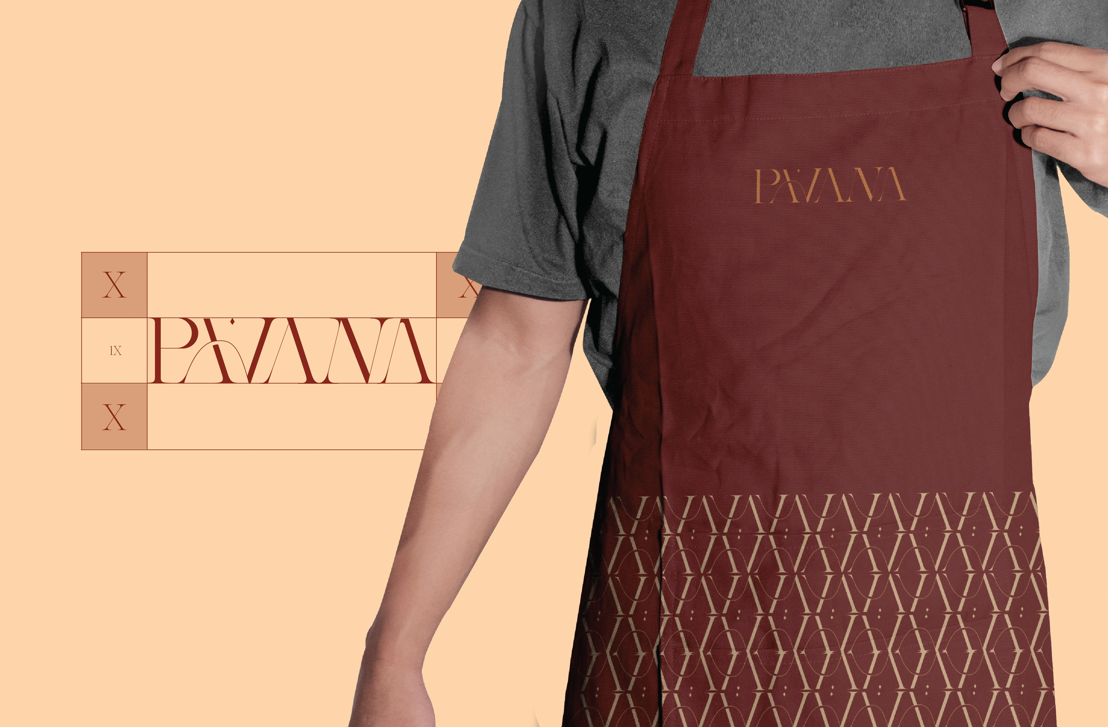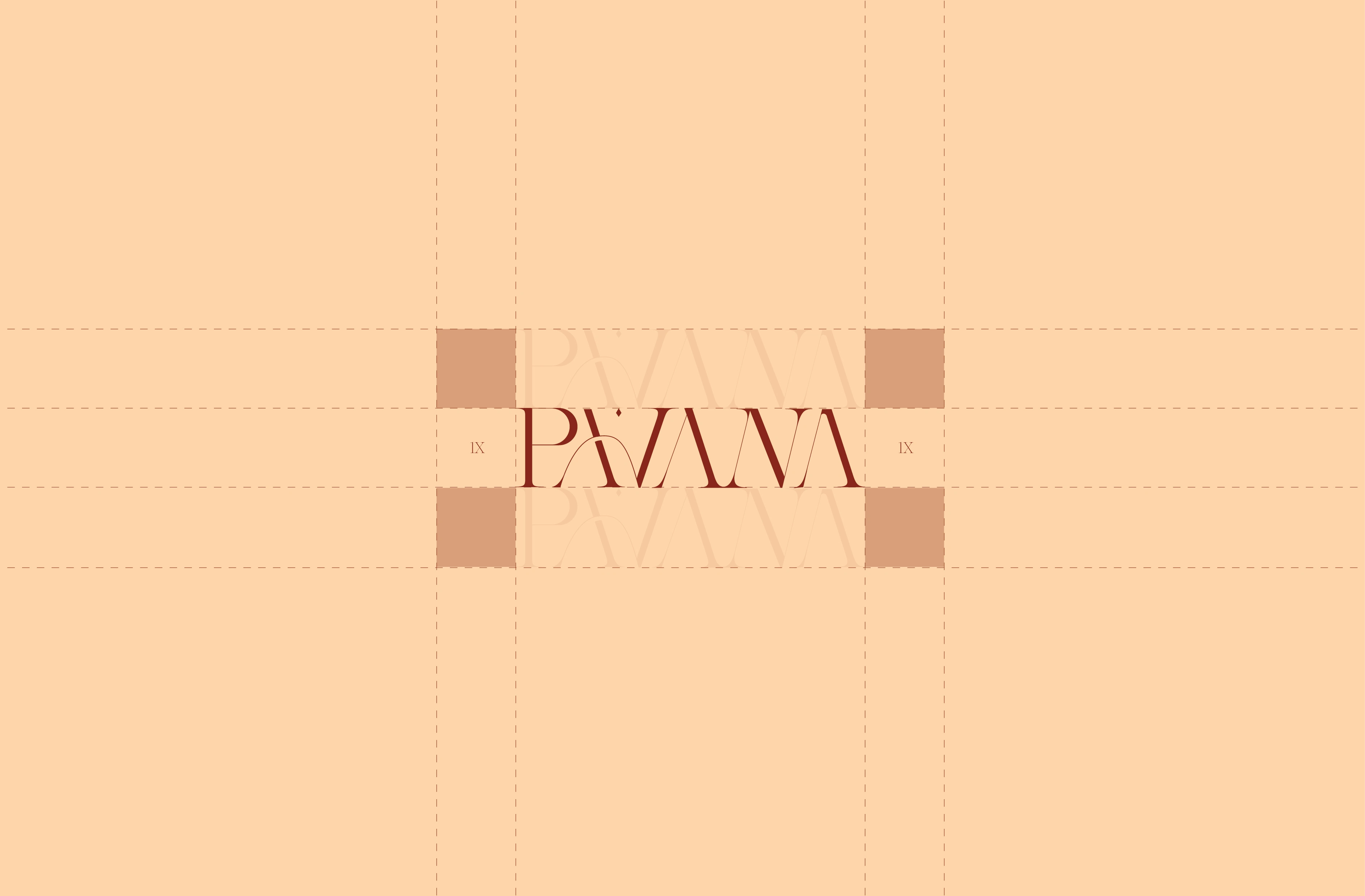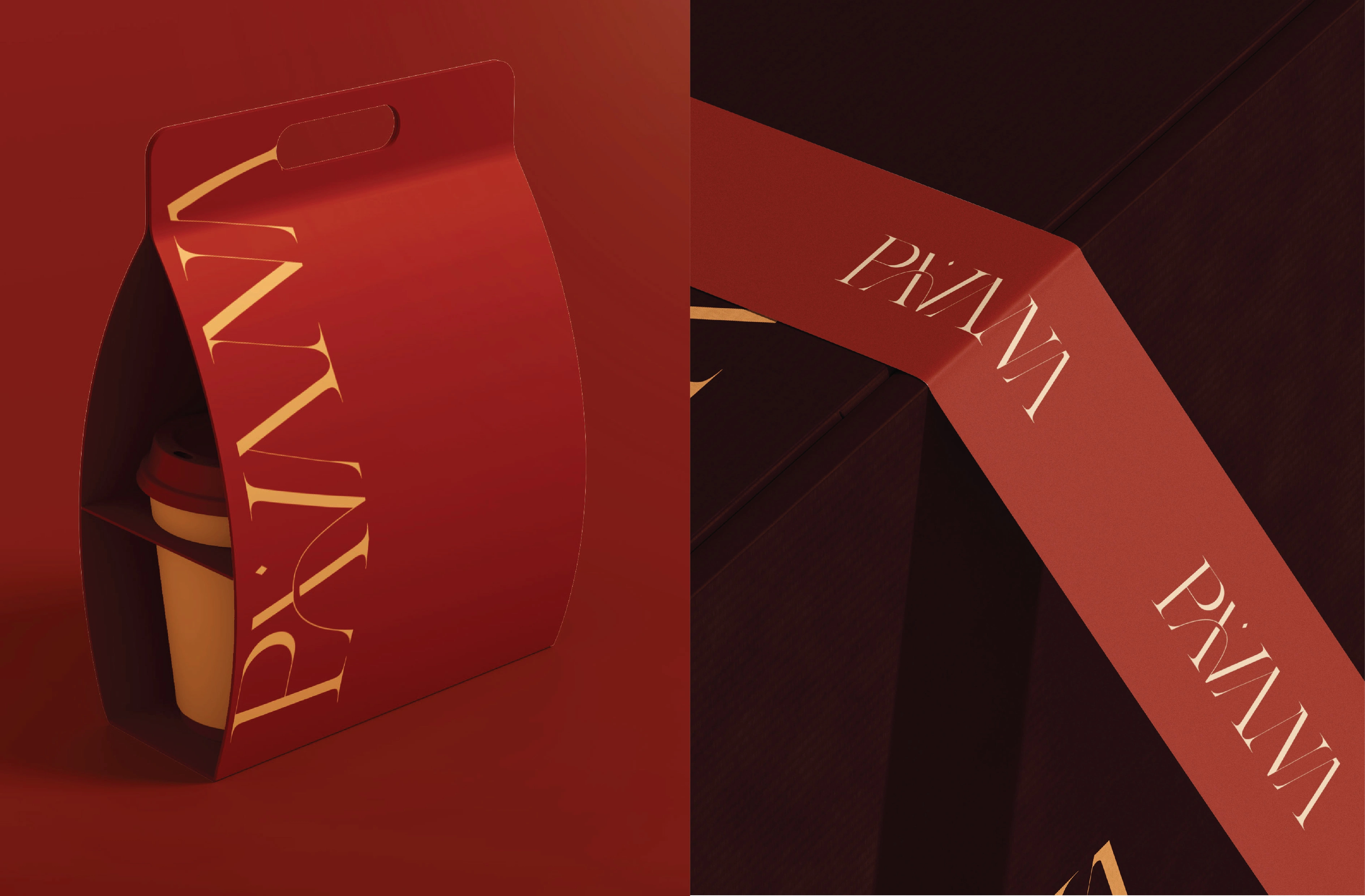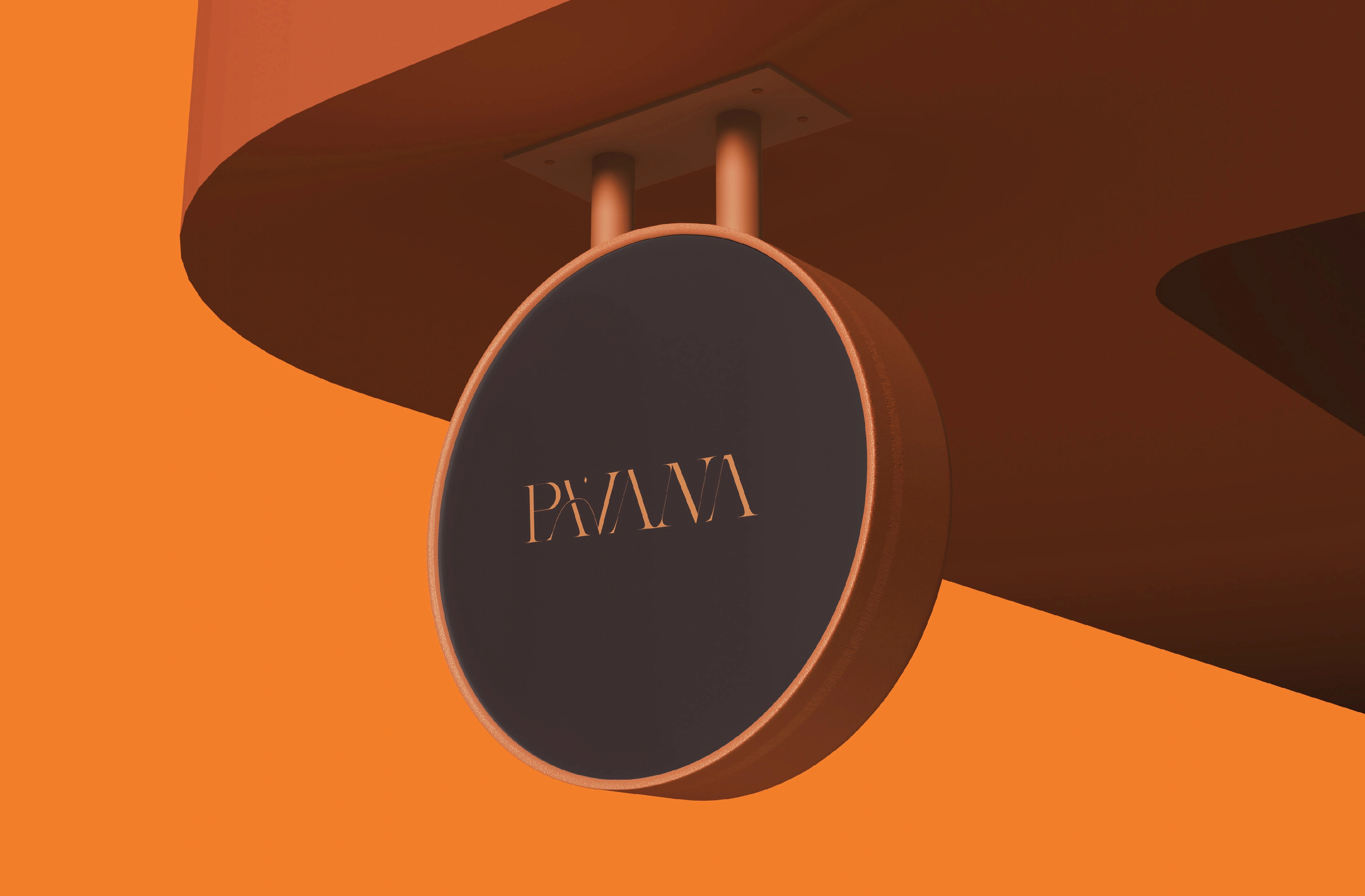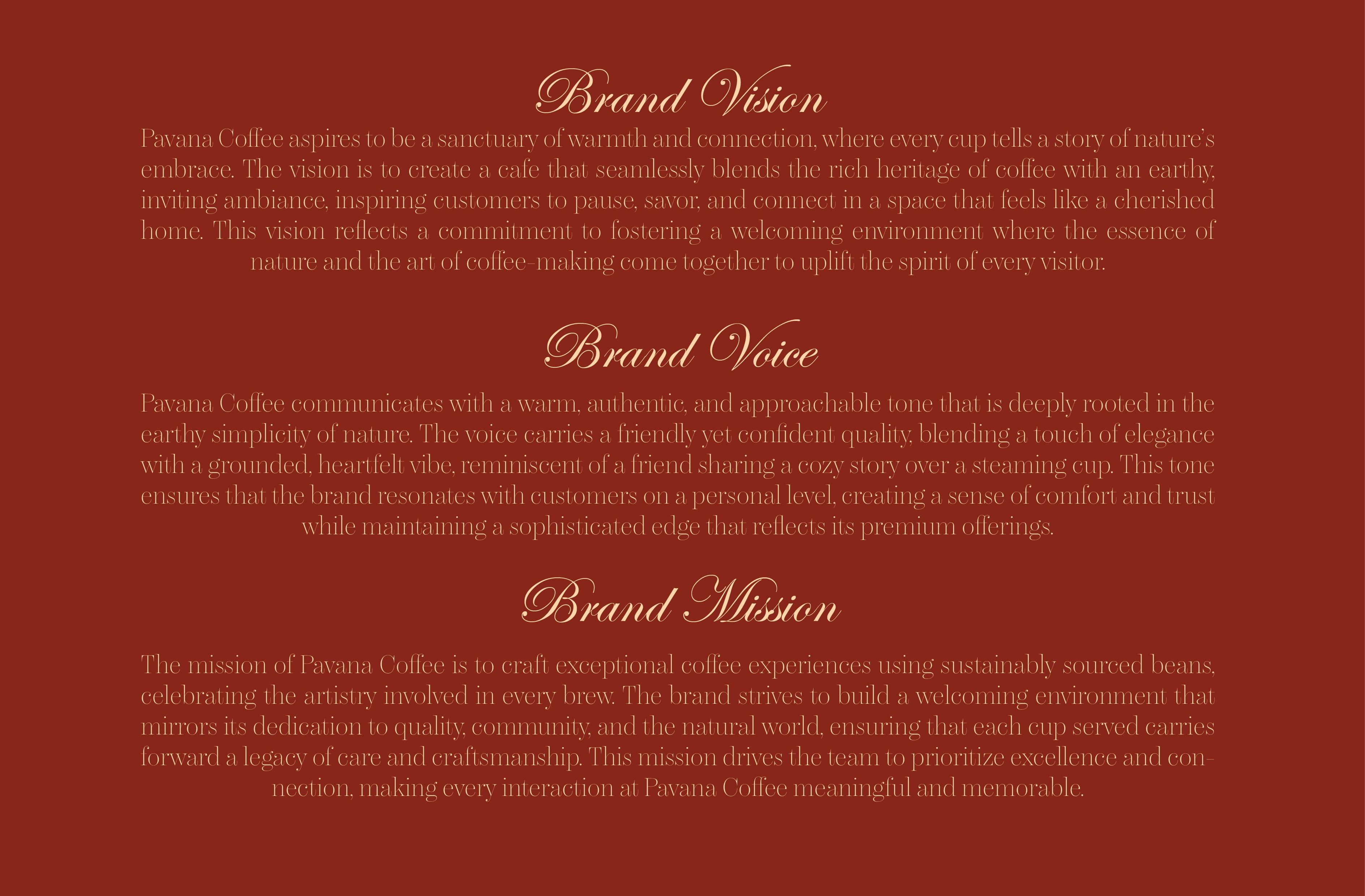 Pavana Coffee: earthy tones (soft cream, warm orange, deep brown) with a unique "v" logo. Designed for cups and social media, reflecting sustainability.