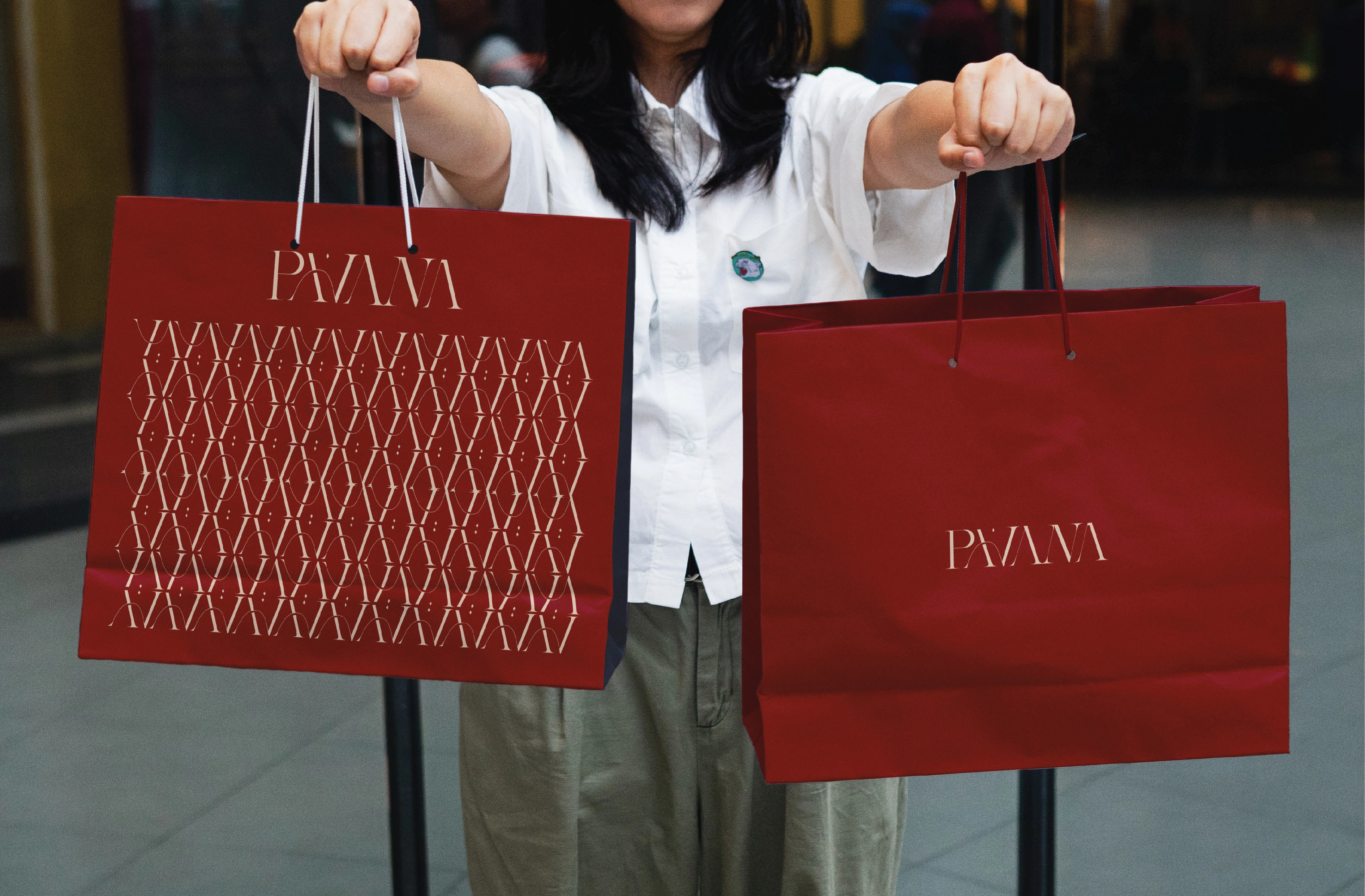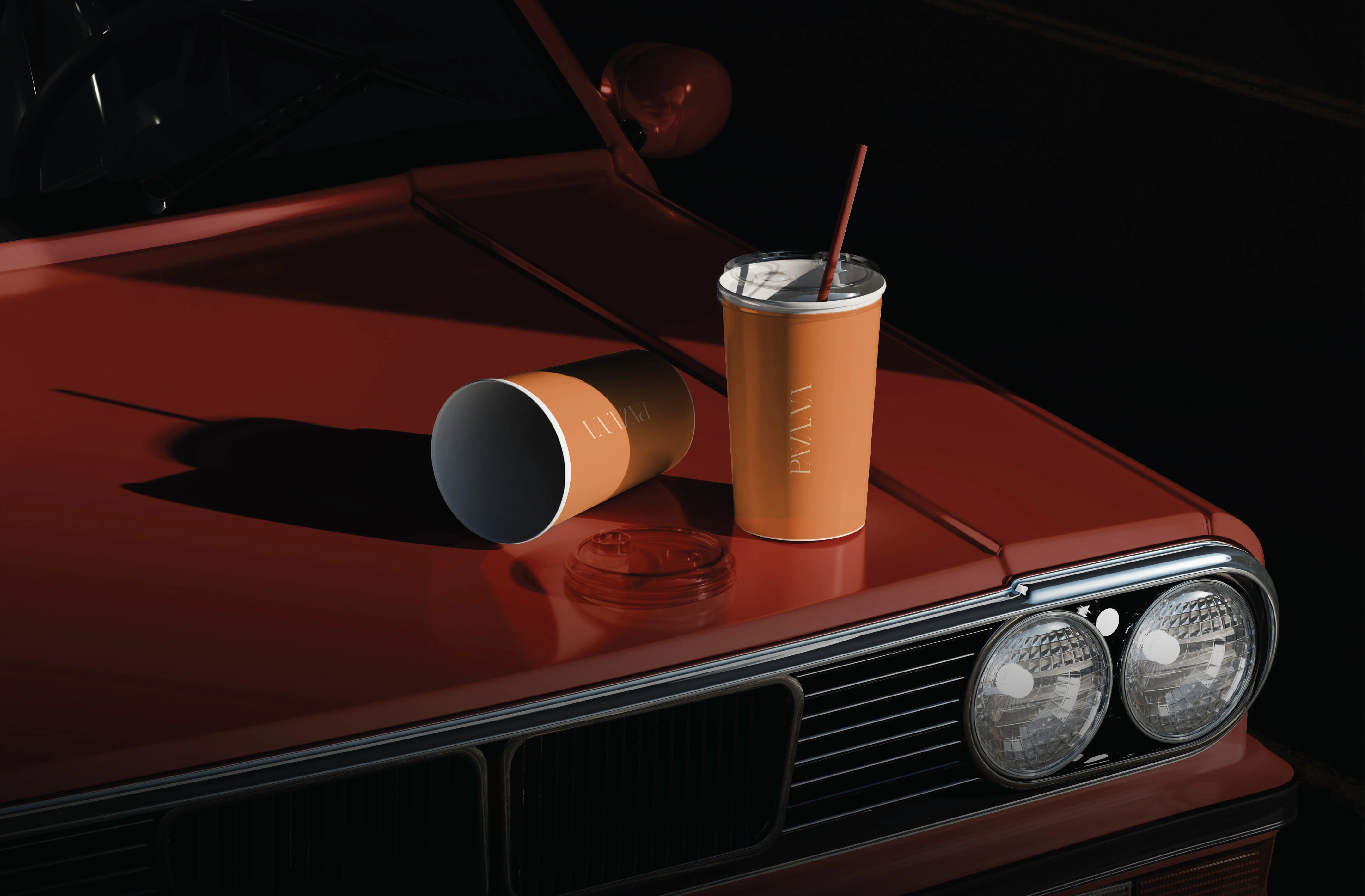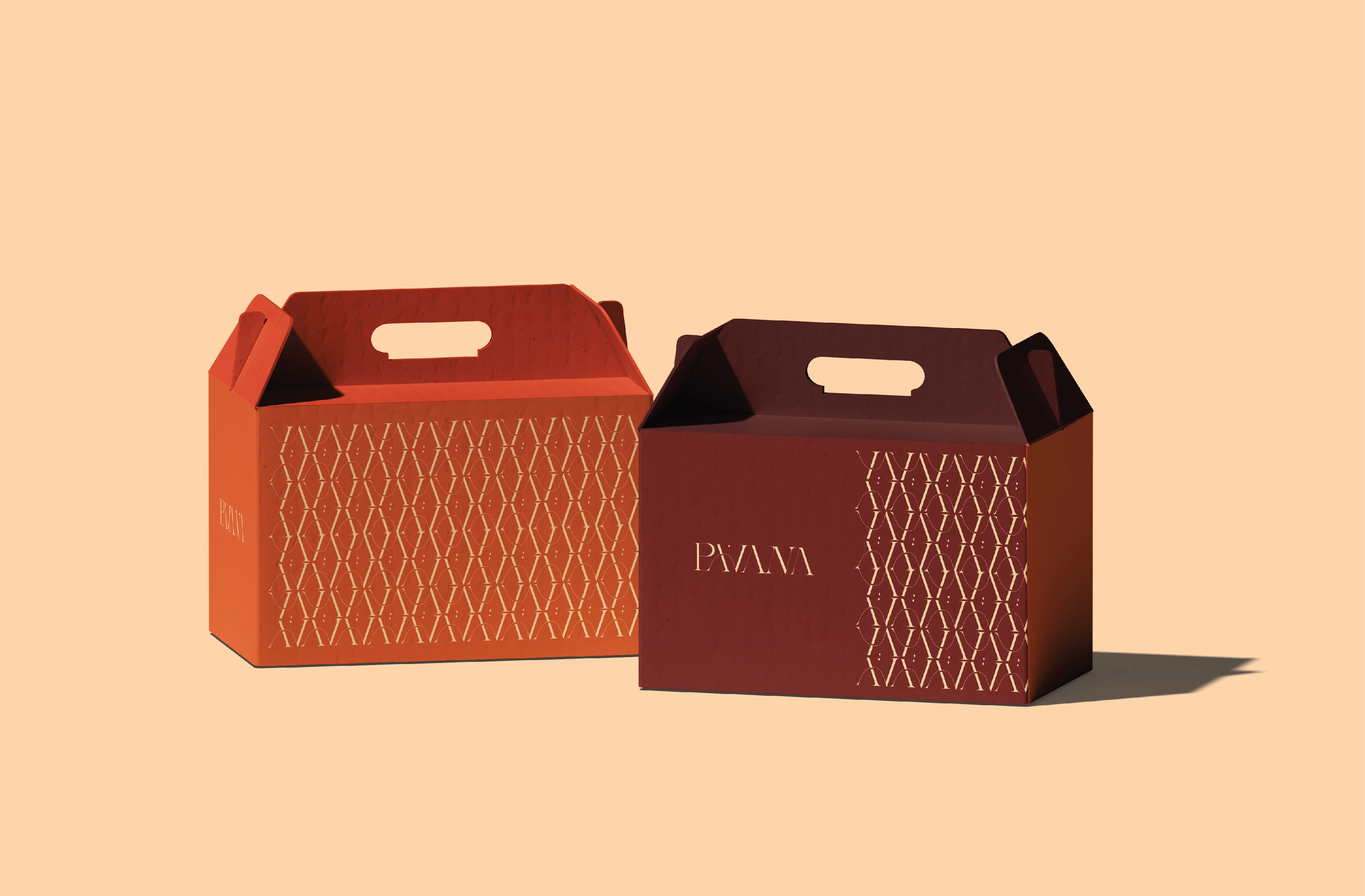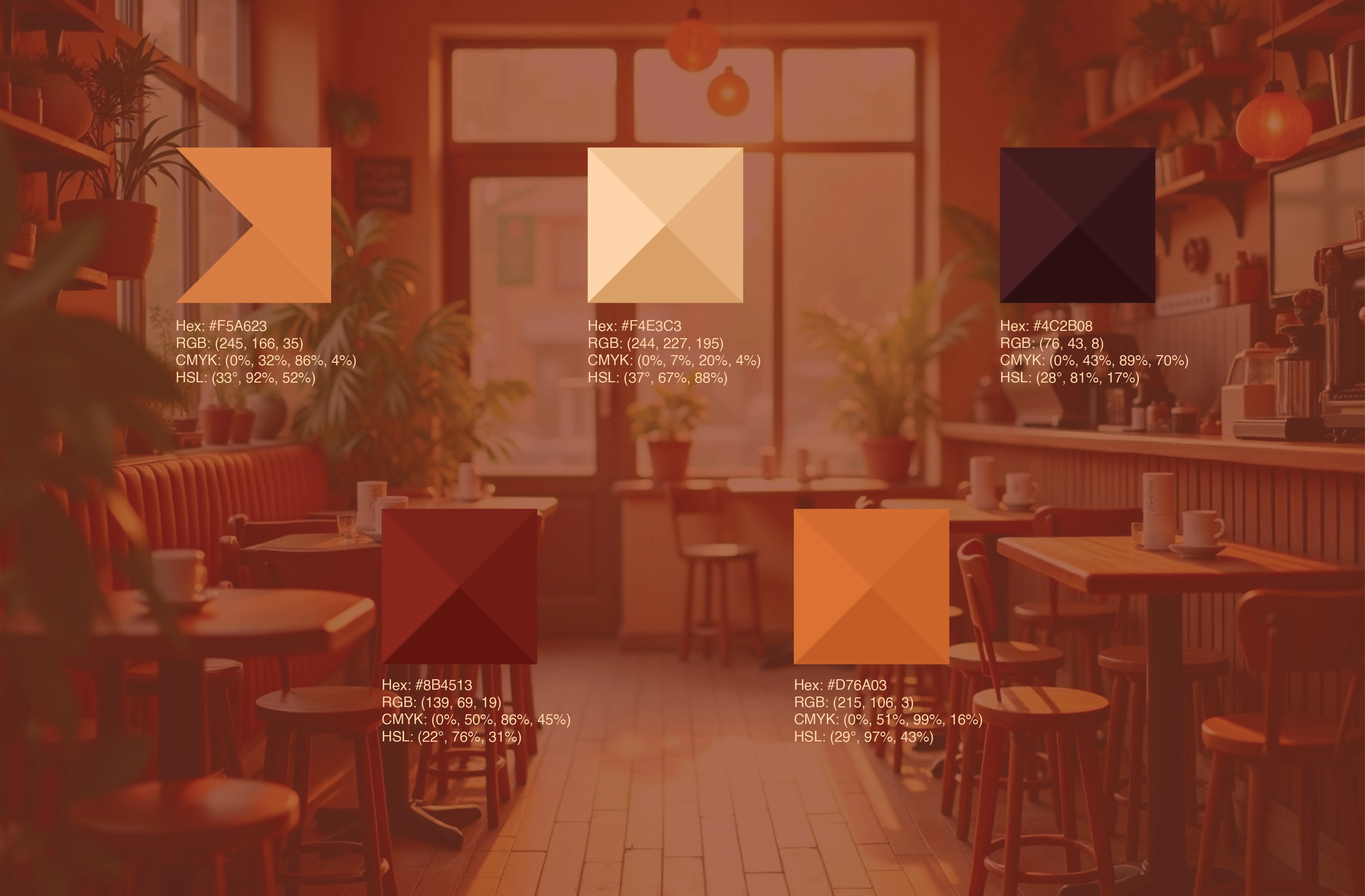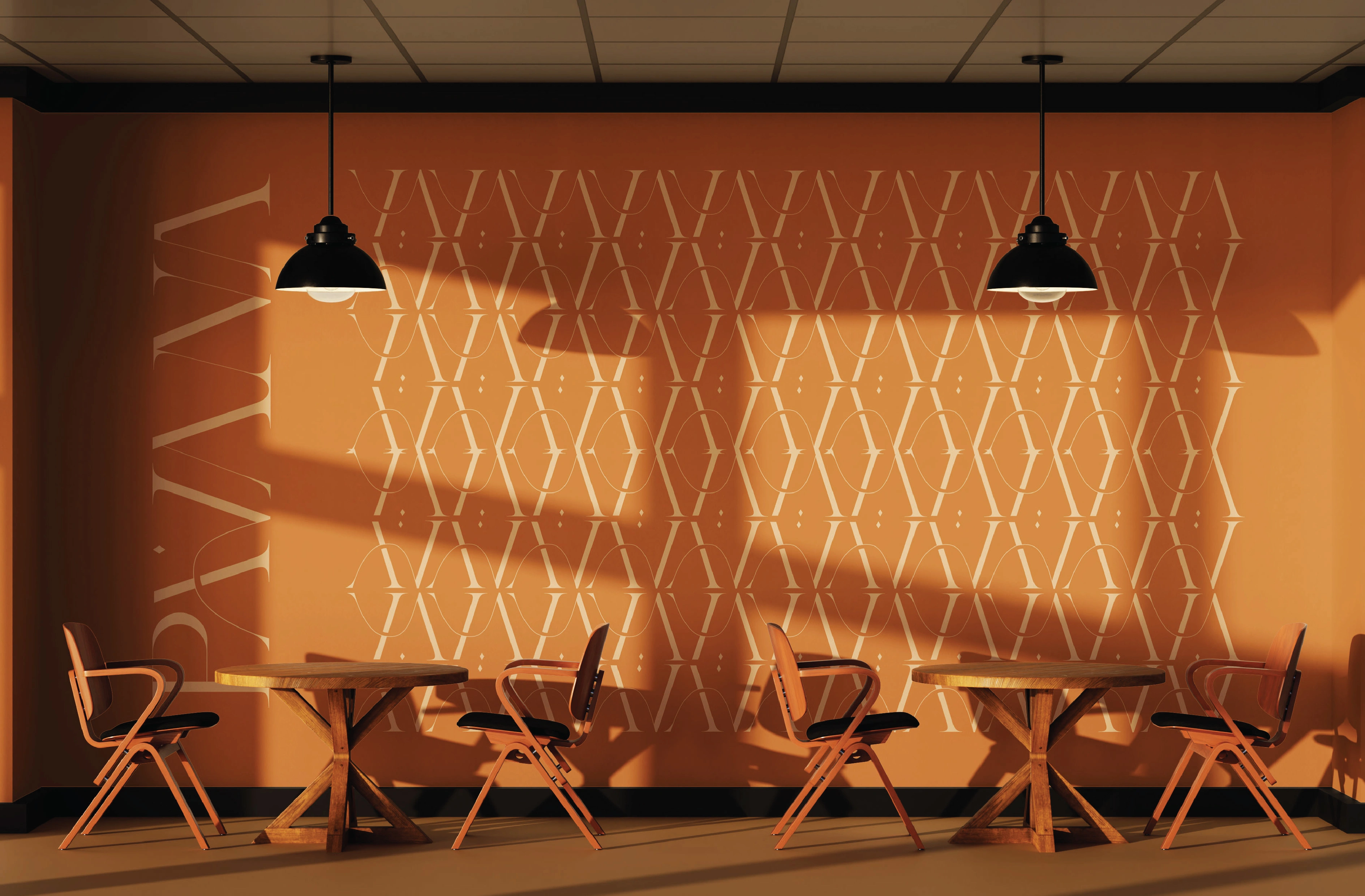 Pavana Coffee: earthy tones (soft cream, warm orange, deep brown) with a unique "v" logo. Designed for cups and social media, reflecting sustainability.