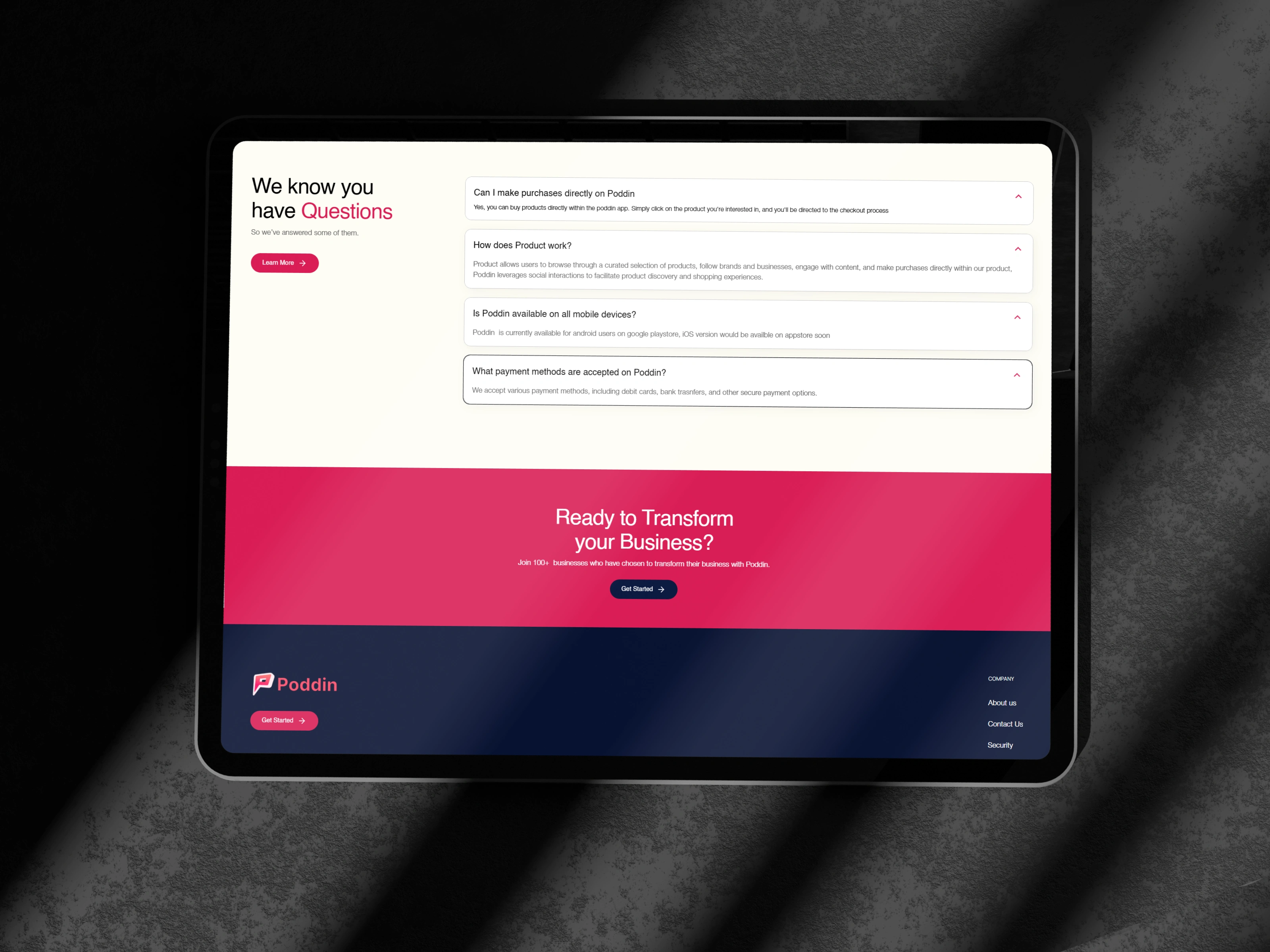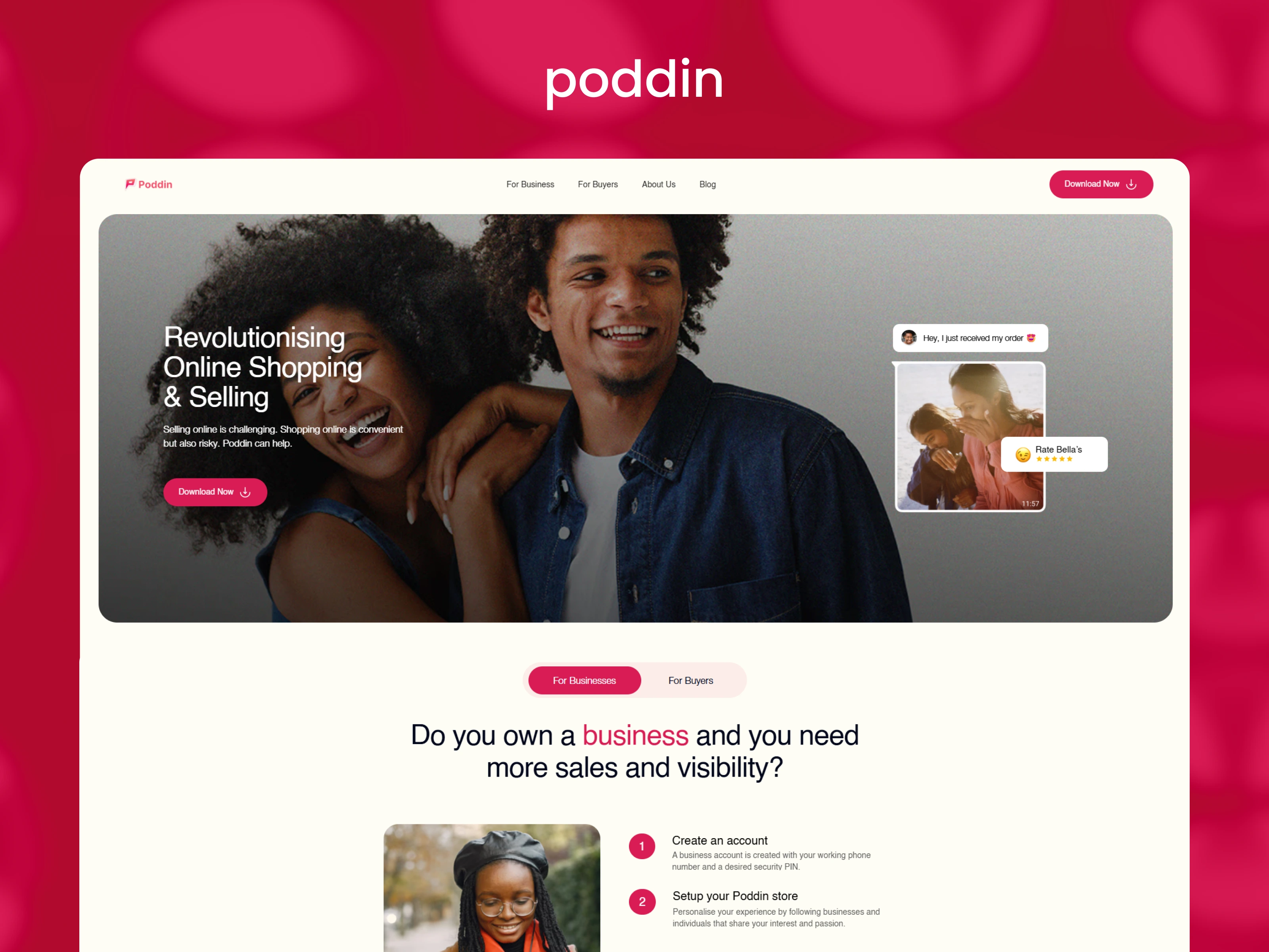 Poddin needed a vibrant, conversion-driven digital home to introduce its "social commerce" ecosystem. The platform aims to make selling online less challenging and shopping online less risky. I was responsible for designing a landing page that effectively communicates this dual-sided marketplace, providing a seamless onboarding experience for both business owners looking for visibility and buyers seeking a secure, social way to shop.