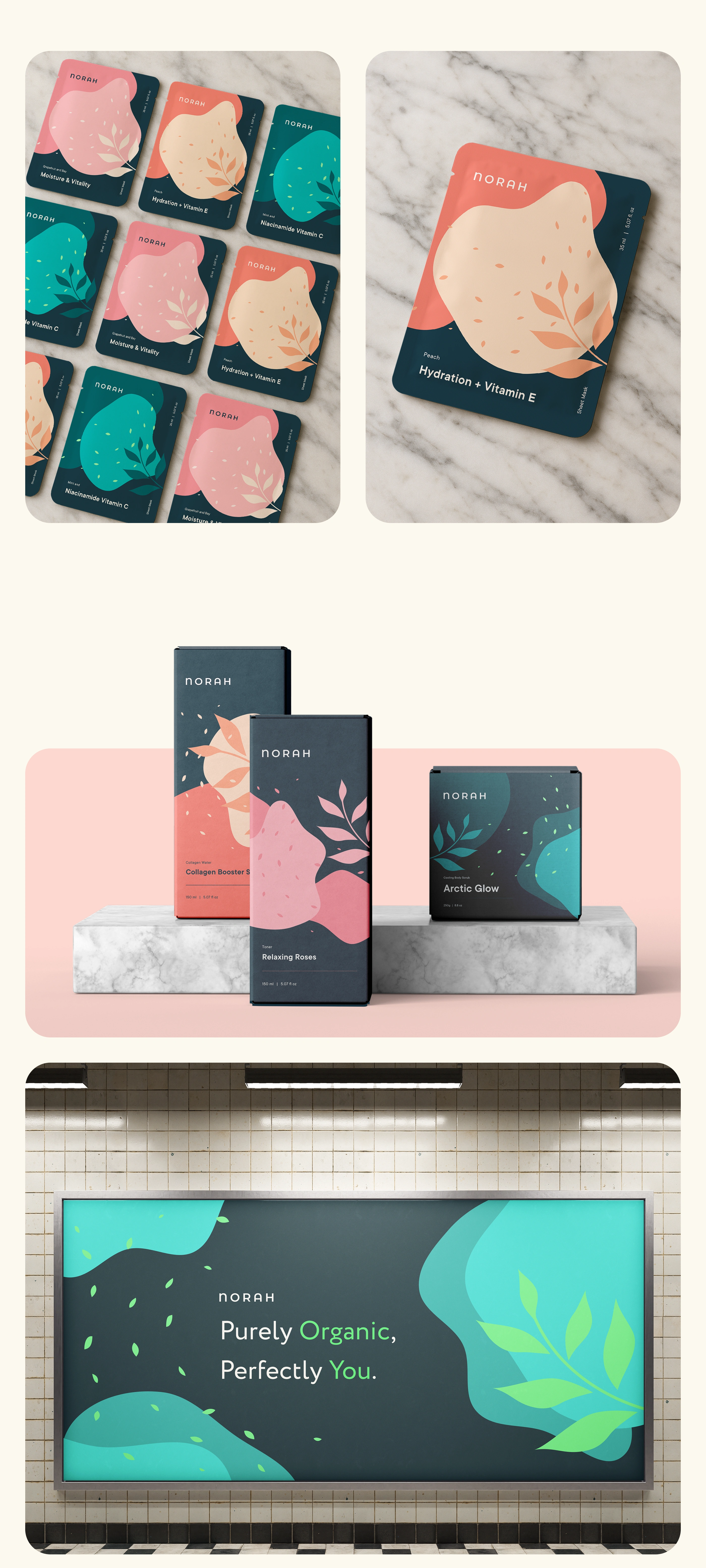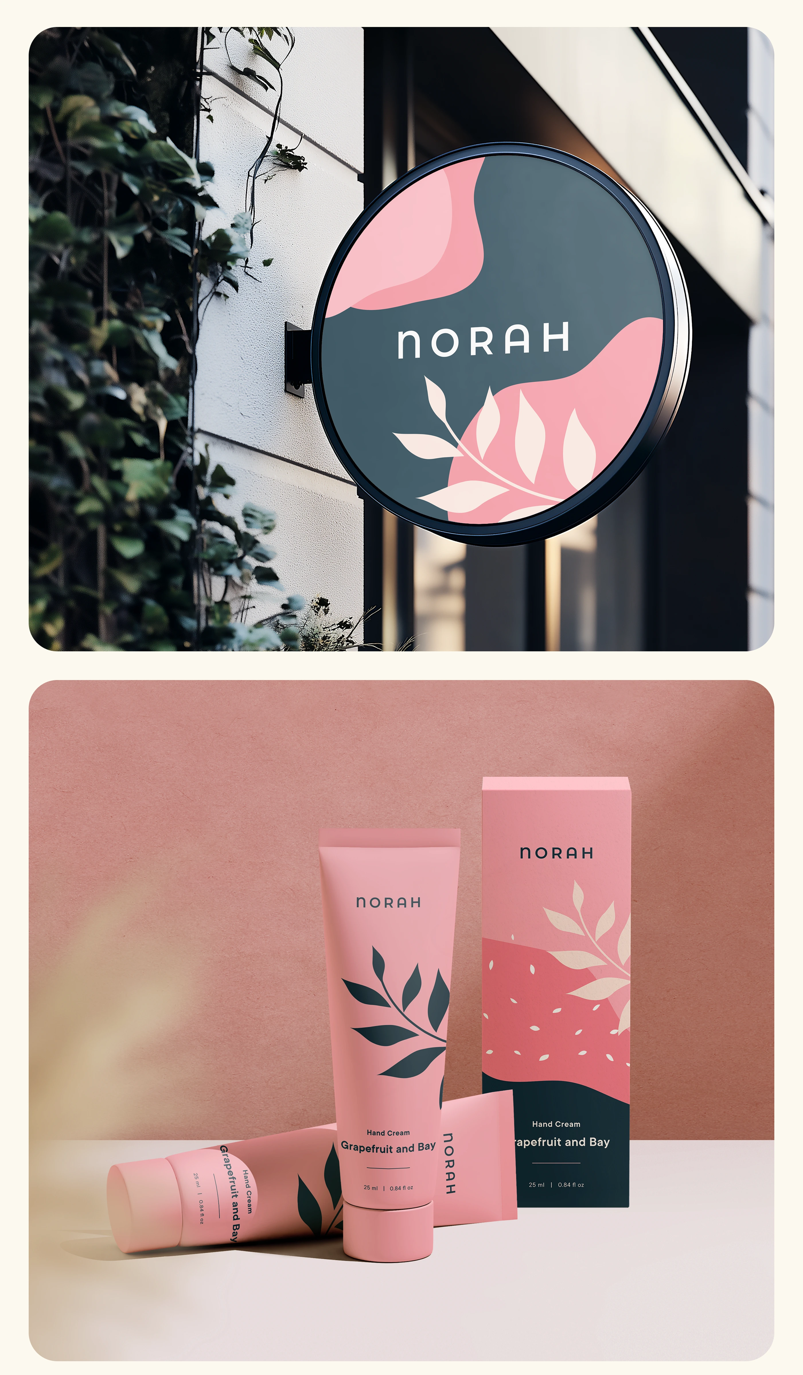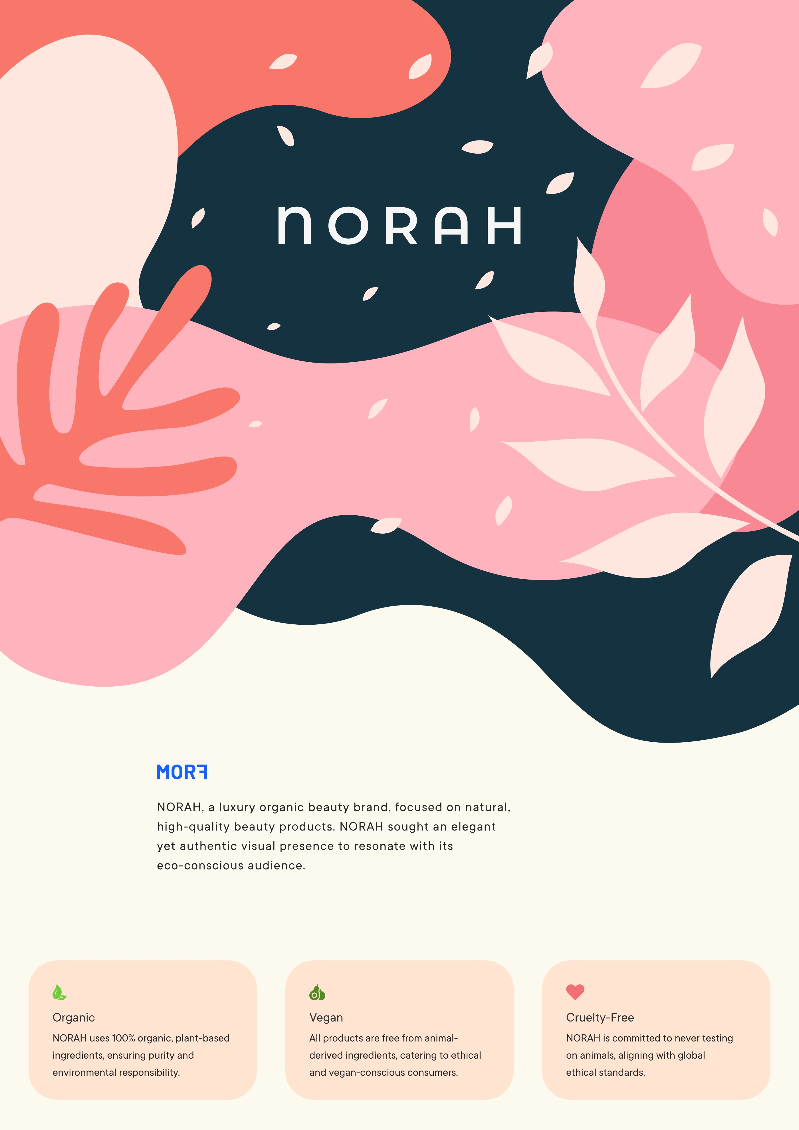NORAH, a conceptual luxury organic beauty brand, features a cohesive identity across its skincare, haircare, and body care lines.