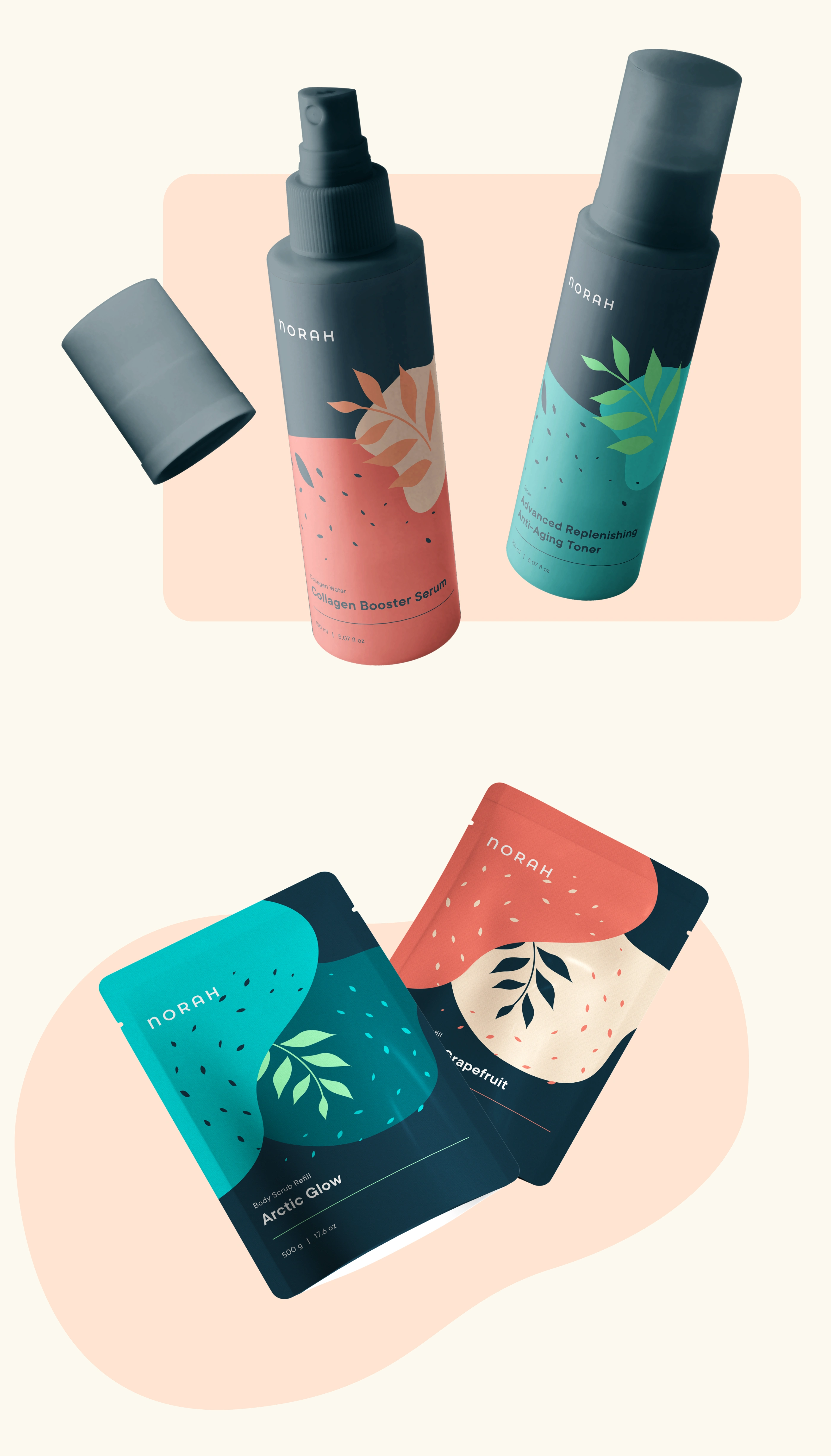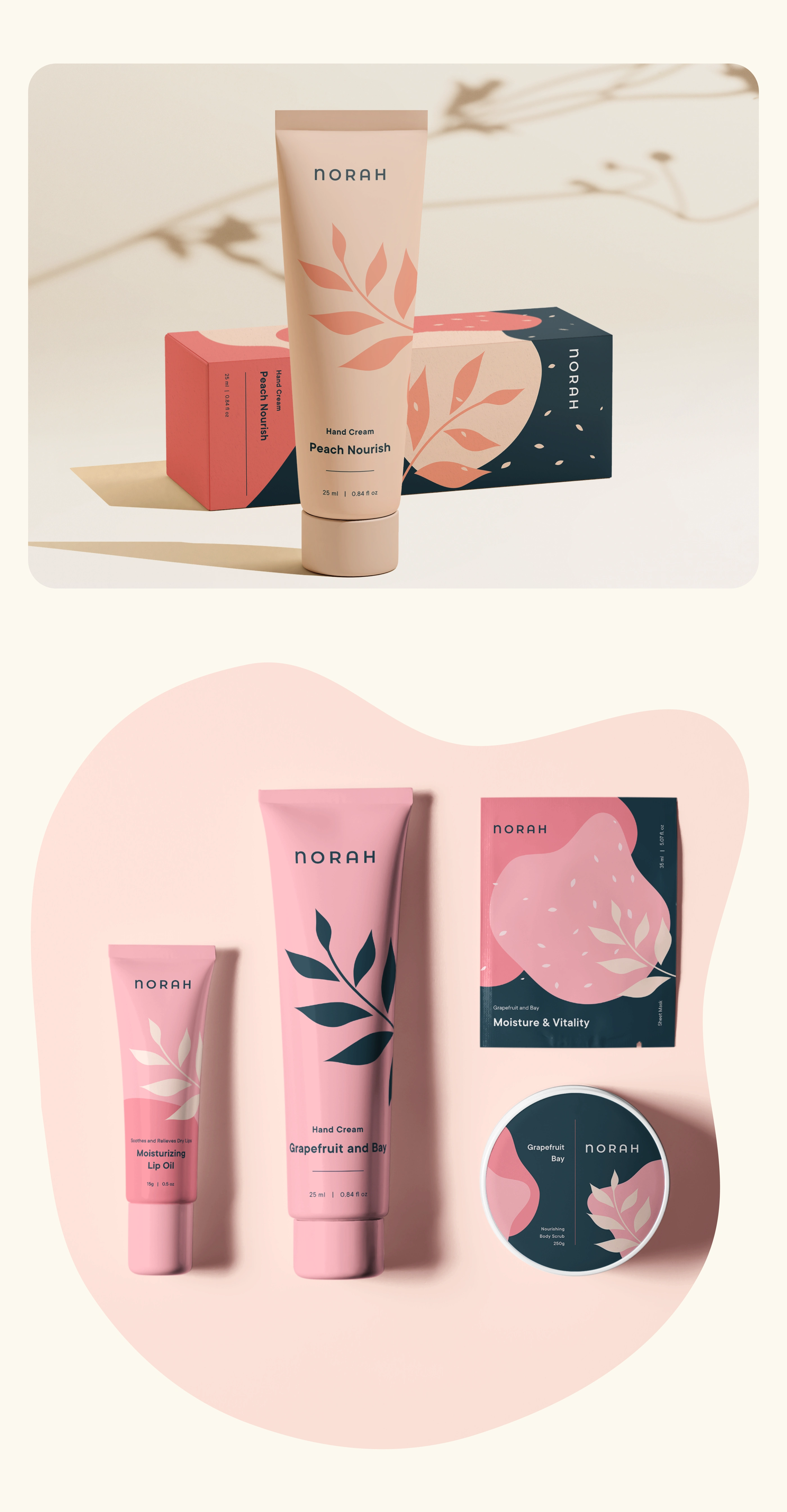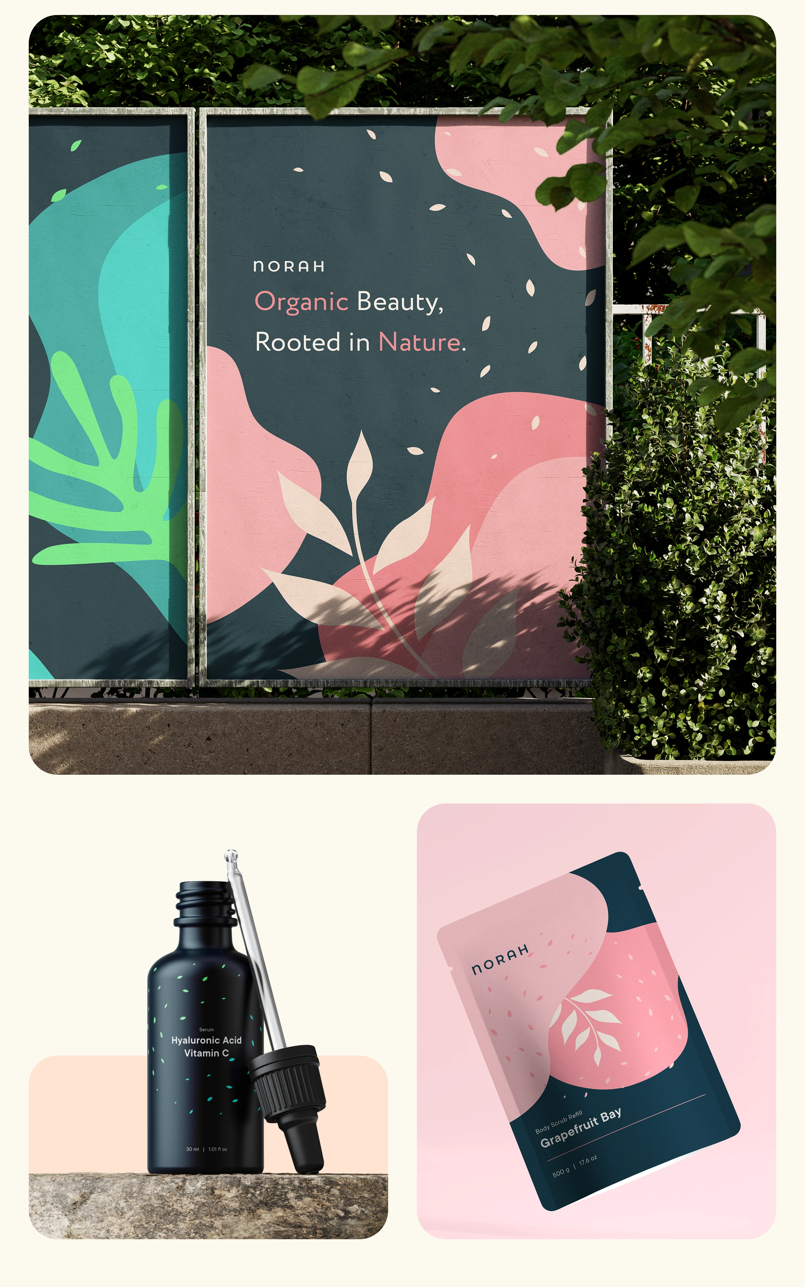 NORAH, a conceptual luxury organic beauty brand, features a cohesive identity across its skincare, haircare, and body care lines.
