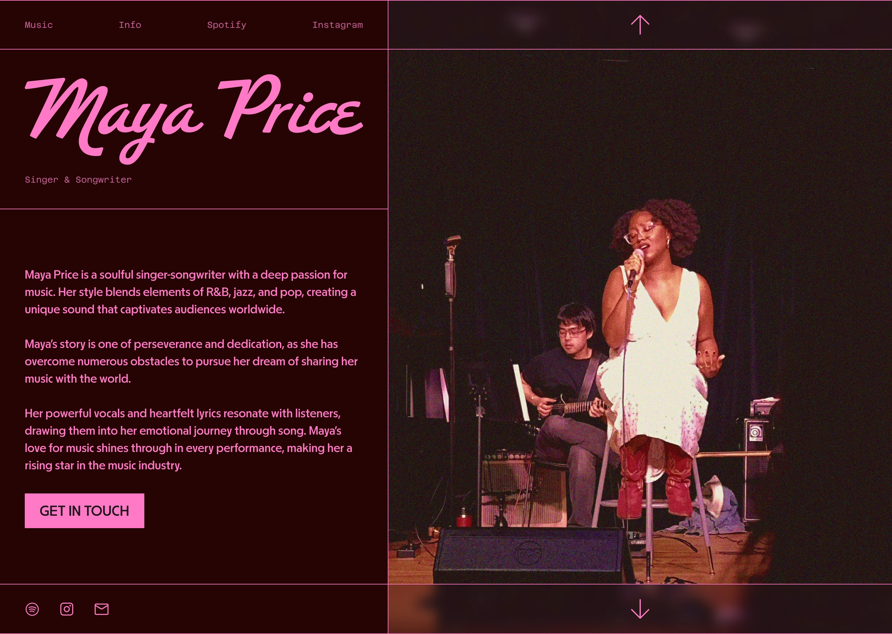 I designed a static one-page website for my sister who is a professional Singer, using Framer. The website features a custom animated carousel highlighting images and videos of performances, headshots, and more.