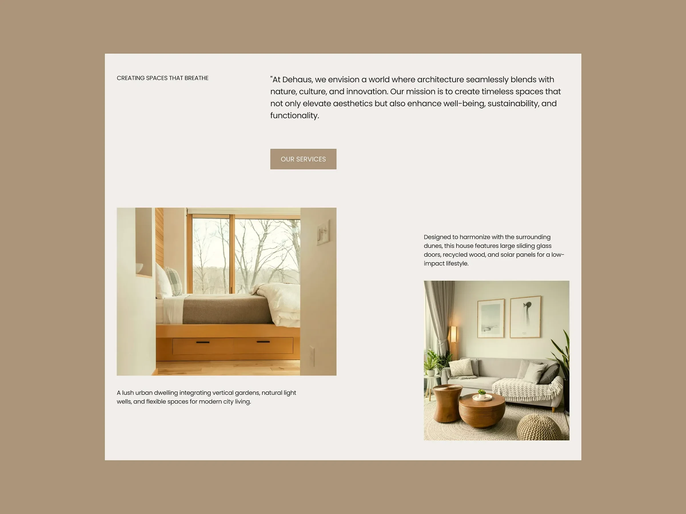 At Dehaus, we create architecture that harmonizes aesthetics, functionality, and sustainability.