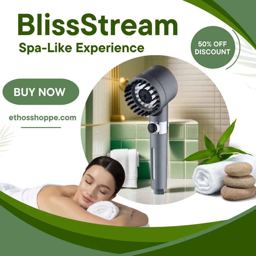 Created a high-converting image ad for Bliss Stream, showcasing a spa-like shower head in action—highlighting its versatile spray settings, luxurious water flow, and eco-friendly, water-saving design.