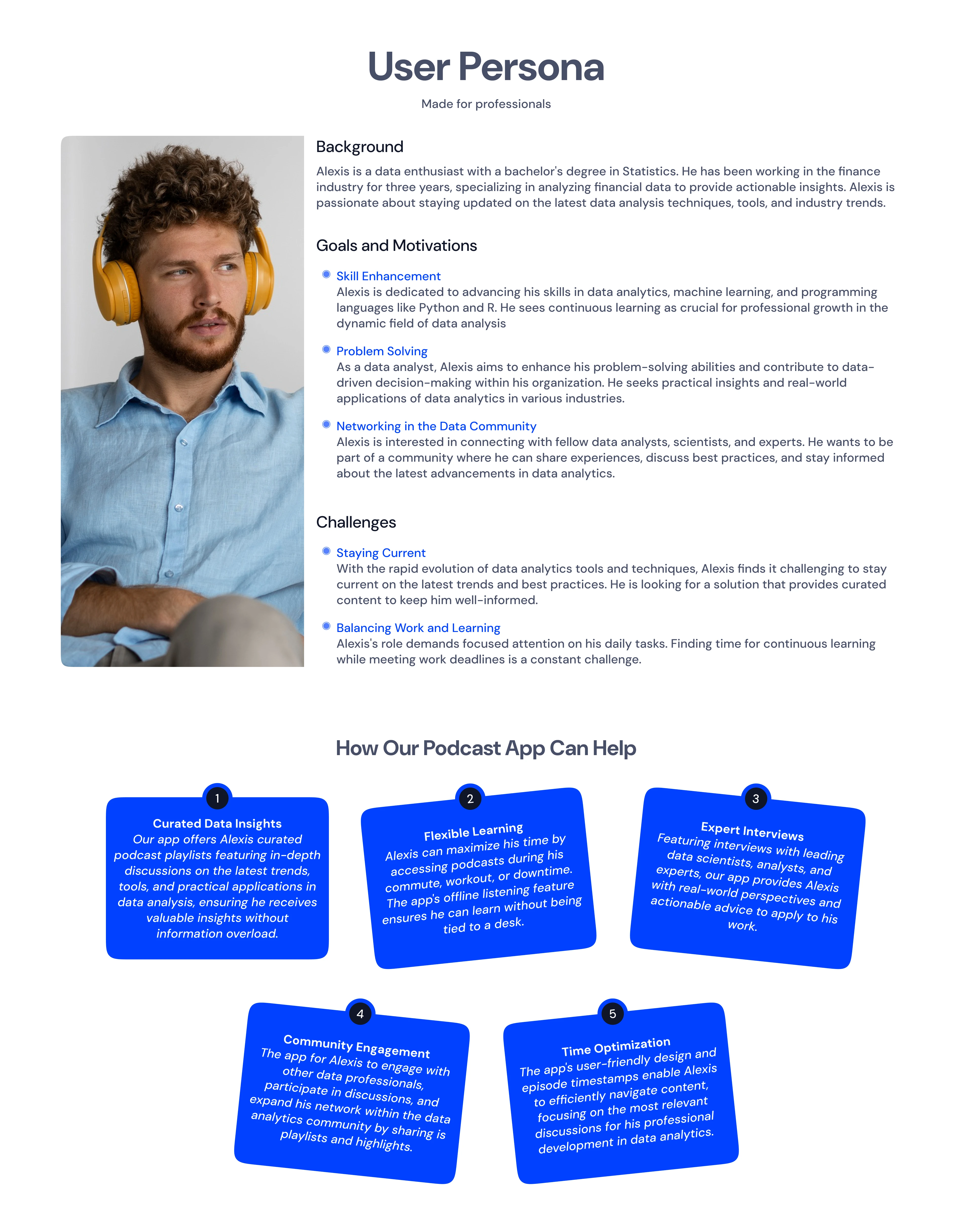 This product sits at the intersection of digital media and education space, where podcasts are widely used but often poorly organized for serious learning. Many podcast apps focus on volume and entertainment, leaving professionals overwhelmed by content and notifications.
