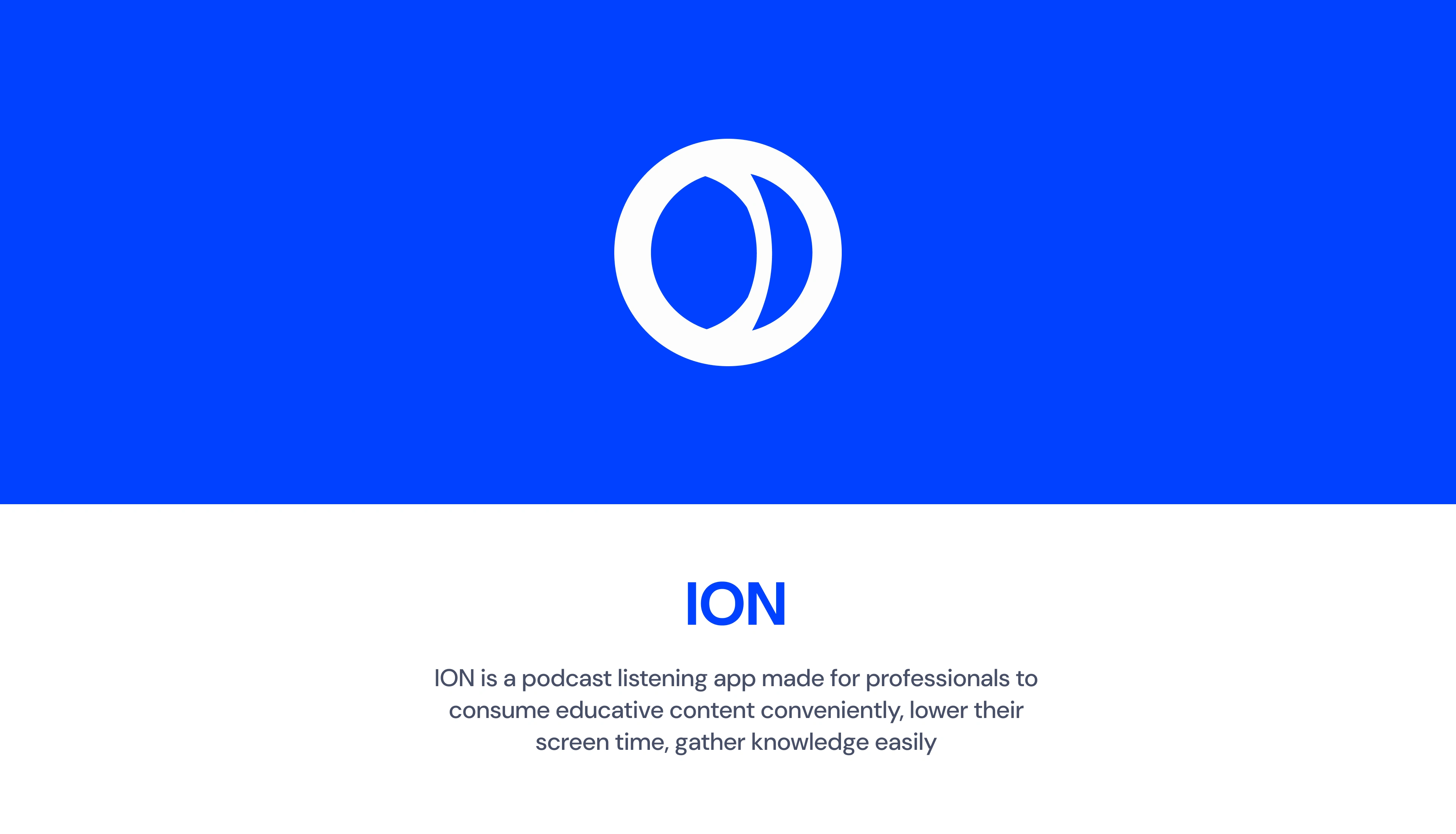 I worked on ION as a UI/UX Designer and Motion Designer. My scope covered product structure, interaction design, visual design, motion, and a video prototype. I was responsible for shaping the core experience from concept to MVP-level execution.
