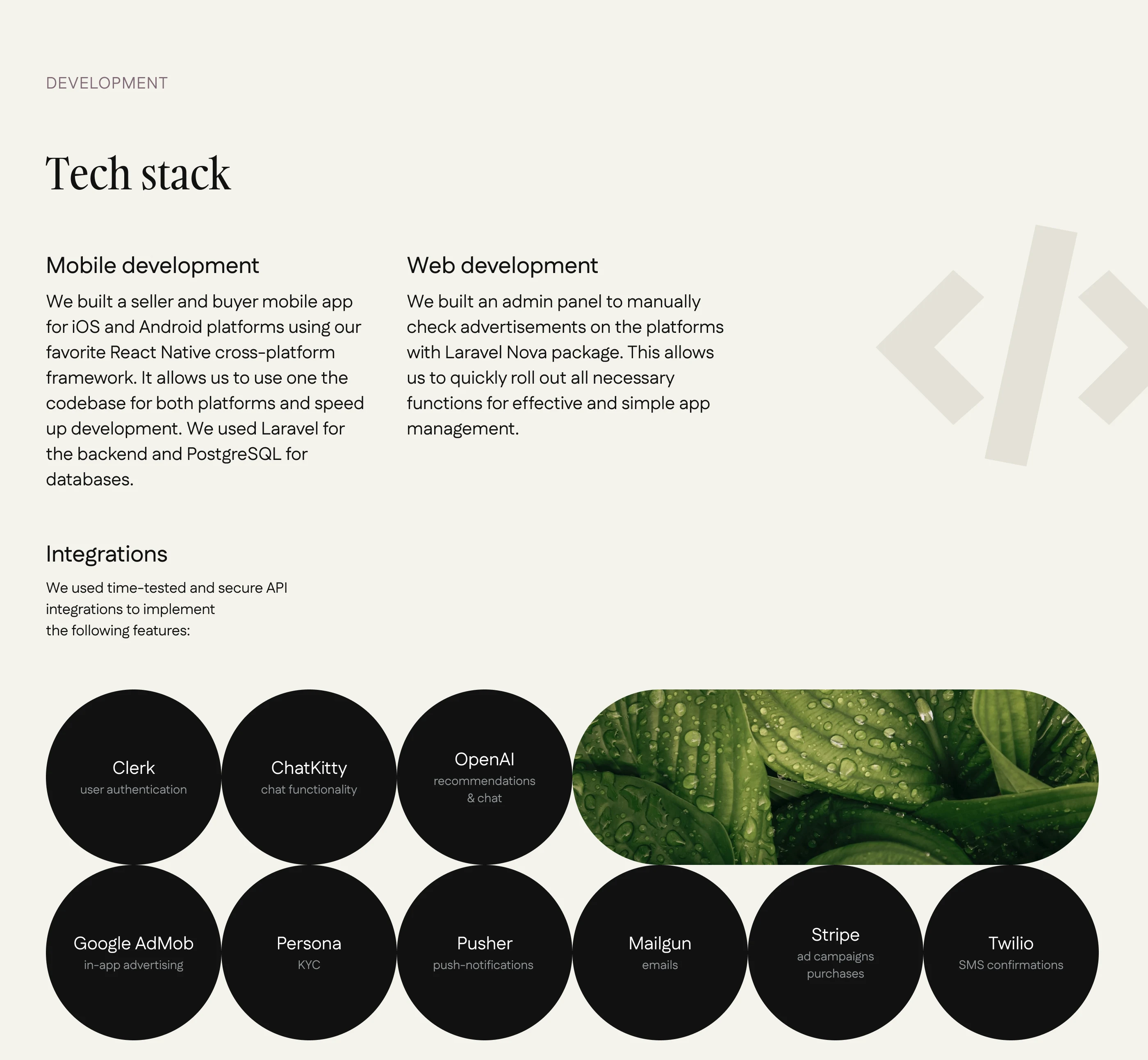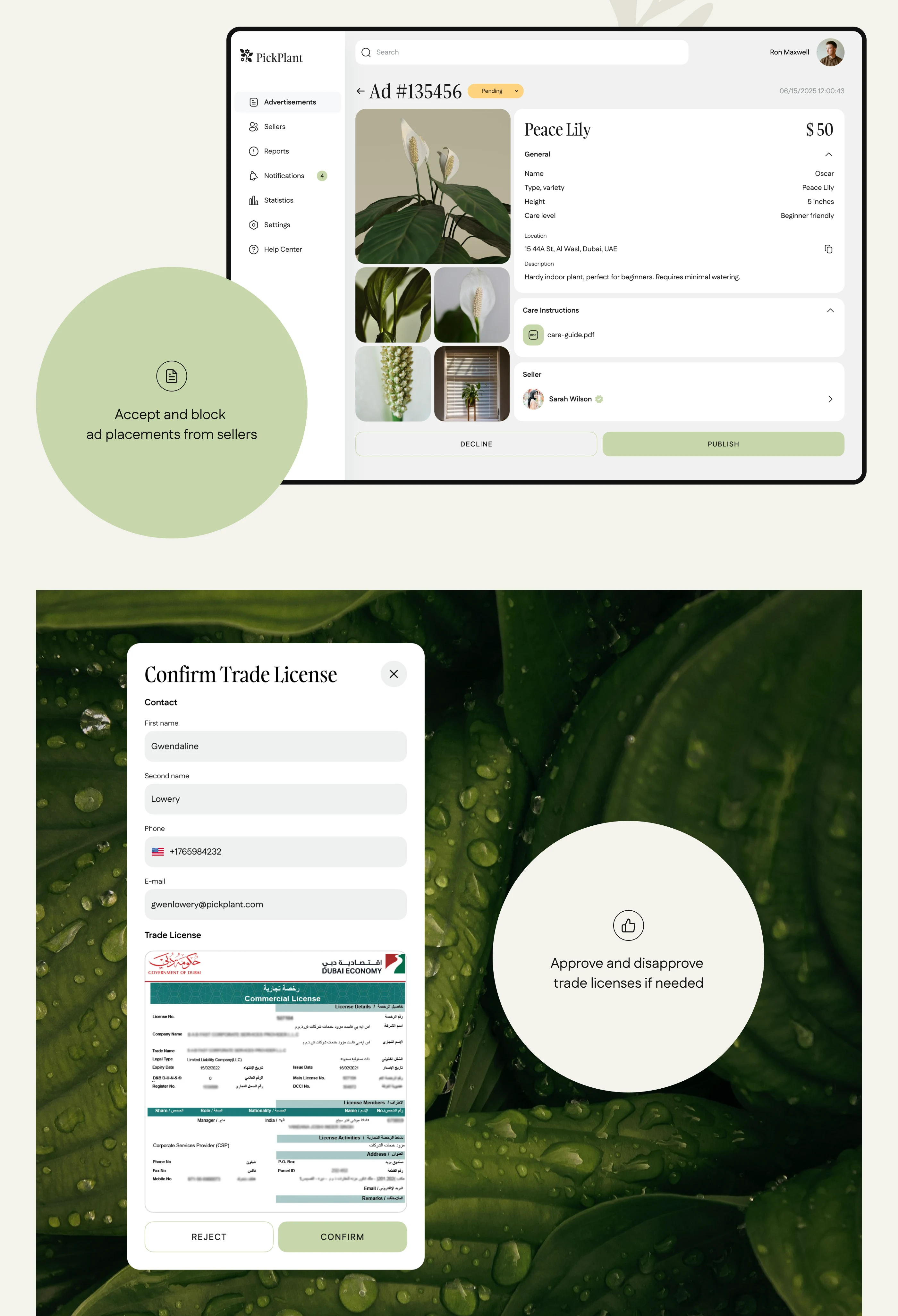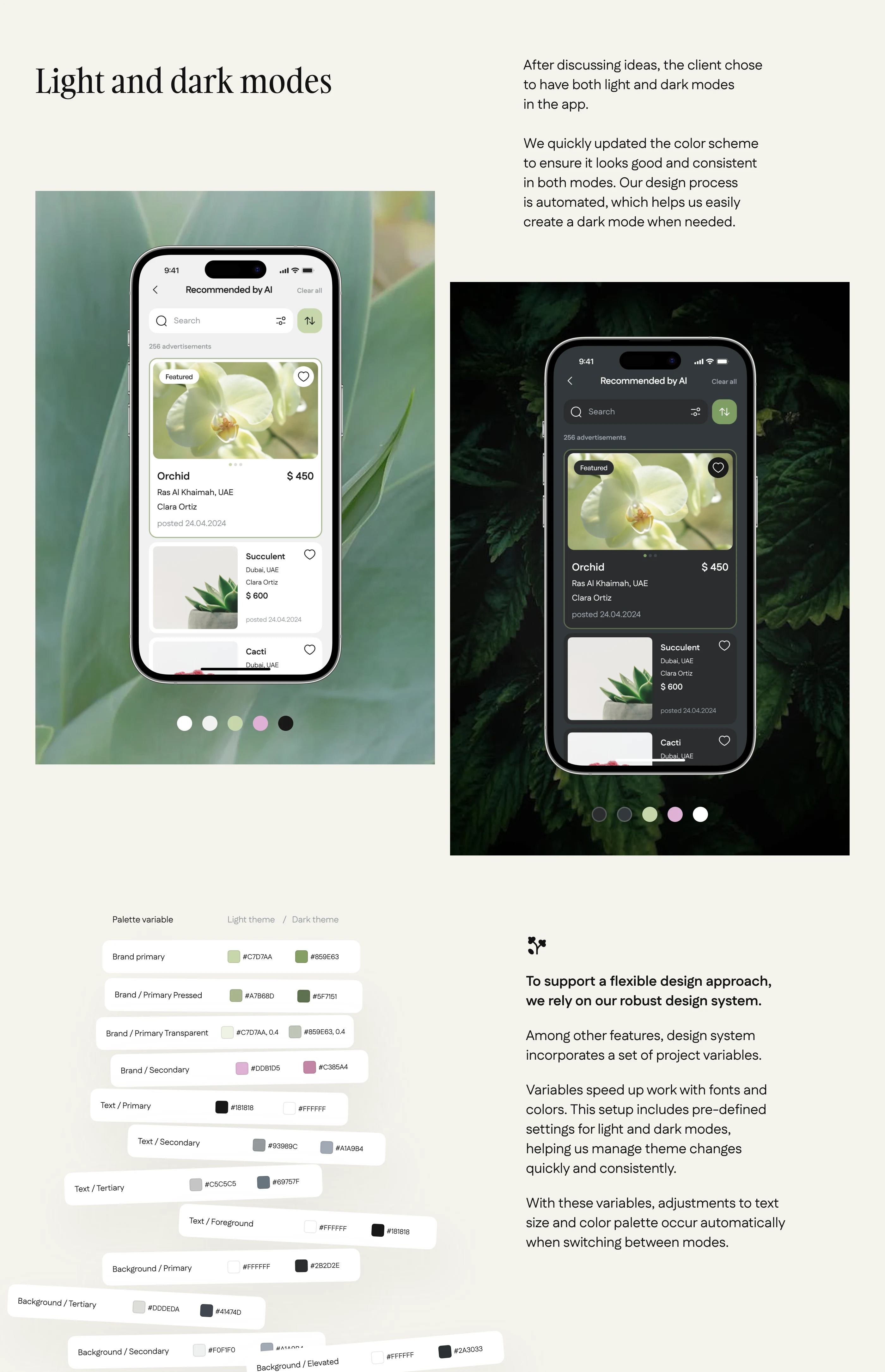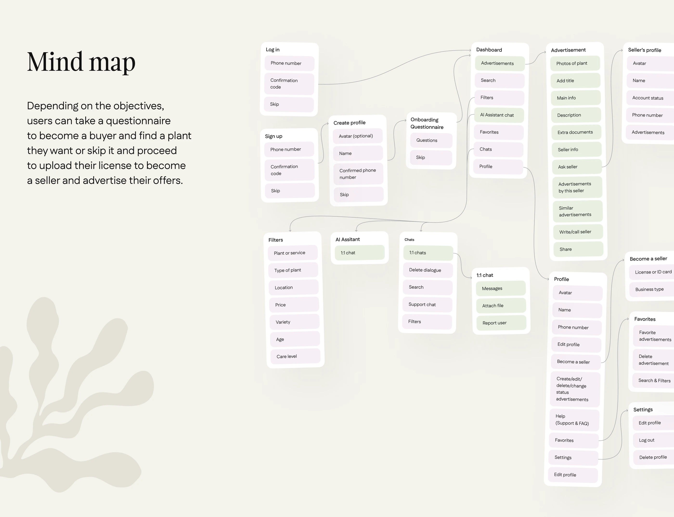 We created a marketplace app with AI-powered recommendations for the UAE indoor plants market. The solution features a cross-platform mobile app for buyers and sellers, intuitive UI/UX in light and dark modes, KYC verification, a built-in ads network, and a unique AI assistant for smart plant matching. An admin panel allows for smooth moderation, compliance with local laws, and easy management of users, ads, and trade licenses—all designed to support secure, efficient, and user-friendly online trading.
