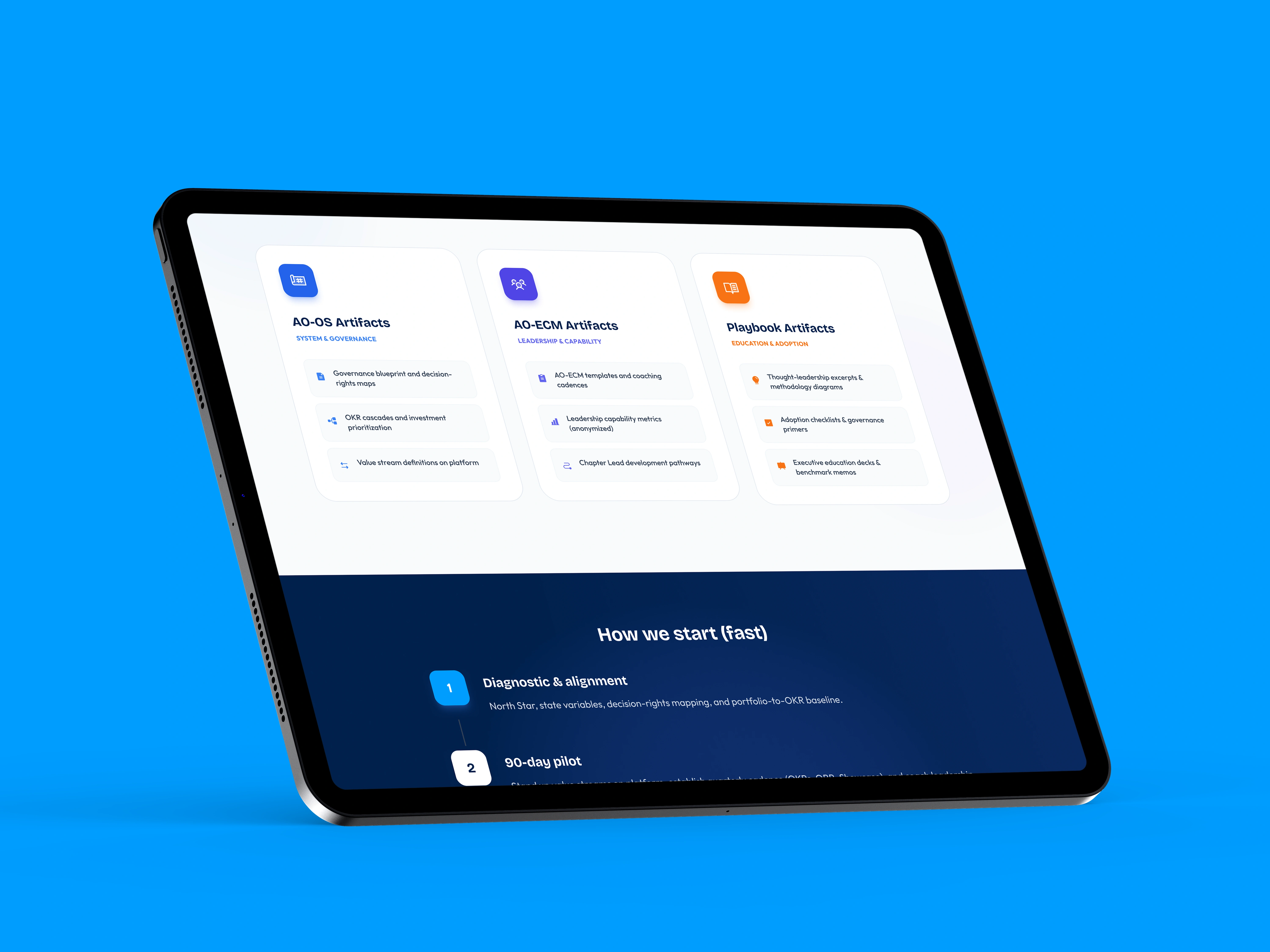 ✔ Implementation de-risking: F-pattern layouts, process visualizations, and "How We Start" frameworks reduce perceived adoption risk by 60%, addressing enterprise buyers' primary objection