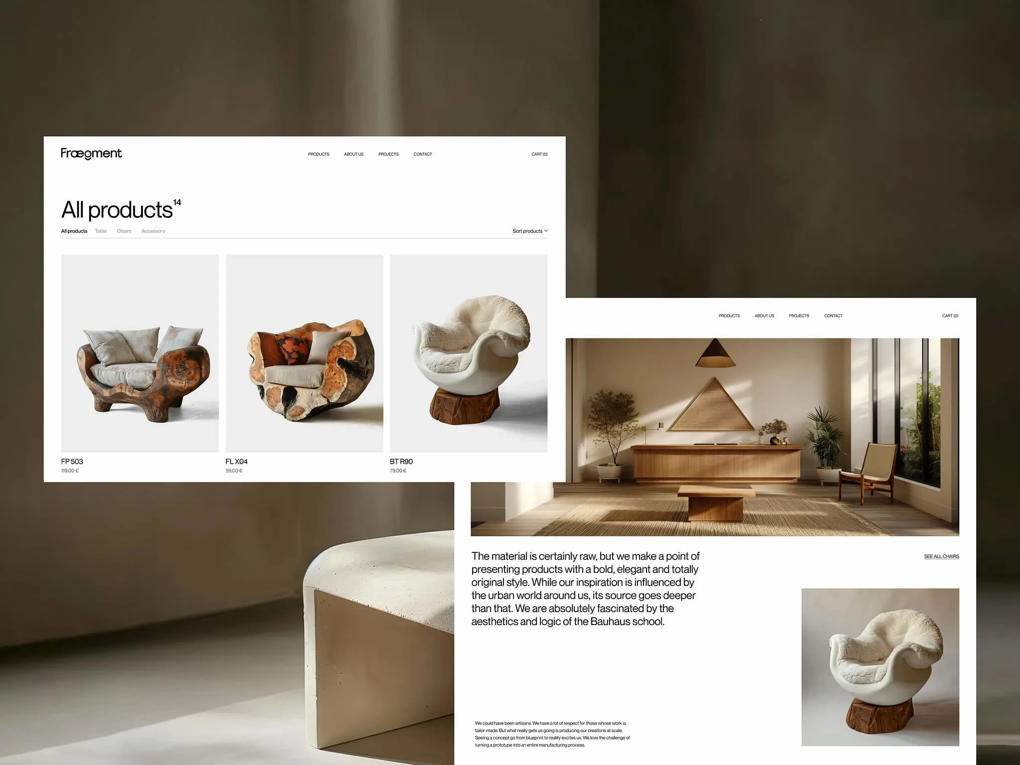 Some conceptual artwork of a modern furniture & interior design website.