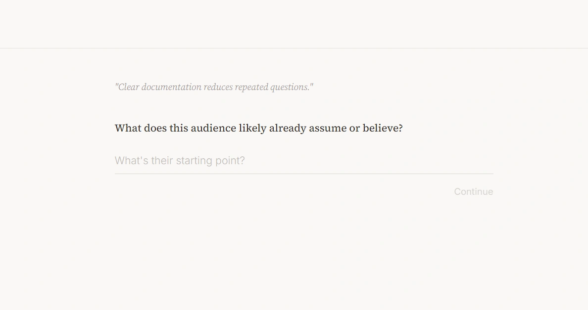 This restraint is deliberate. The absence of guidance keeps the focus on the user’s own understanding and language, rather than outsourcing thinking to the tool.