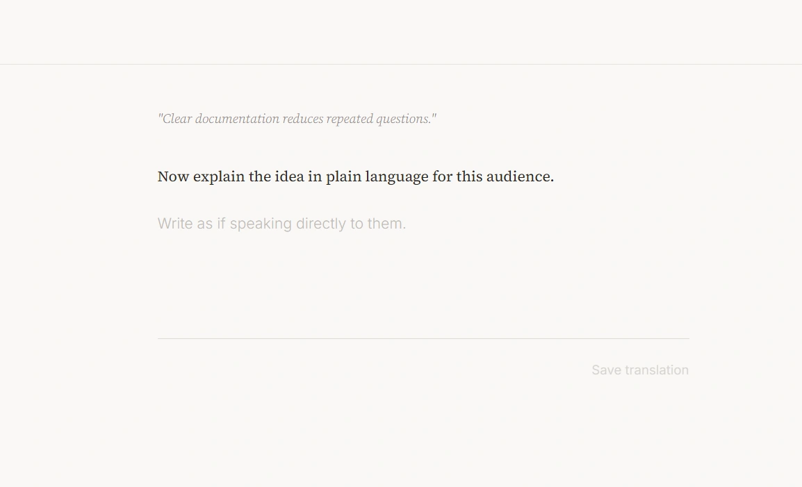 Concept Translator is a quiet workspace for restating the same idea for different audiences.