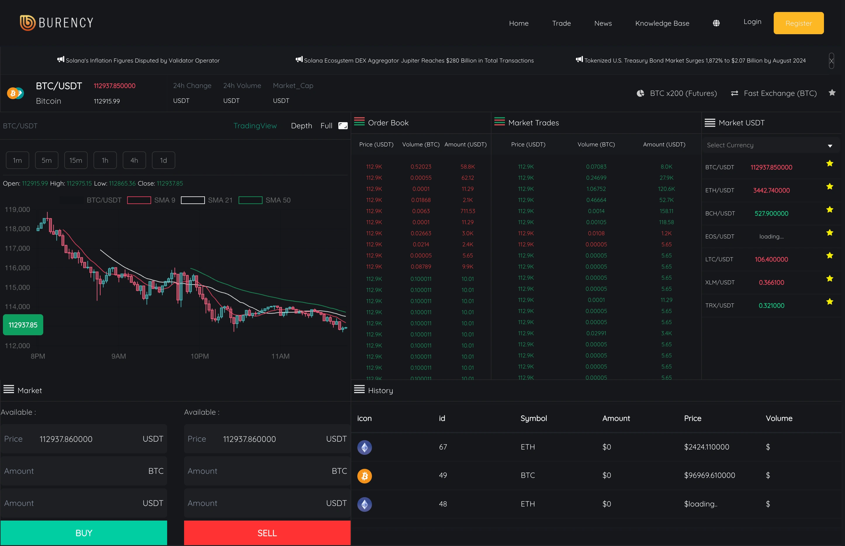 Burency is a modern crypto trading exchange that provides users with the ability to buy, sell, and trade cryptocurrencies in real-time. The platform is built using a