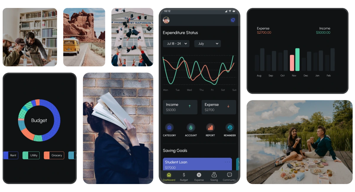 I did the end-to-end design process, conducting user research to understand financial challenges faced by young adults. Based on insights, I created wireframes, interactive prototypes, and iterated designs through usability studies. Prioritizing accessibility and intuitive user flows, I designed a seamless experience to help users track expenses, manage budgets, and achieve their savings goals.