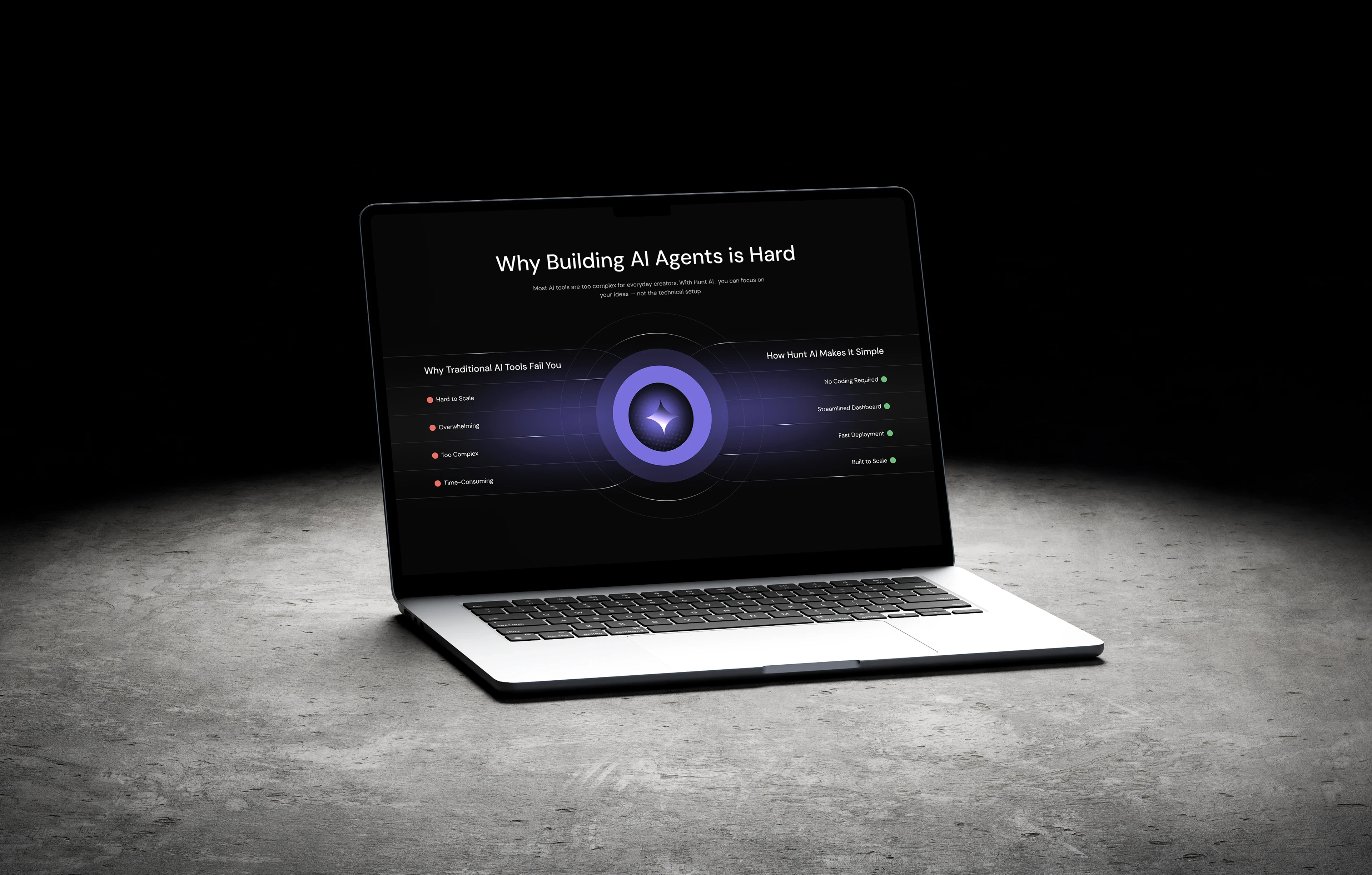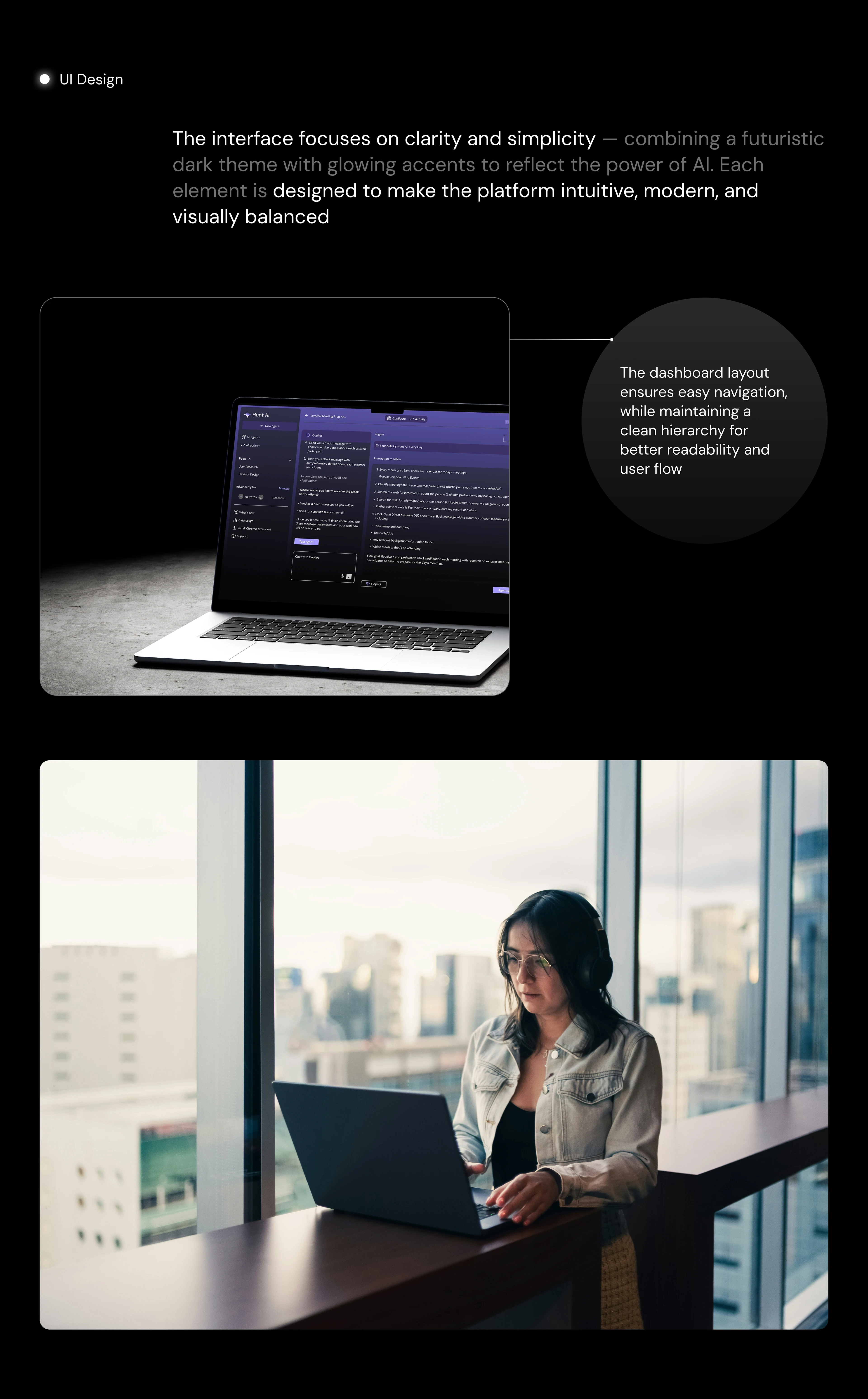 AI products can be complex to explain. The challenge was to simplify the messaging and present features in a way that users understand quickly while maintaining a clean, premium look.