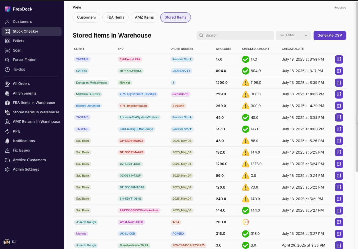 Inventory Tracking: Real-time stock management with detailed insights into stored items.
