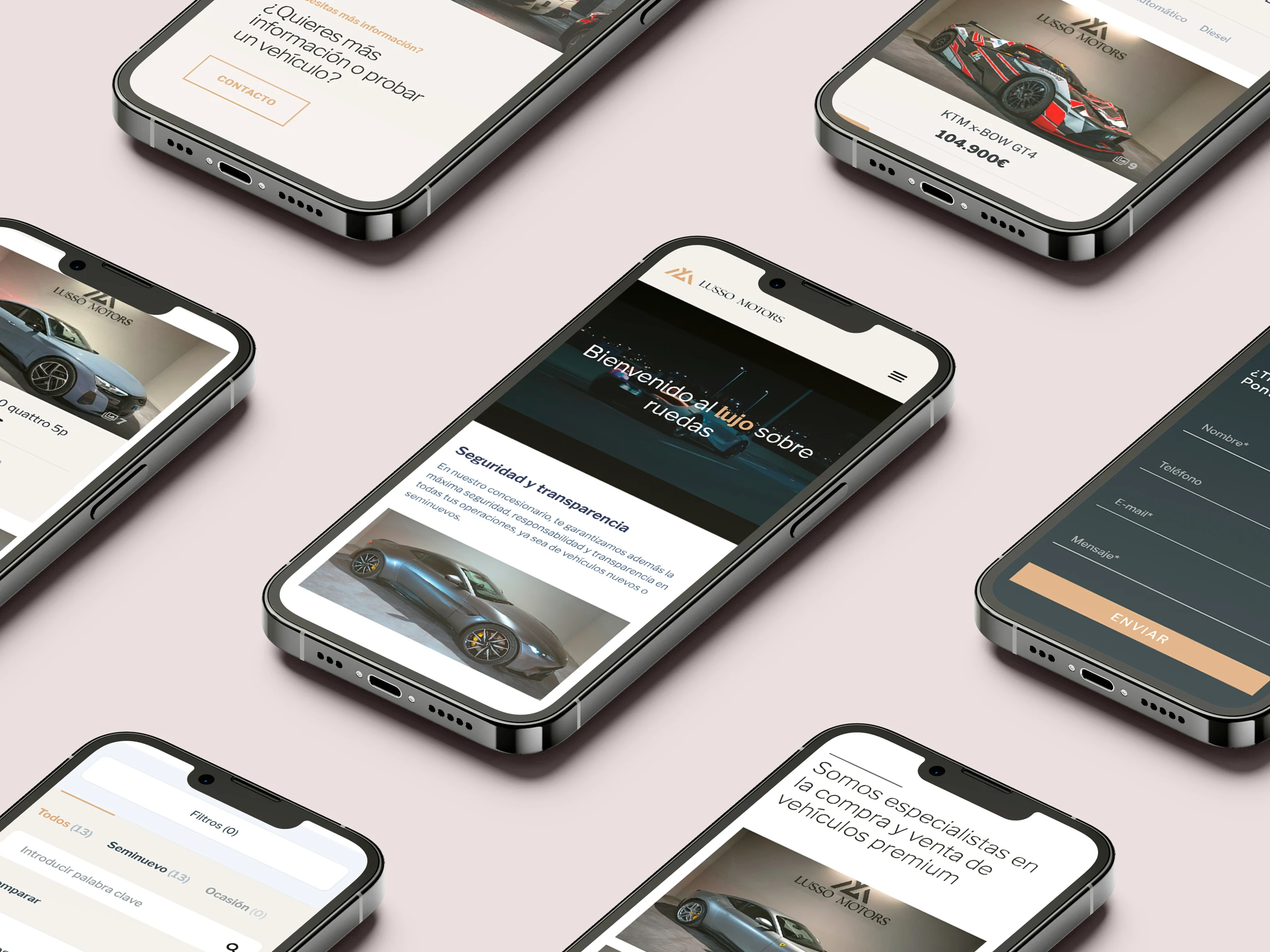 Responsive website design for Lusso Motors, a luxury car dealership focused on premium visuals, smooth navigation and a refined brand experience.