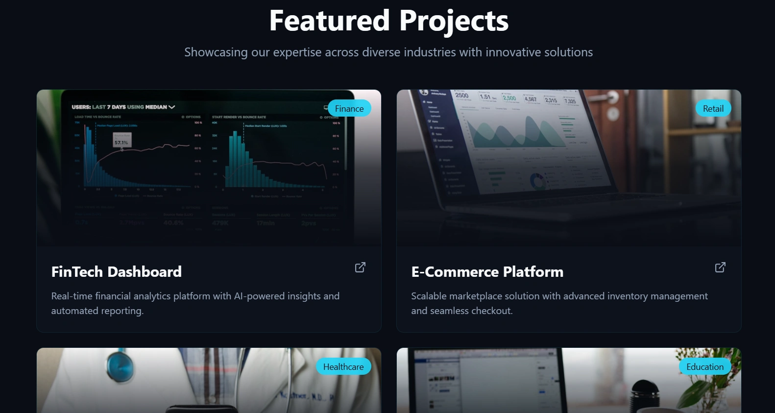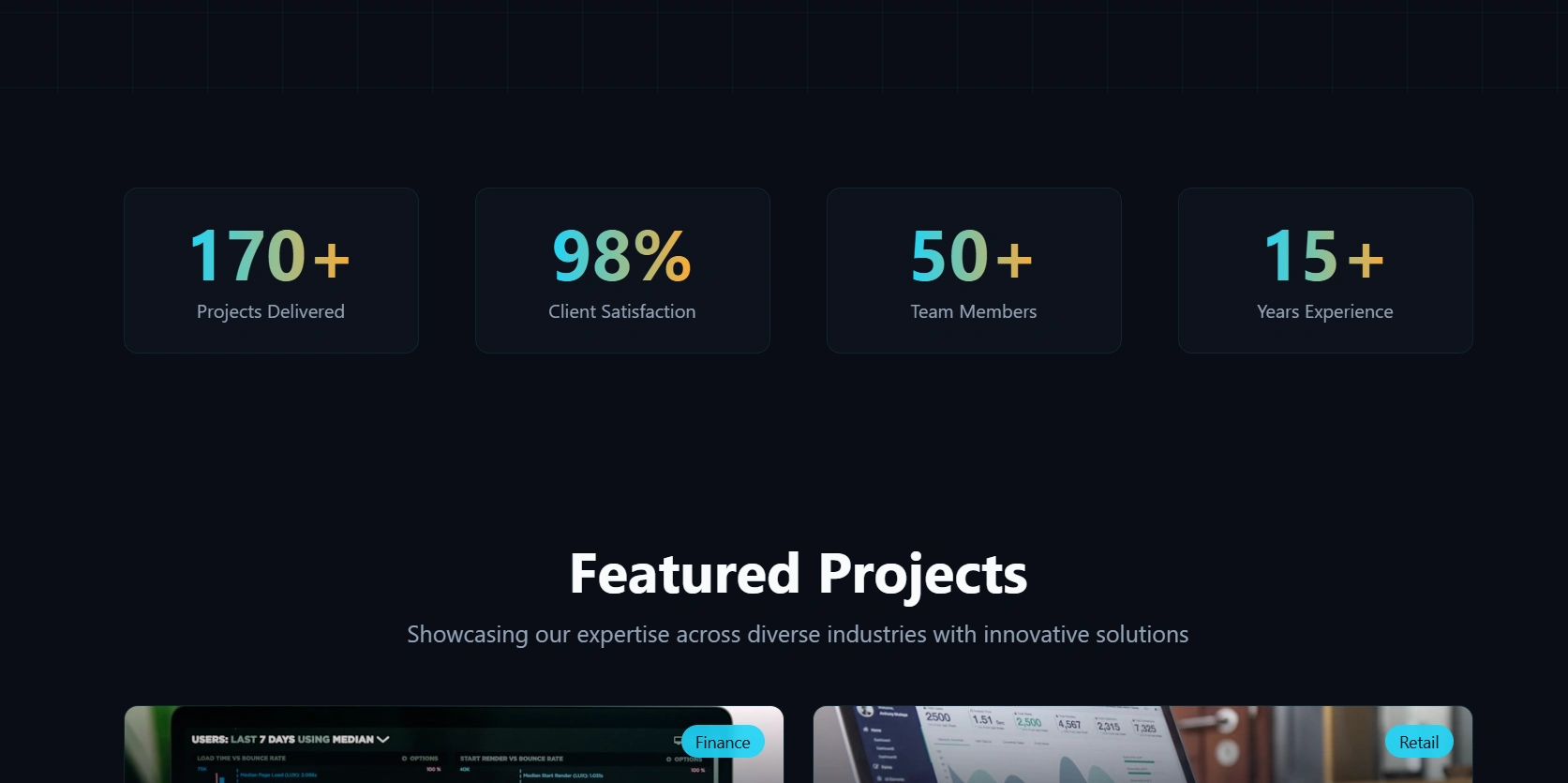 The NexaStudio agency page is a modern, professional website built to represent a software house that offers digital solutions, including web and app development, UI/UX design, and custom software projects. The goal was to create a highly engaging and trustworthy online presence that effectively communicates nexaStudio’s expertise, portfolio, and service offerings while driving client inquiries