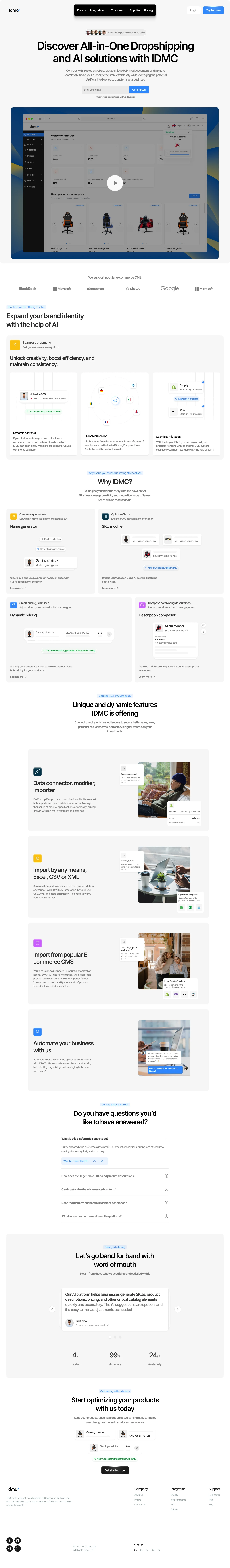 IDMC is an AI platform that enables users to bulk-generate product content like SKUs, names, and pricing. I redesigned its landing page to improve clarity, streamline user flow, and drive conversions. The redesign focused on modernizing the layout, improving mobile responsiveness, and ensuring the platform’s value was communicated clearly.