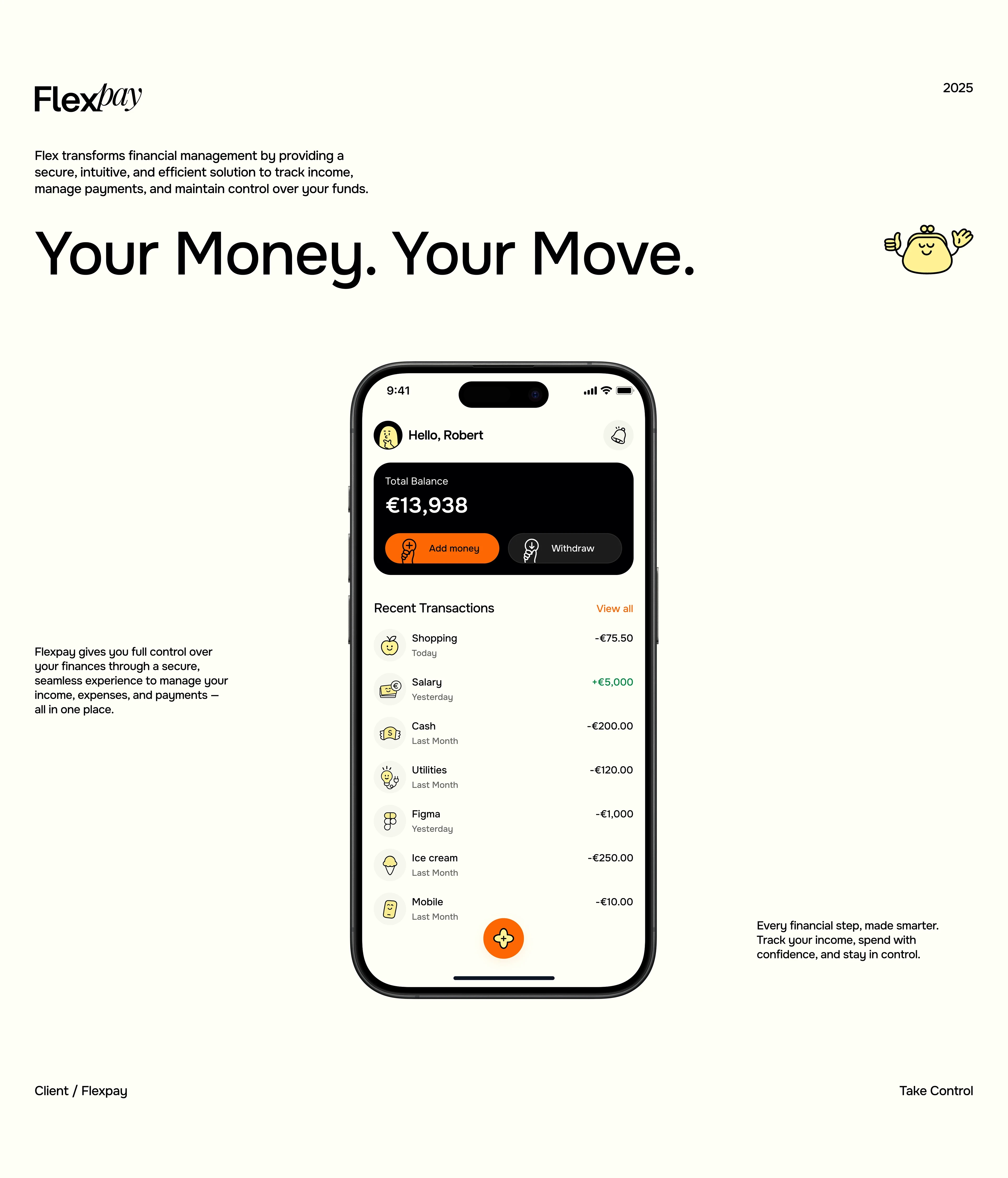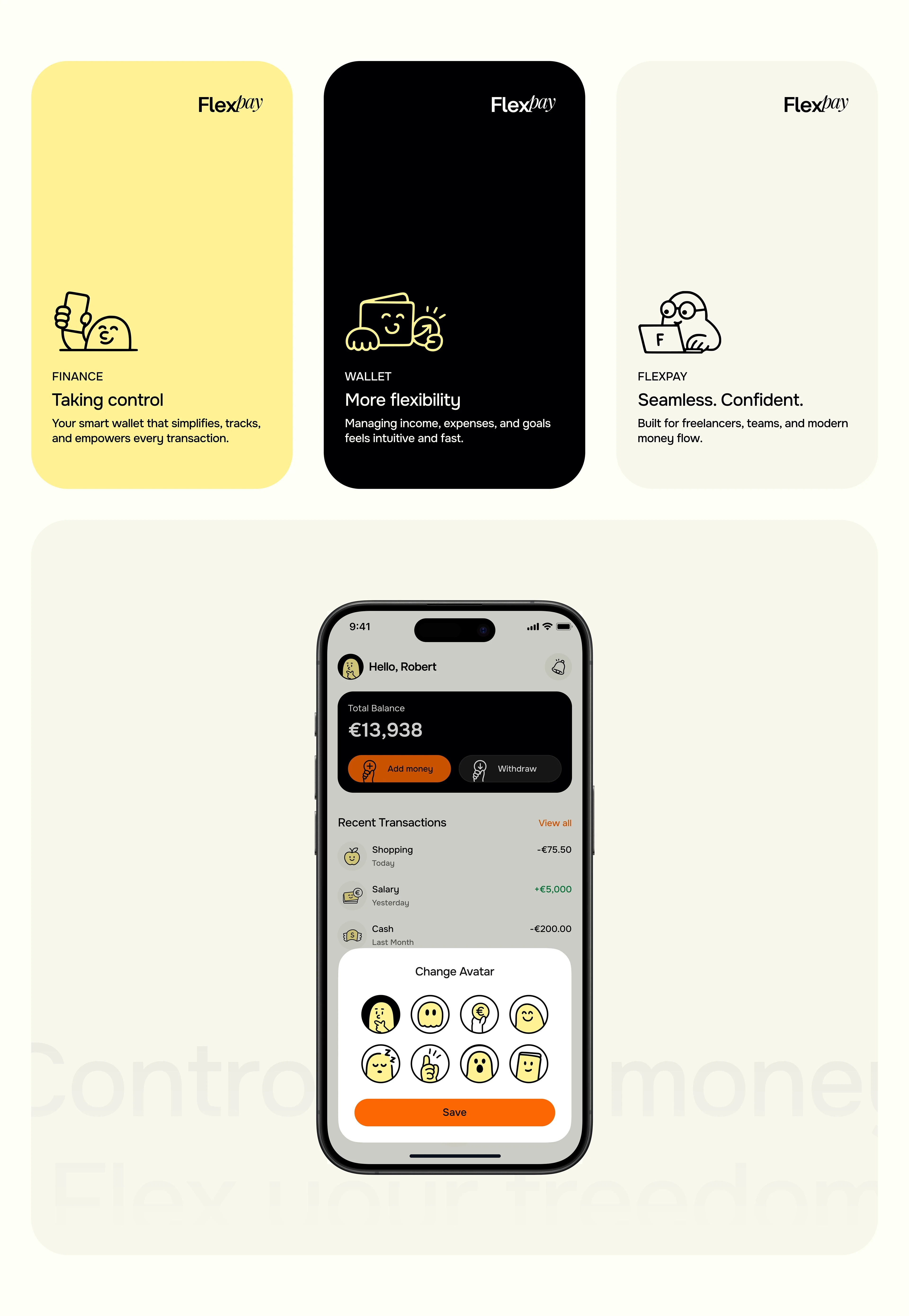Designed a secure, intuitive finance app for FlexPay, enabling users to track income, manage payments, and stay in control through a clear, friendly interface.!