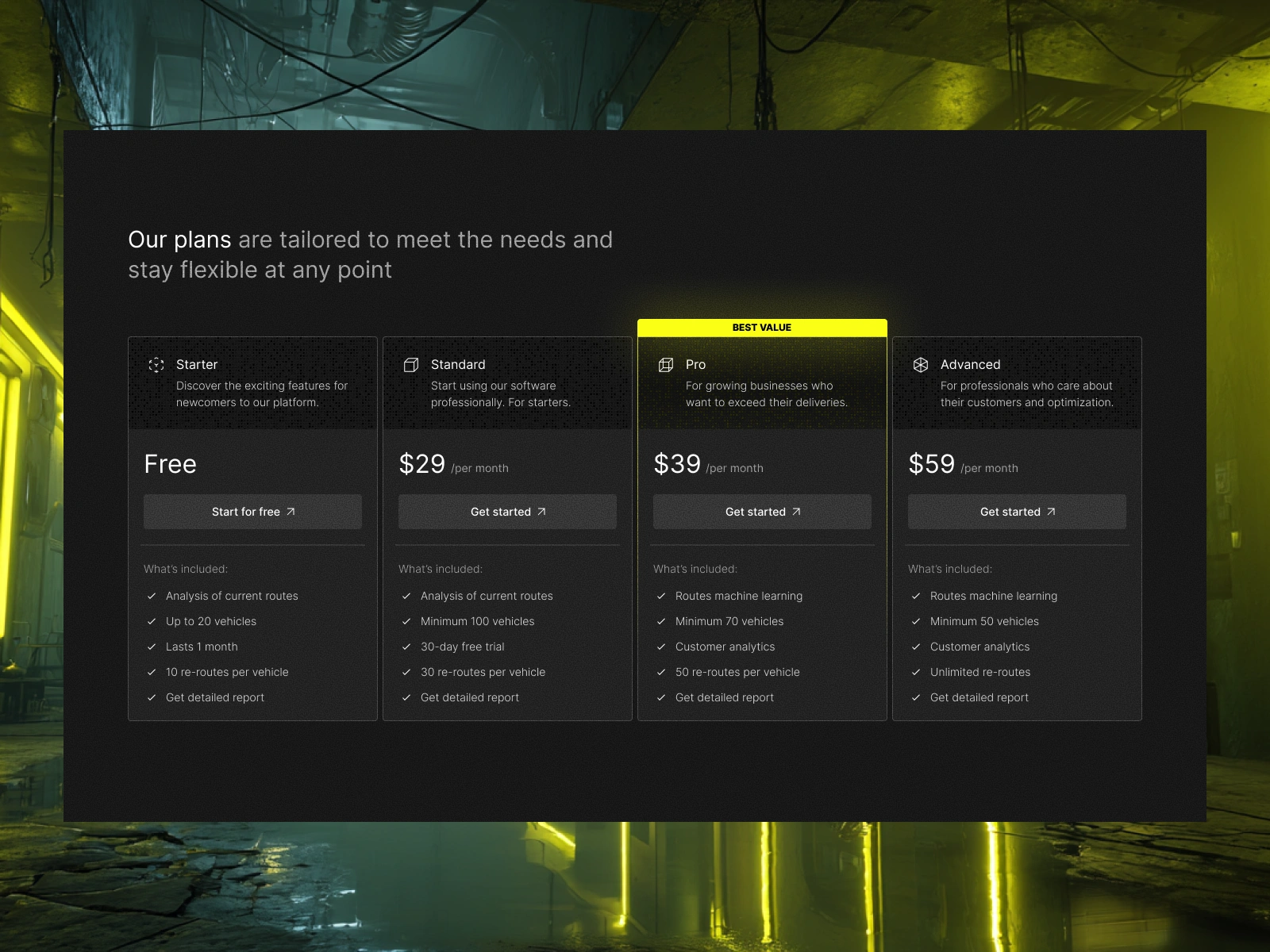Pricing design section for an AI-driven app focused on solving delivery systems and live traffic jams.