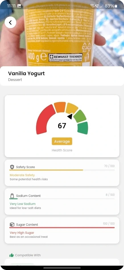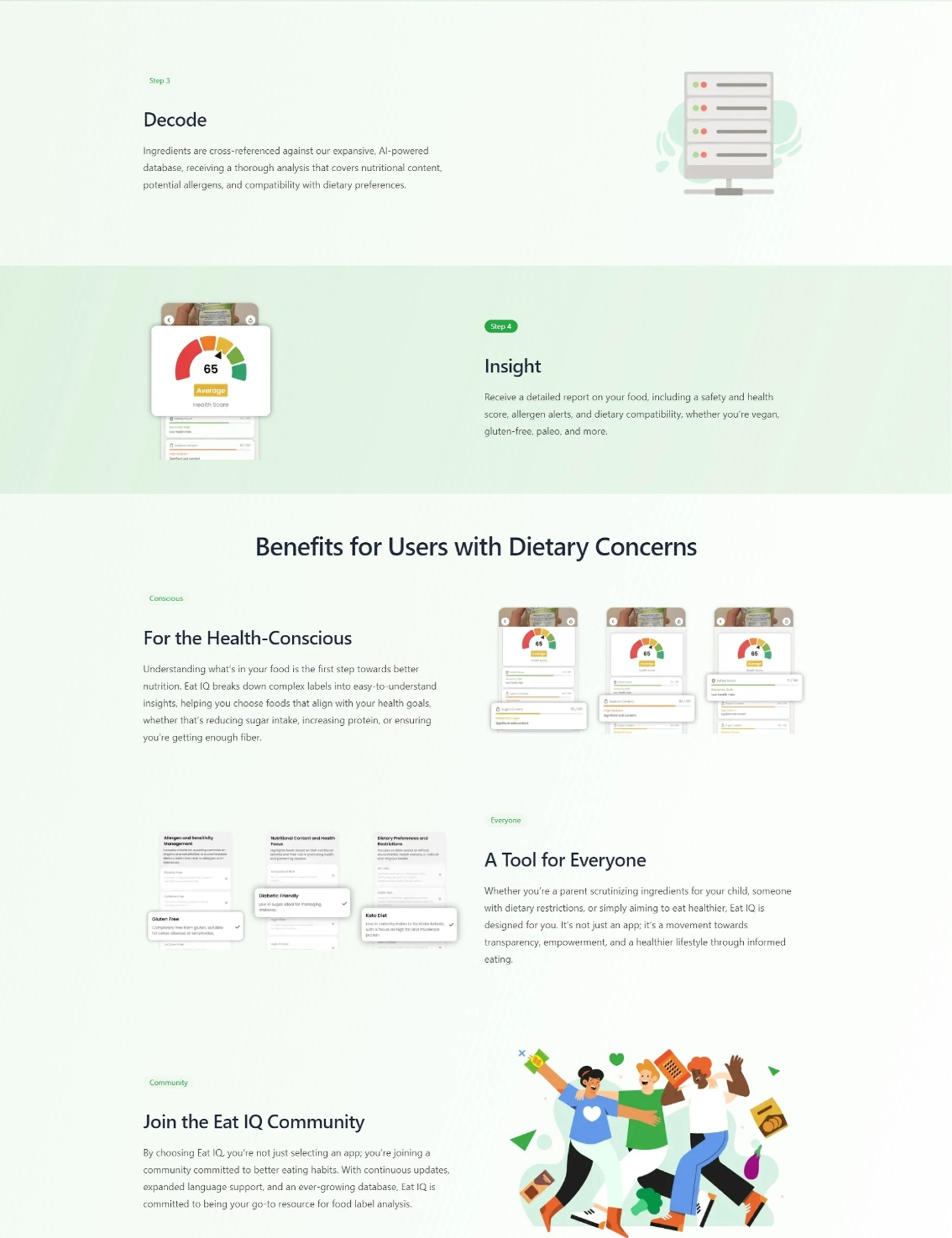 With EatIQ, users can now make informed decisions without second-guessing ingredient lists or nutritional labels.
