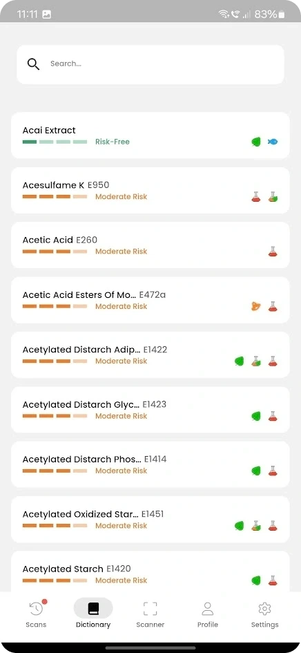 Not everyone knows what sodium benzoate or xanthan gum actually are, and that’s where the Dictionary feature steps in.