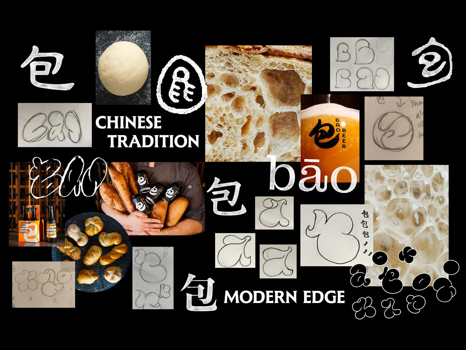 The logo concept is inspired by the soft, sculptural curves of bao buns and the lively, effervescent texture of beer bubbles — merging warmth and fermentation into a bold, playful form.