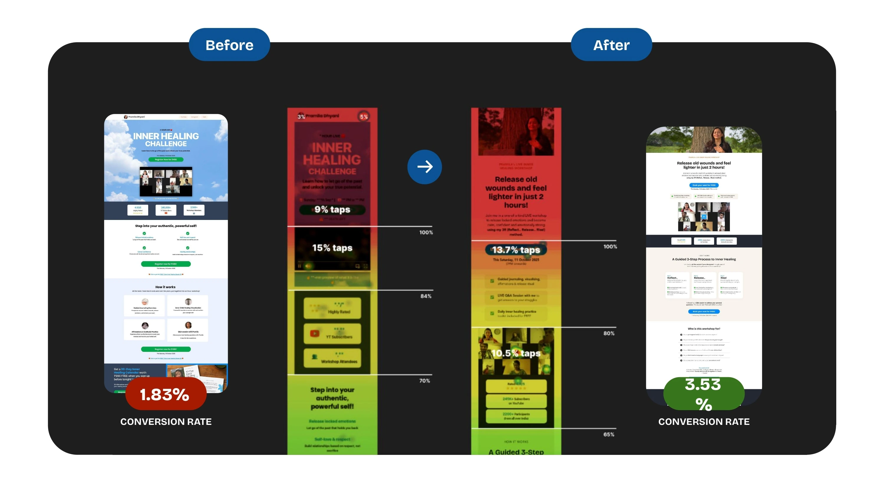 While the funnel was running, we redesigned the landing page to optimise conversion. This wasn't a one-time job, we came back every week to the page to analyse the impact of interventions and improve further.