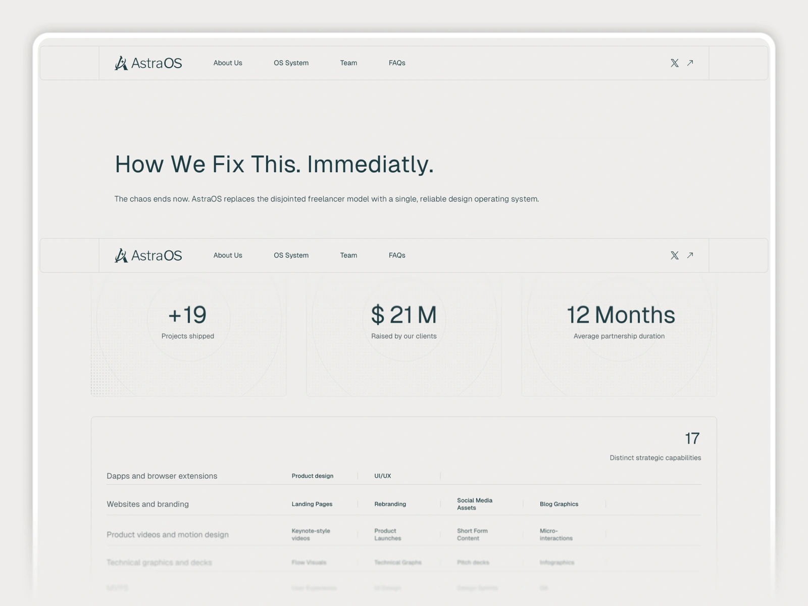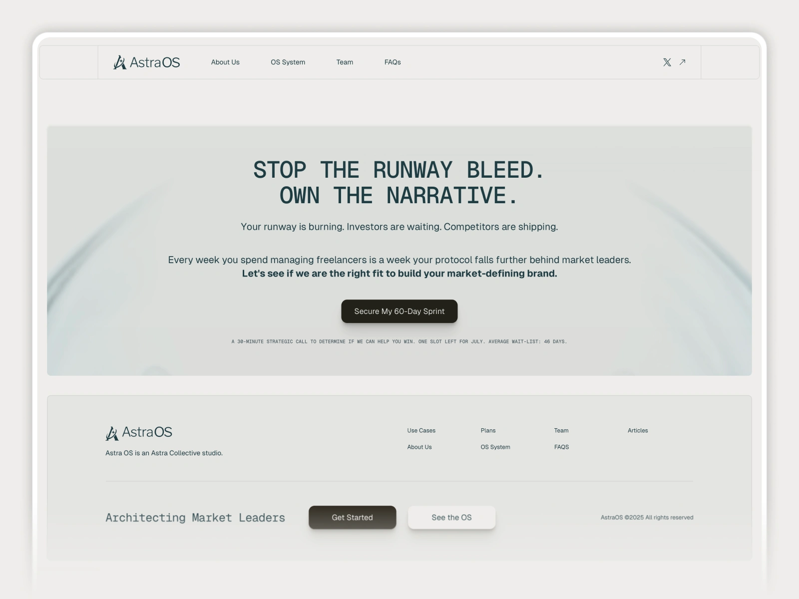 Astra OS specializes in fast startup branding and product development, delivering investor-ready brands in just 60 days. With expert design systems, scalable assets, and direct collaboration, Astra OS helps startups close funding faster and outpace the competition.