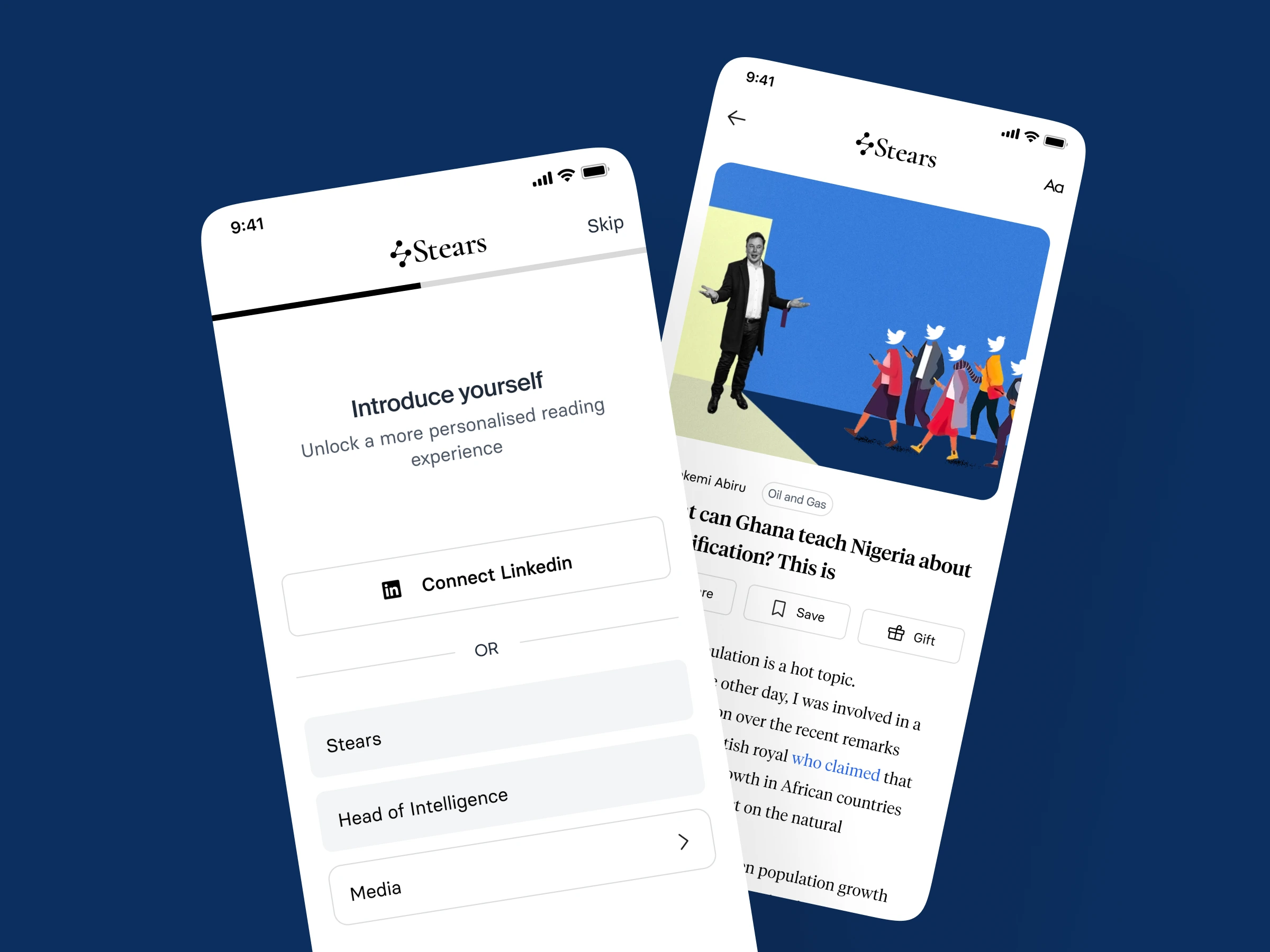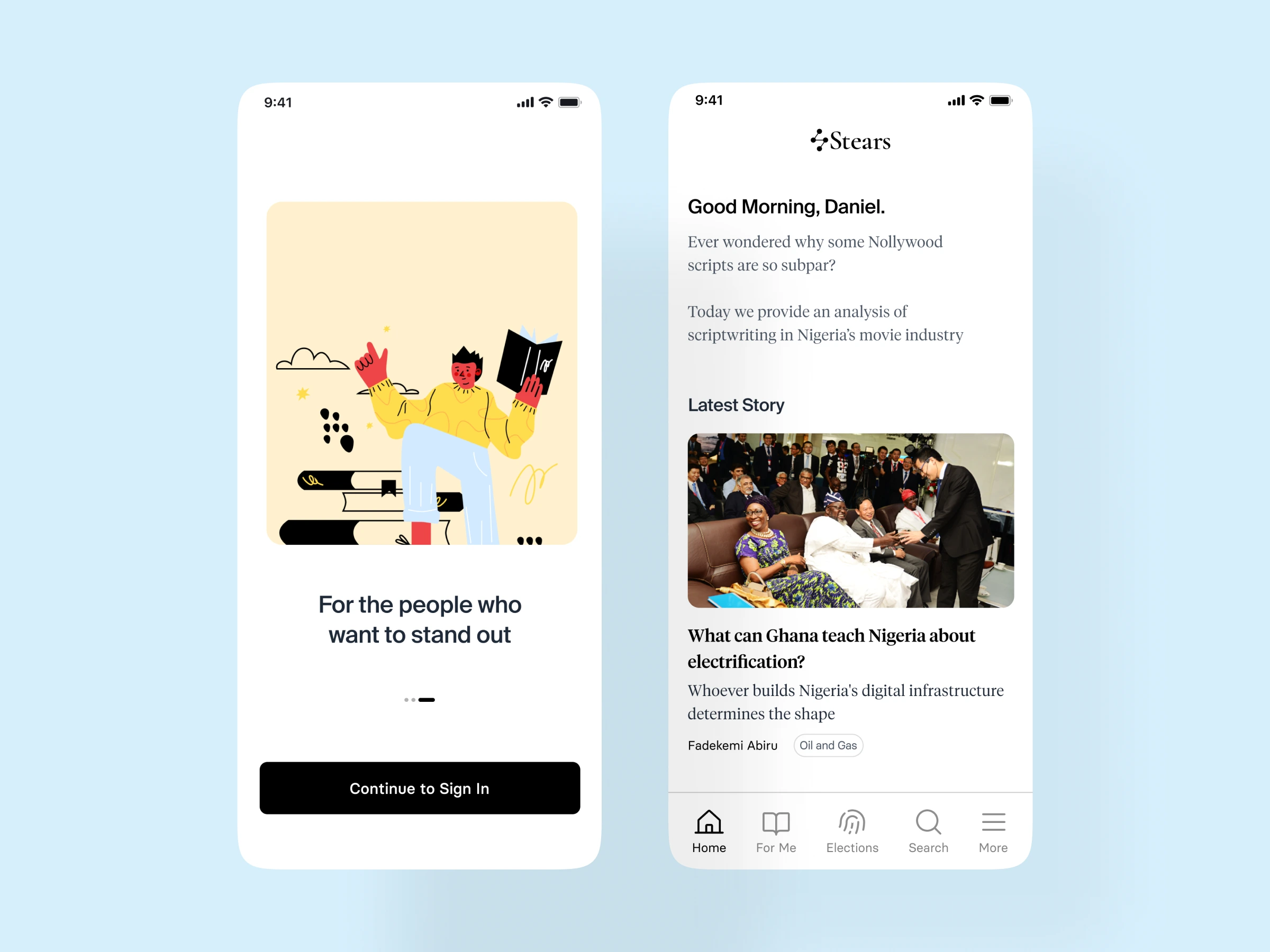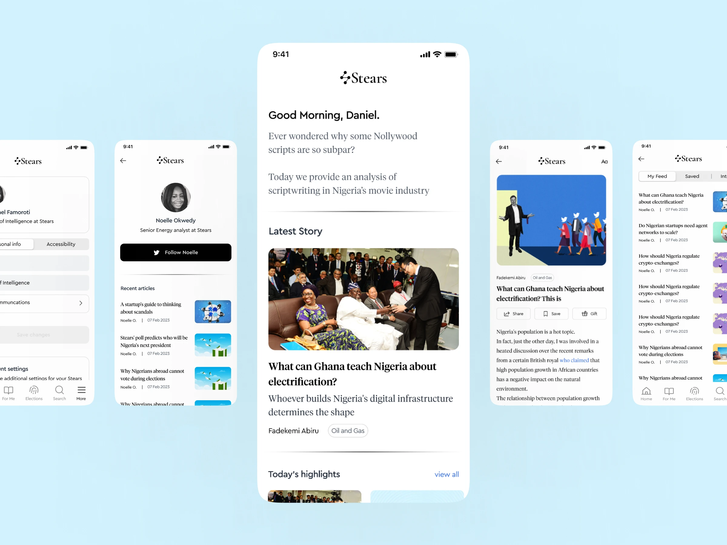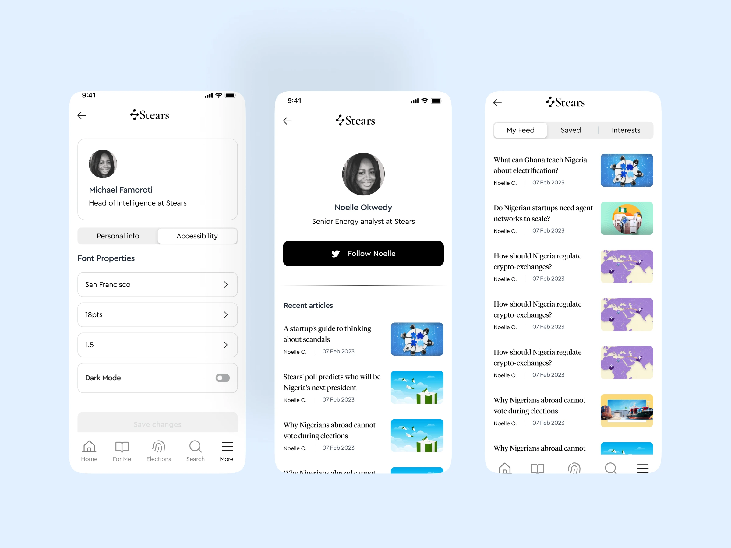 Stears web platform had terrible UX - not responsive, subscribers couldn't access features. I designed mobile app with search, bookmarks, customization, interest preferences, push notifications enabling full subscription experience.