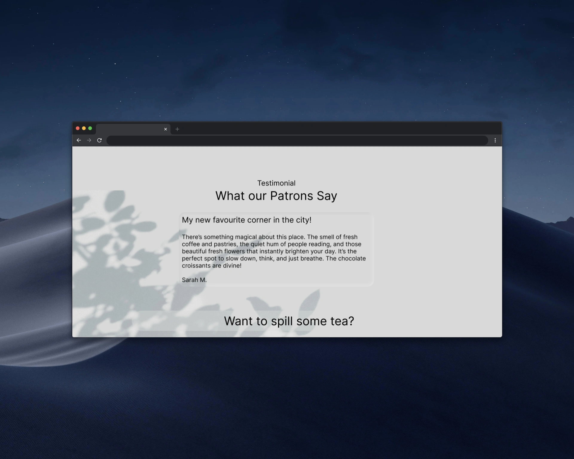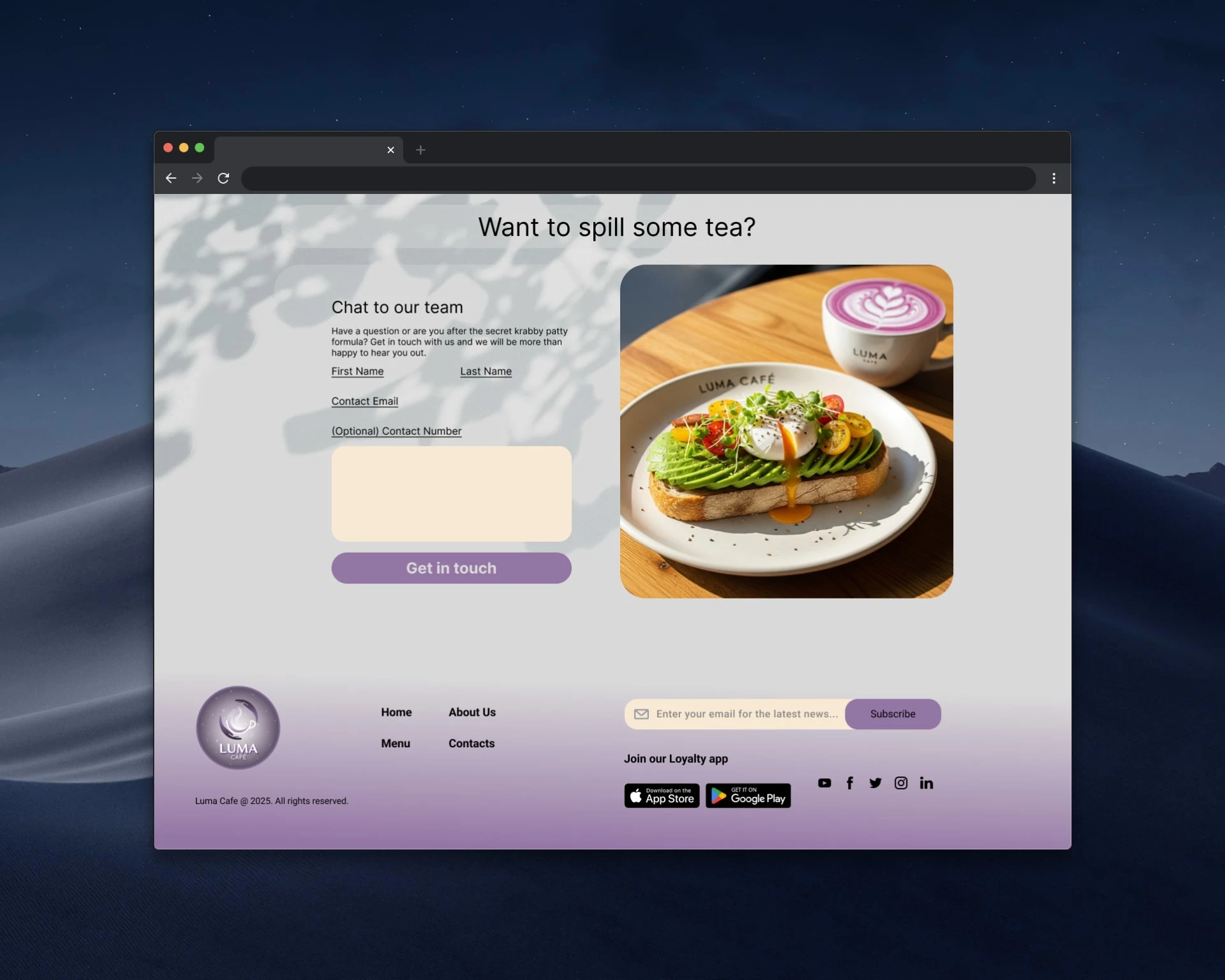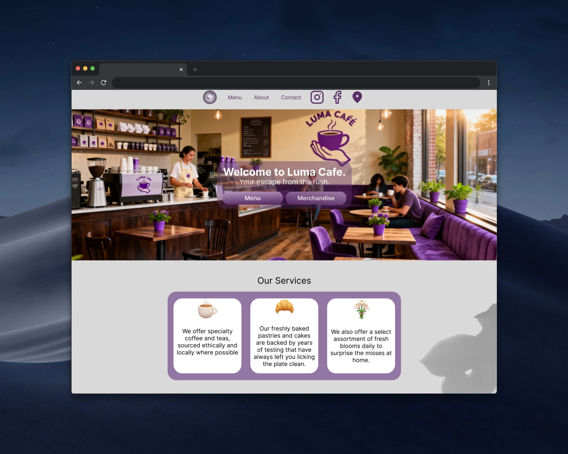 Implemented a clean, organized layout with distinct sections for services, story, testimonials, and contact. Used strategic imagery placement to create visual interest and emotional connection. Incorporated social proof through customer testimonials, clear call-to-action buttons throughout the journey, and an accessible contact form. The footer includes newsletter signup and app download options to build ongoing customer relationships.