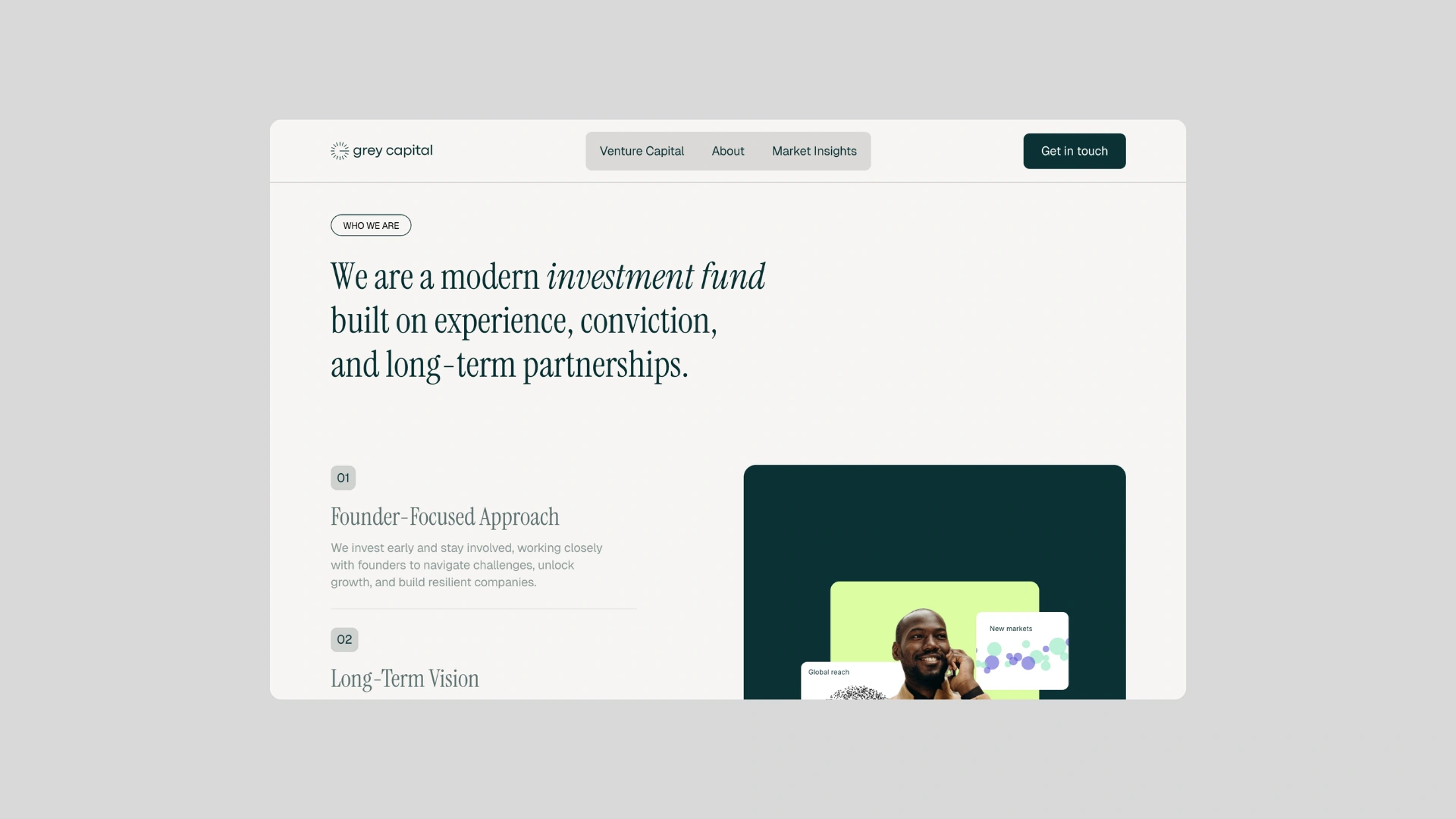 Grey Capital needed a digital presence that matched its ambition. The previous website, while functional, blended into the sea of sterile finance sites.