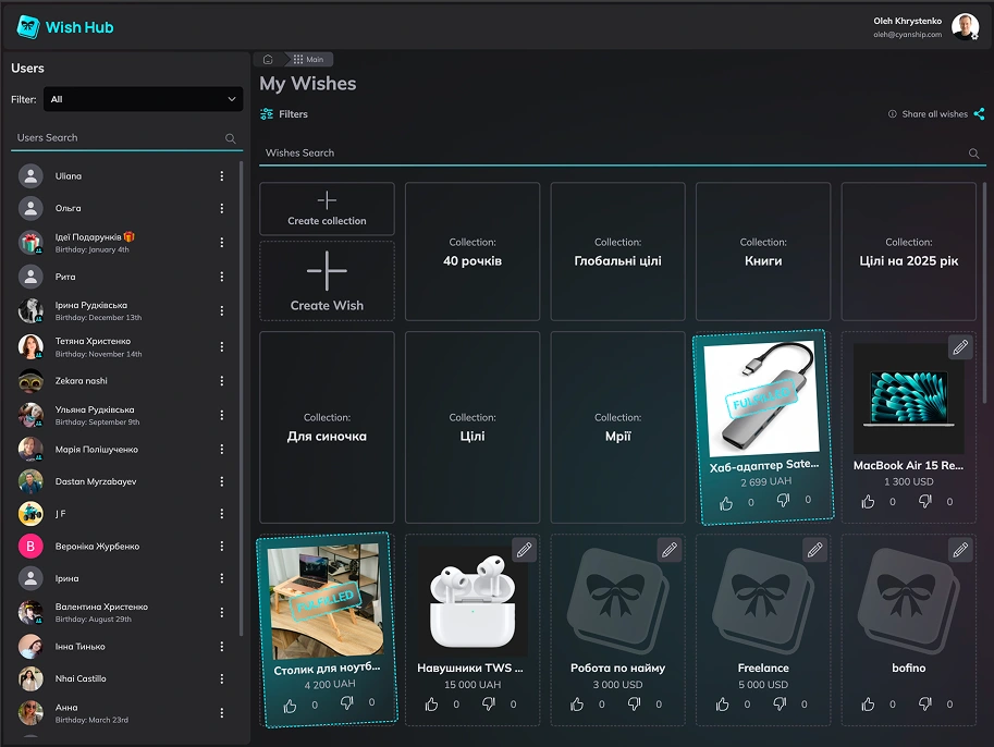 Social platform where users create wishlists, share them with friends, and reserve gifts. Google auth, real-time updates, responsive UI. Live with active users.