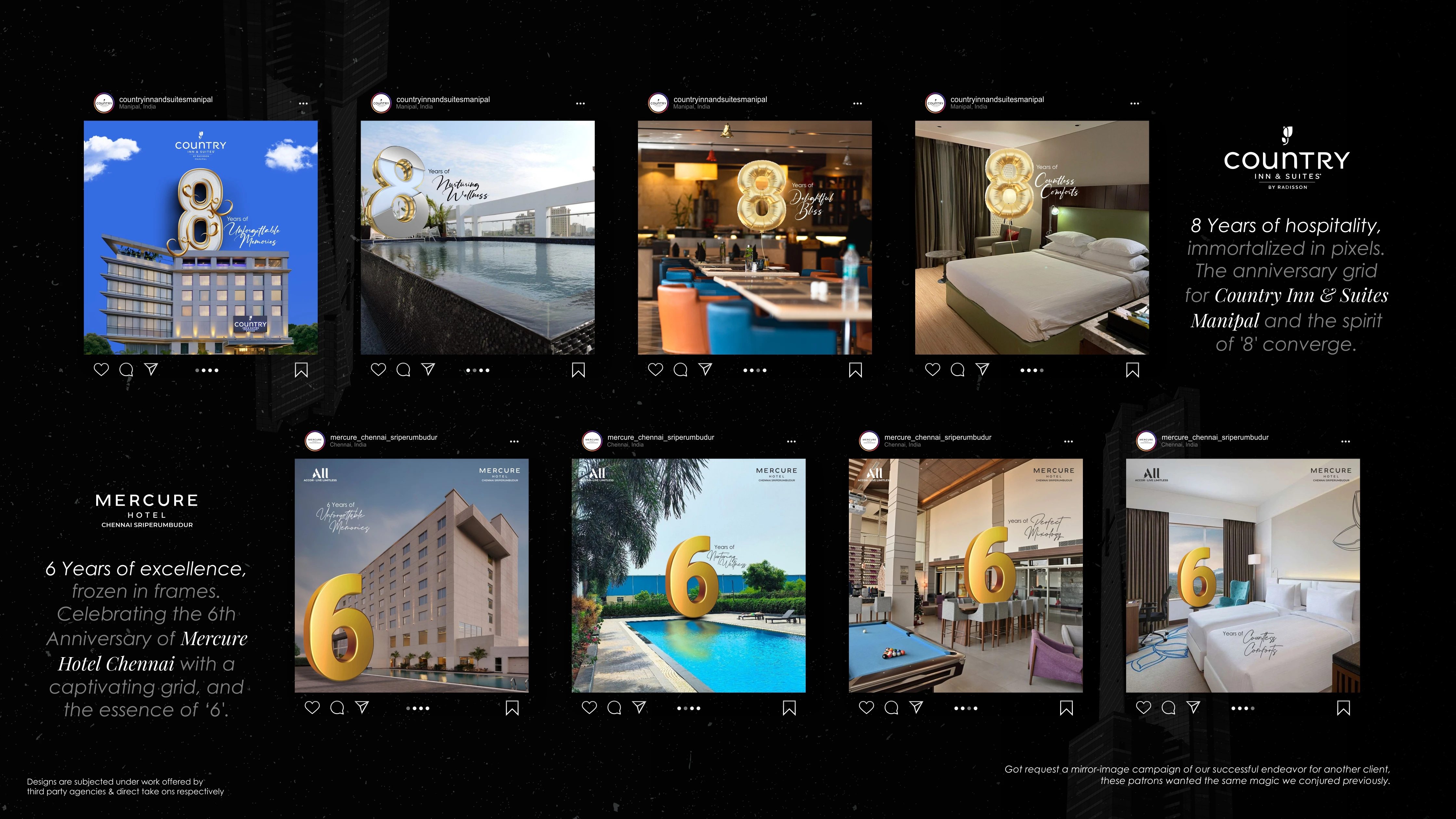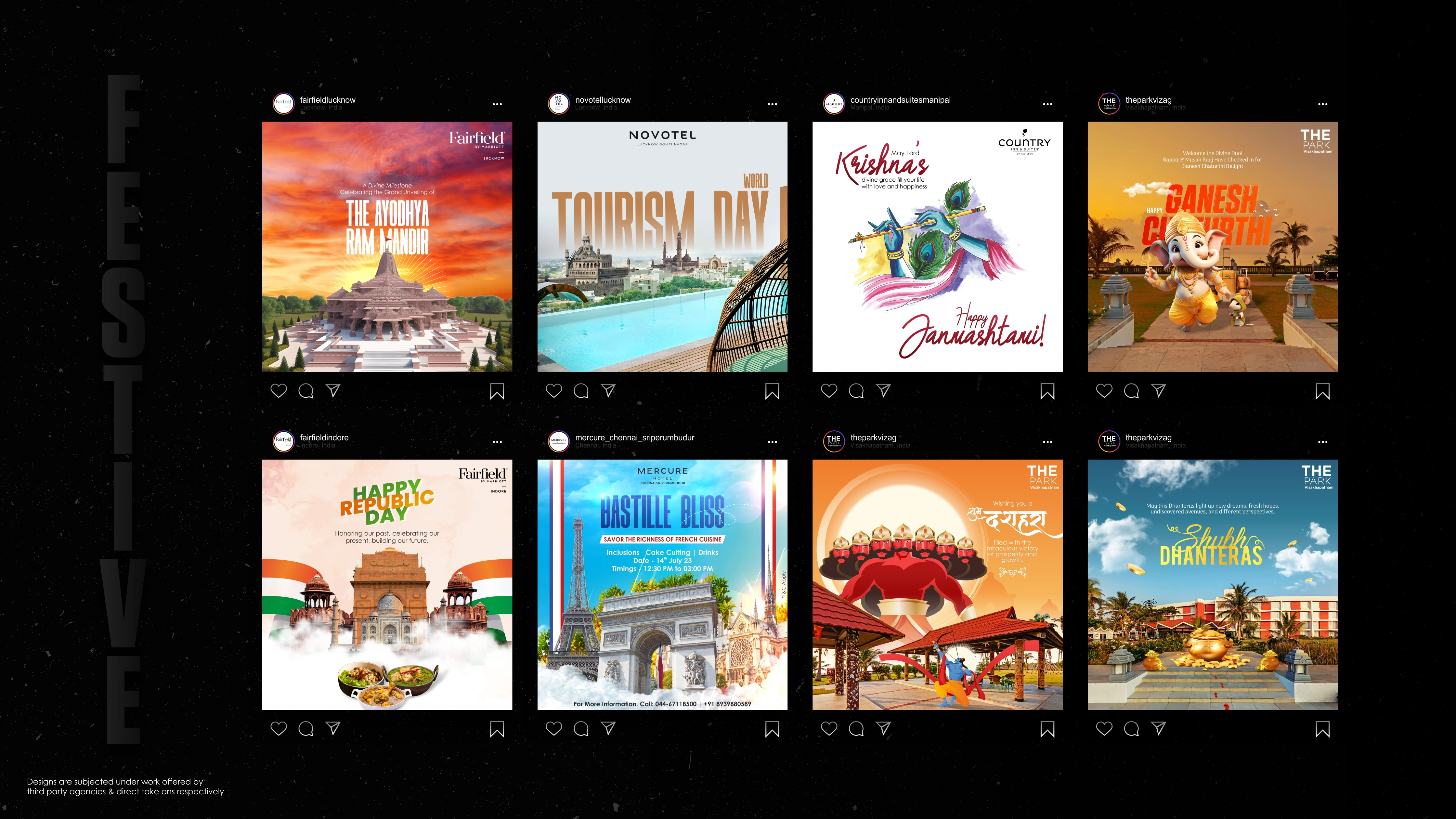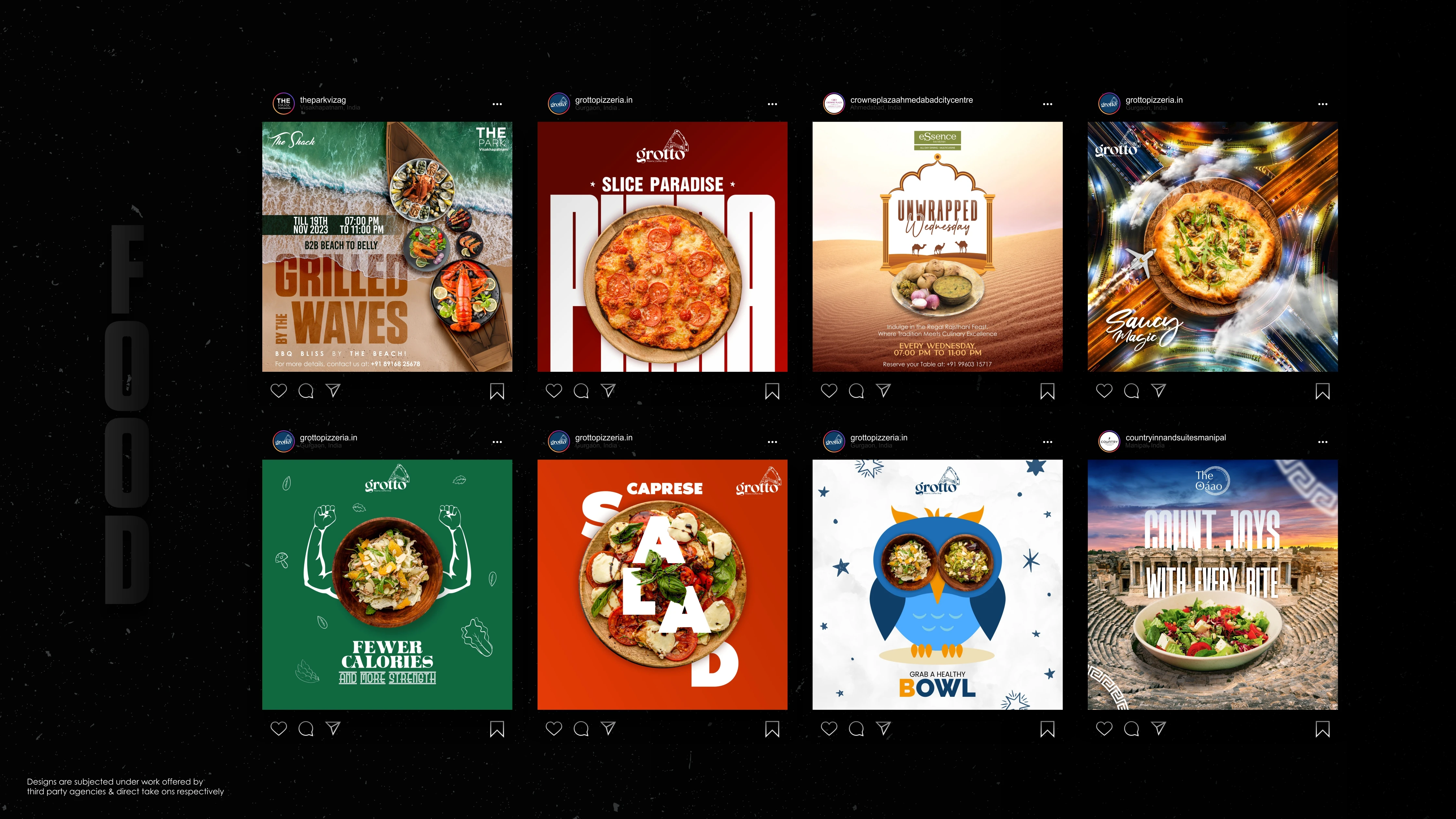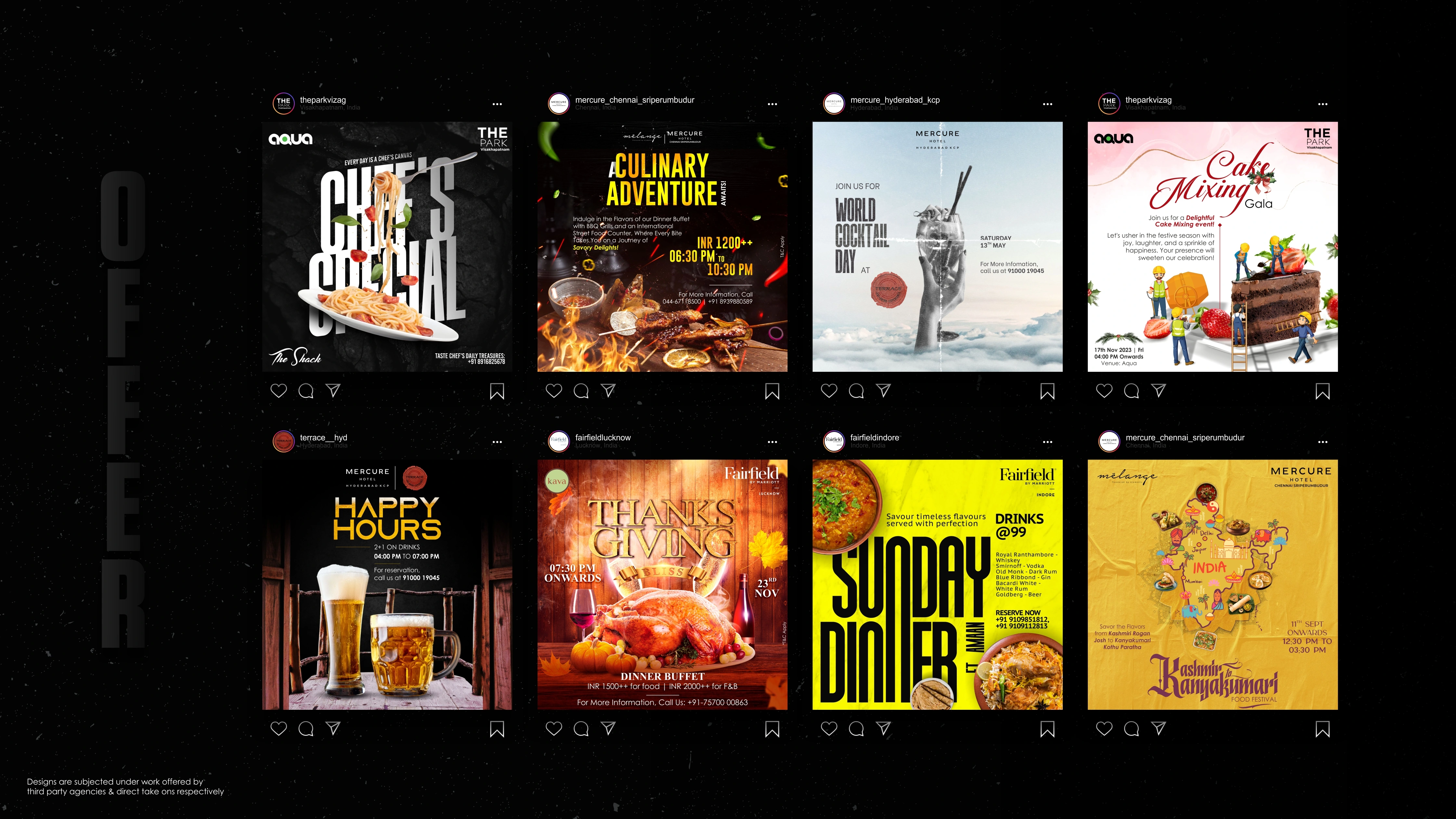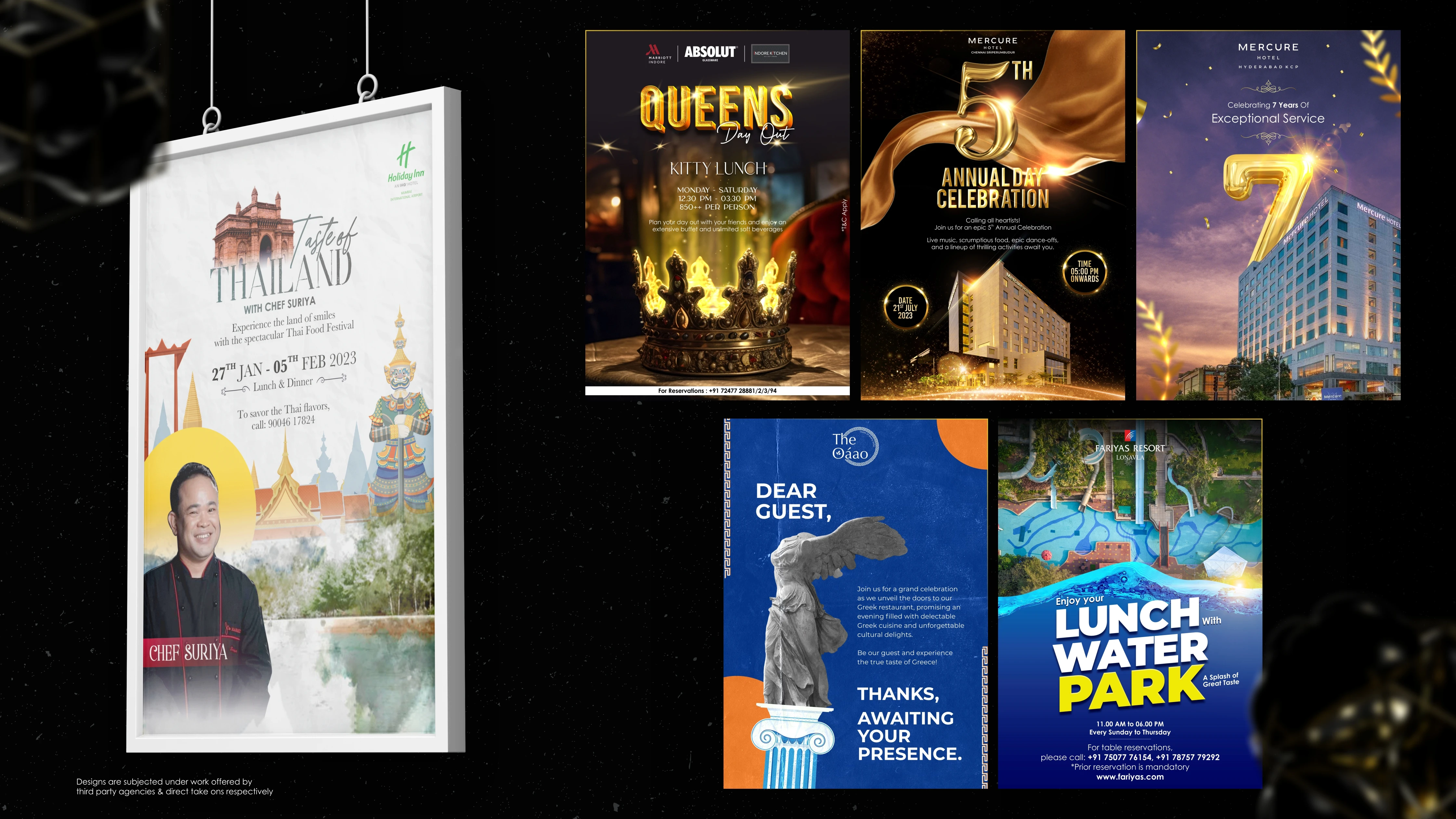 Welcome to my portfolio journey spanning from the vibrant landscape of 2022 to the innovative strides of 2023. Within these digital walls, you'll discover a mosaic of creativity infused into logos, menus, and social media posts tailored for esteemed cafes, restaurants, and major hotels across India. From tantalizing food posters to captivating festival greetings, each design pulsates with the essence of my craft.