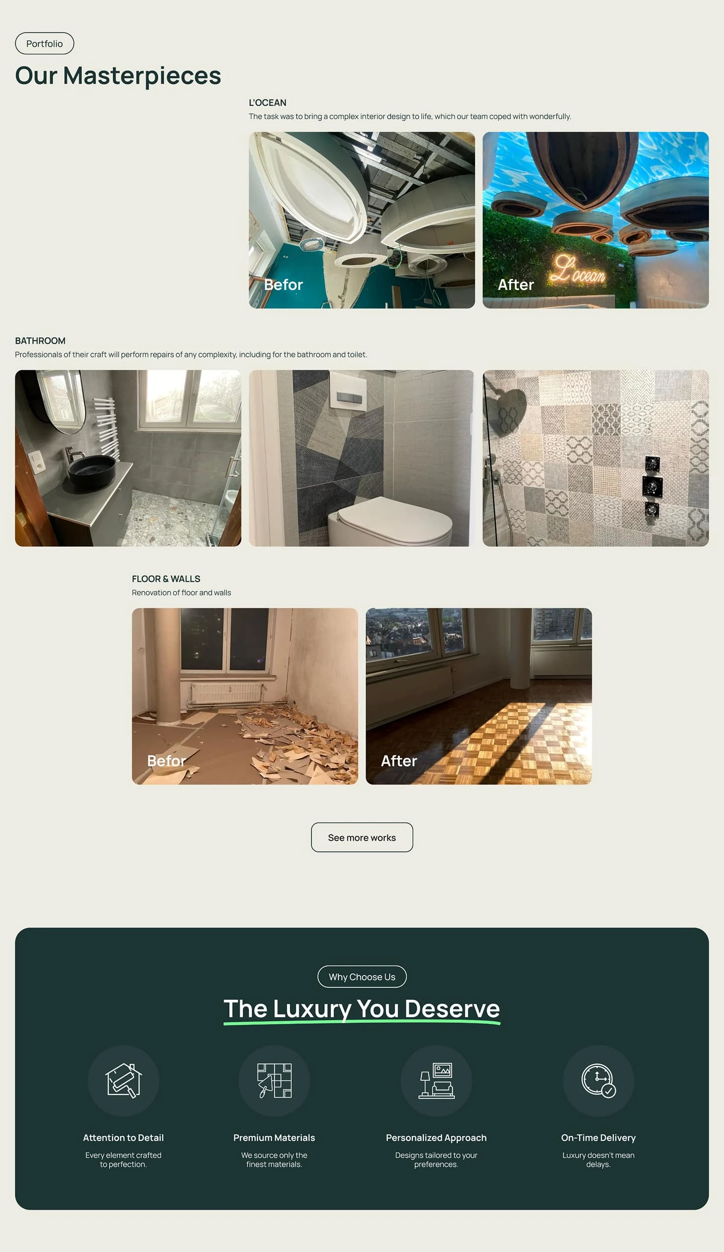 Several design options were proposed for this project, as the company offers several services and needed to divide them into several different landing pages. One of the proposed options is presented here.
