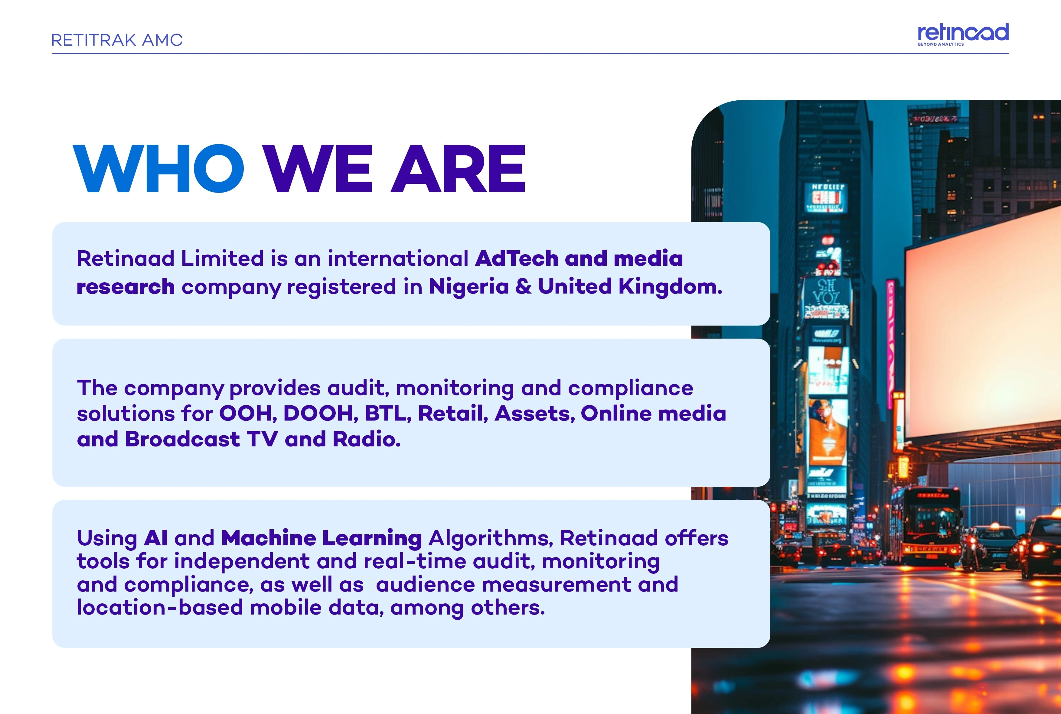 Designed a 35-page funding pitch deck for Retinaad, blending clean visuals, brand storytelling, and investor-focused clarity.