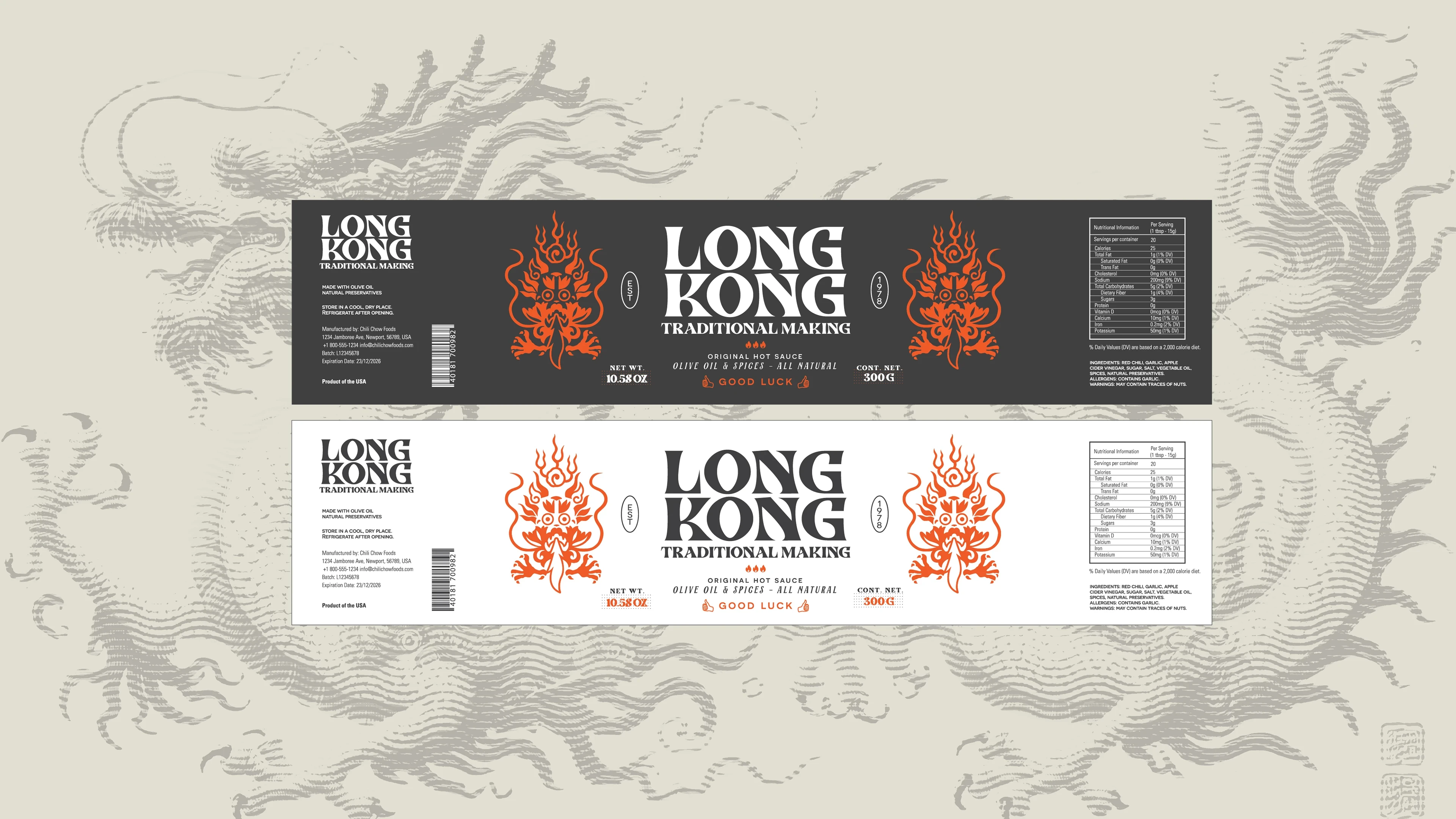 Long Kong is a brand deeply rooted in tradition, with a recipe passed down through generations. For the brand identity, I drew inspiration from the powerful dragons of Chinese mythology, incorporating them into our illustrations and visuals as symbols of strength and character.