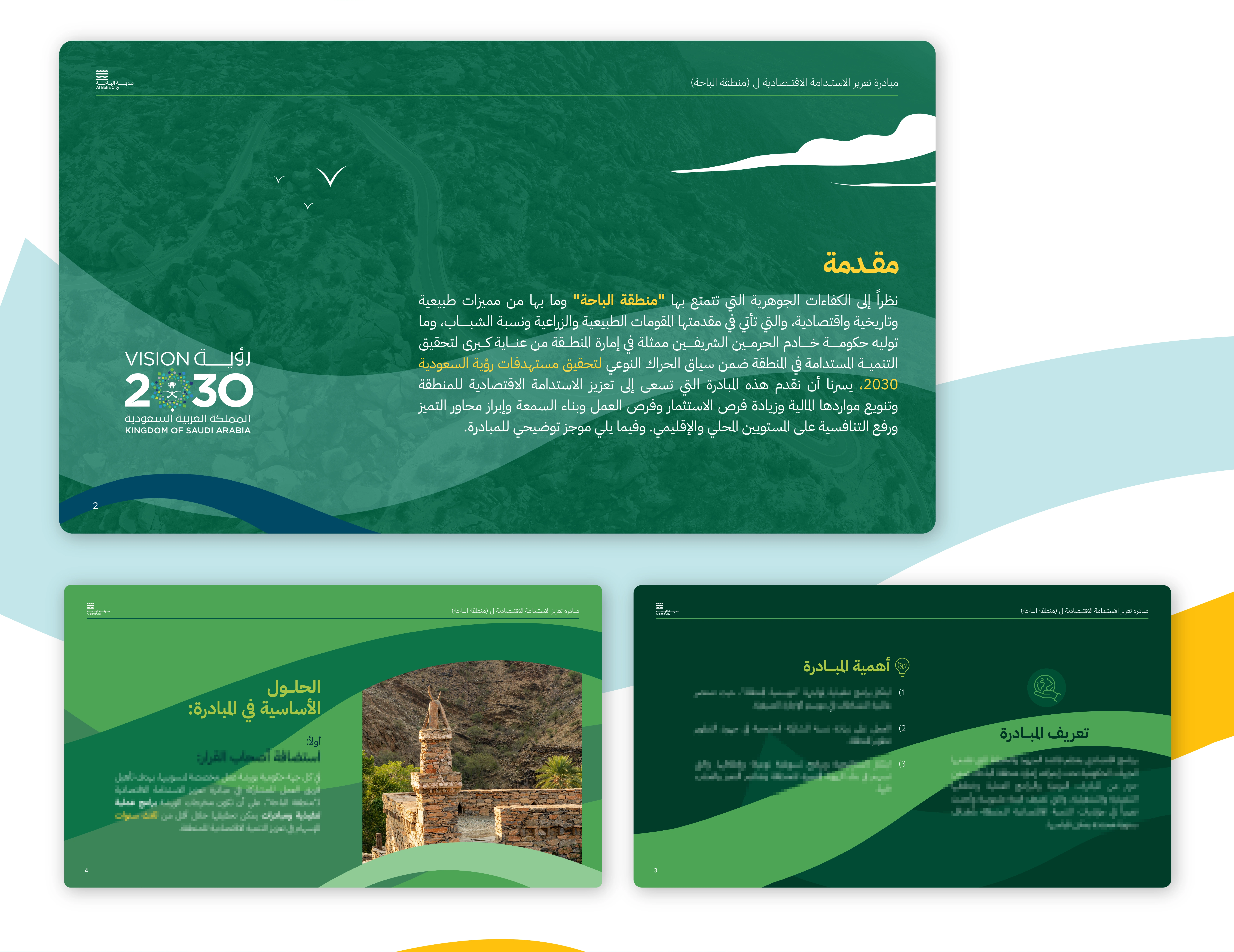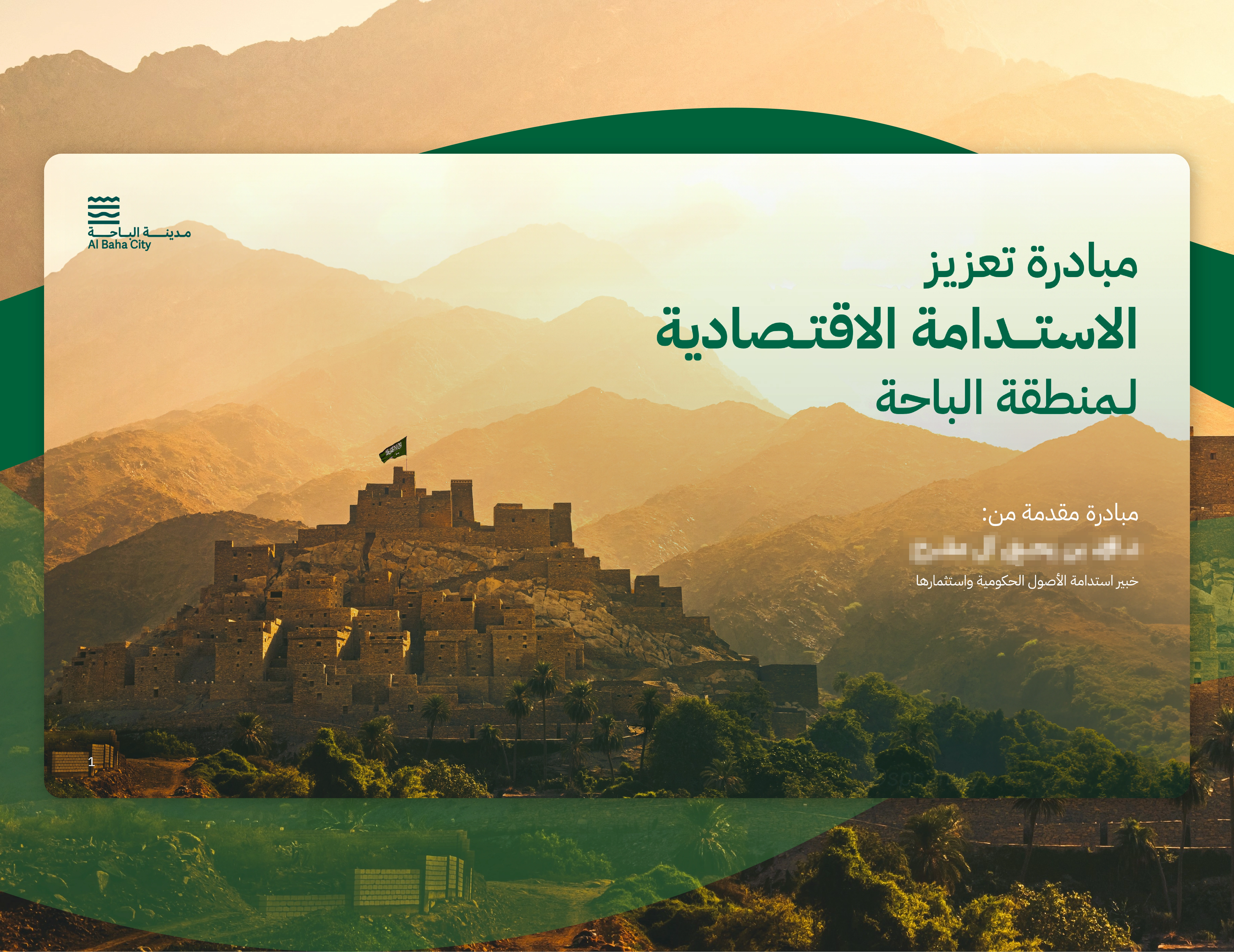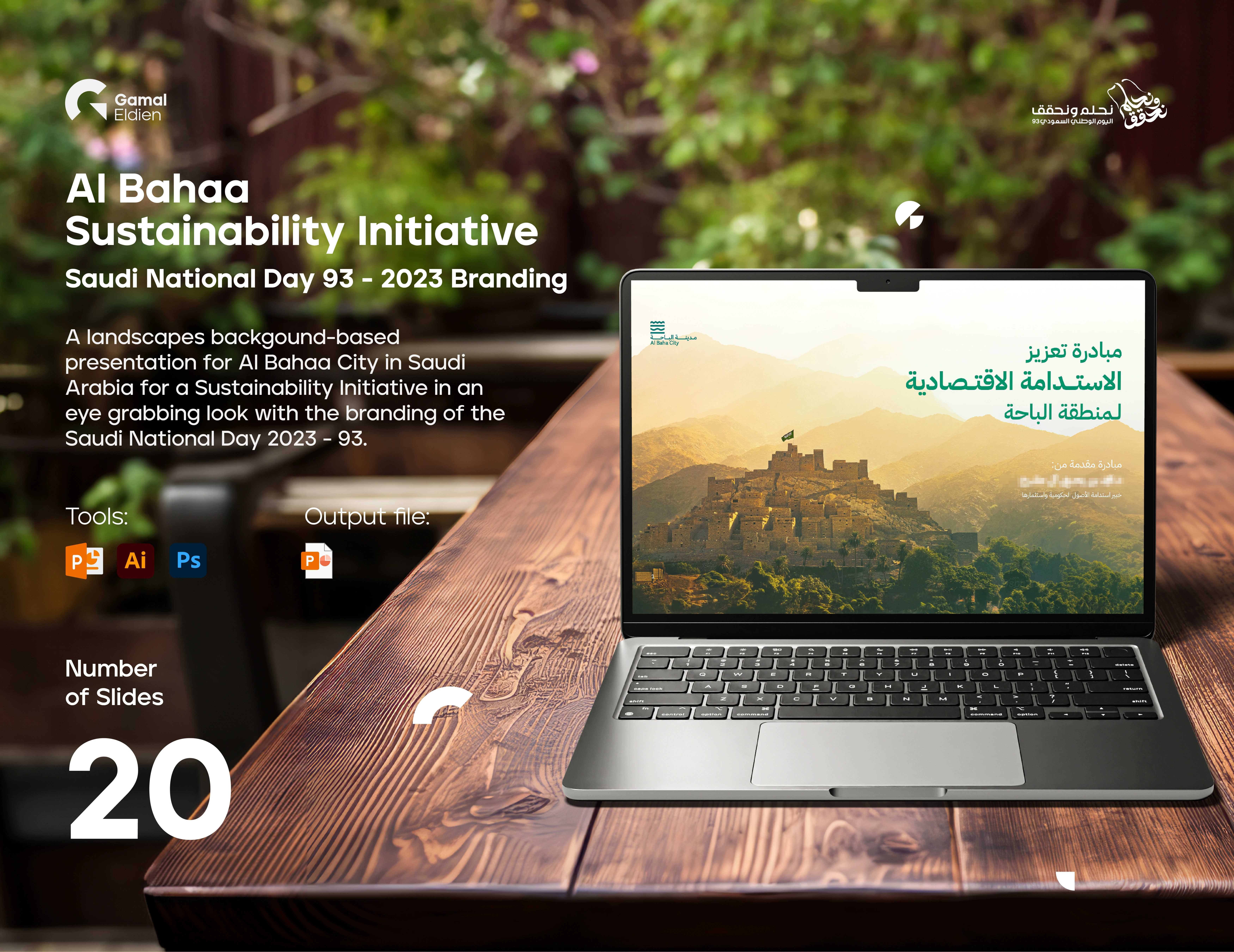 Al Bahaa sustainability initiative for Saudi National Day 93 (2023) with a landscape-based branding presentation showcasing the city's green vision.